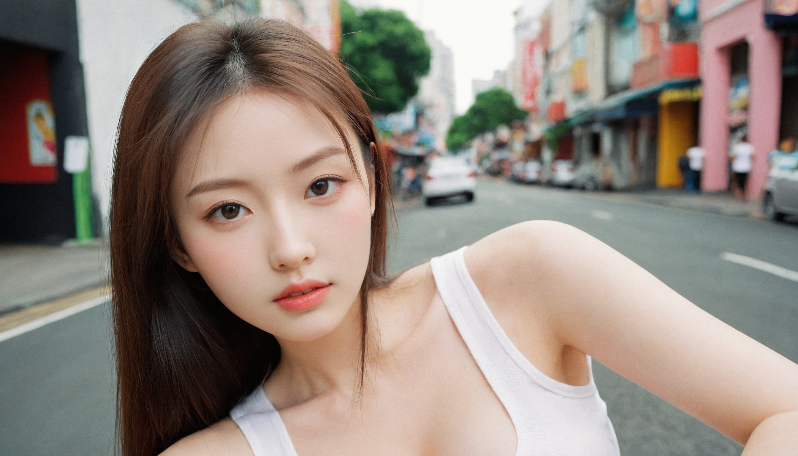 {"3": {"inputs": {"seed": 896909444100901, "steps": 64, "cfg": 5.0, "sampler_name": "dpmpp_2m", "scheduler": "karras", "denoise": 1.0, "model": ["27", 0], "positive": ["6", 0], "negative": ["7", 0], "latent_image": ["5", 0]}, "class_type": "KSampler"}, "4": {"inputs": {"ckpt_name": "leosamsHelloworldSDXL_helloworldSDXL32DPO.safetensors"}, "class_type": "CheckpointLoaderSimple"}, "5": {"inputs": {"width": 1344, "height": 768, "batch_size": 1}, "class_type": "EmptyLatentImage"}, "6": {"inputs": {"text": "23 year old girl, (irish:1.14), (taiwanese:1.13), (russian:1.09), (slim:1.12), (beautiful eyes:1.14), (seductive facial expression:0.95), (detailed face:1.01), (double eyelids:1.02), (seductive pose:0.99), (idol:0.98), (cute:1.11), (blush:1.11), (pale skin:1.08), (temptress:1.11), (sexy lips:1.05), (eyelashes:0.98), (in a seductive pose:1.04), (large perky breasts:0.99), (cleavage:1.11), (thigh gap:1.06), (white tanktop:1.09), busy street, (candid cinema:1.04), (portra:1.01), (skin fuzz:1.06), (detailed skin:1.06), (film:1.02), (soft lighting:1.08), (textured skin:1.00), (natural looking skin:1.09), (RAW:1.06)", "clip": ["27", 1]}, "class_type": "CLIPTextEncode"}, "7": {"inputs": {"text": "(watermark:1.07), (low resolution:1.07), (twisted:1.11), (bad hands:1.11), (open mouth:1.06), (worst quality:1.09), (distorted:1.06)", "clip": ["27", 1]}, "class_type": "CLIPTextEncode"}, "8": {"inputs": {"samples": ["3", 0], "vae": ["4", 2]}, "class_type": "VAEDecode"}, "25": {"inputs": {"lora_name": "nudify_xl.safetensors", "strength_model": 0.19, "strength_clip": 0.06, "model": ["4", 0], "clip": ["4", 1]}, "class_type": "LoraLoader"}, "26": {"inputs": {"lora_name": "shirtlift_SDXL_v2.safetensors", "strength_model": 0.01, "strength_clip": 0.09, "model": ["25", 0], "clip": ["25", 1]}, "class_type": "LoraLoader"}, "27": {"inputs": {"lora_name": "PerfectEyesXL.safetensors", "strength_model": 0.05, "strength_clip": 0.06, "model": ["26", 0], "clip": ["26", 1]}, "class_type": "LoraLoader"}, "30": {"inputs": {"model_name": "4x_NMKD-Superscale-SP_178000_G.pth"}, "class_type": "UpscaleModelLoader"}, "31": {"inputs": {"upscale_model": ["30", 0], "image": ["8", 0]}, "class_type": "ImageUpscaleWithModel"}, "32": {"inputs": {"upscale_method": "lanczos", "scale_by": 0.5, "image": ["31", 0]}, "class_type": "ImageScaleBy"}, "33": {"inputs": {"pixels": ["32", 0], "vae": ["4", 2]}, "class_type": "VAEEncode"}, "34": {"inputs": {"seed": 896909444100901, "steps": 64, "cfg": 5.0, "sampler_name": "dpmpp_2m", "scheduler": "karras", "denoise": 0.3, "model": ["27", 0], "positive": ["6", 0], "negative": ["7", 0], "latent_image": ["33", 0]}, "class_type": "KSampler"}, "36": {"inputs": {"samples": ["34", 0], "vae": ["4", 2]}, "class_type": "VAEDecode"}, "39": {"inputs": {"filename_prefix": "comfyapi-1707817337598", "images": ["36", 0]}, "class_type": "SaveImage"}}