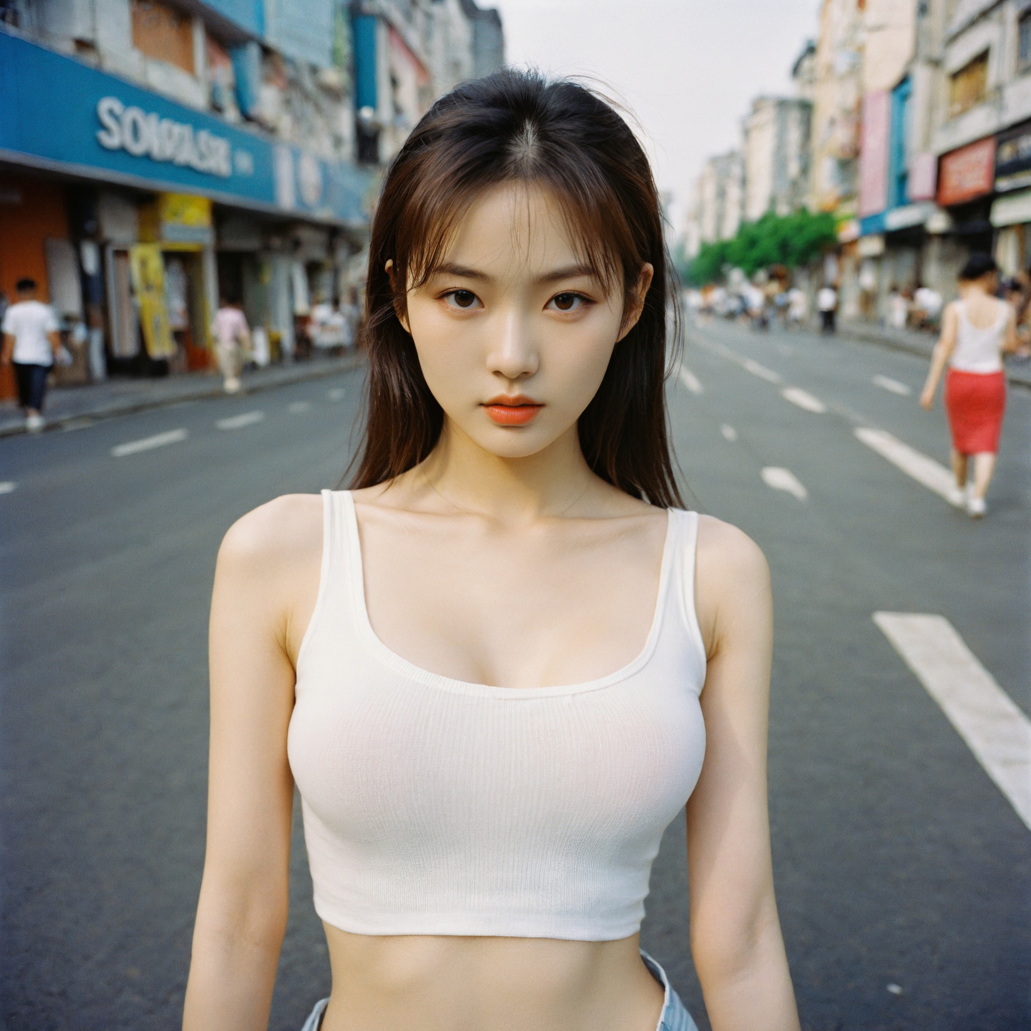{"3": {"inputs": {"seed": 388384012591186, "steps": 32, "cfg": 6.47, "sampler_name": "dpmpp_2m", "scheduler": "karras", "denoise": 1.0, "model": ["27", 0], "positive": ["6", 0], "negative": ["7", 0], "latent_image": ["5", 0]}, "class_type": "KSampler"}, "4": {"inputs": {"ckpt_name": "helloworldxl.safetensors"}, "class_type": "CheckpointLoaderSimple"}, "5": {"inputs": {"width": 1024, "height": 1024, "batch_size": 1}, "class_type": "EmptyLatentImage"}, "6": {"inputs": {"text": "19 year old girl, (russian:0.96), (korean:1.09), (detailed face:1.08), (slim:1.14), (seductive pose:1.07), (pale skin:0.98), (double eyelids:1.05), (temptress:1.04), (blush:0.97), (sexy lips:1.00), (idol:1.14), (cute:1.09), (seductive facial expression:0.97), (in a seductive pose:1.12), (large perky breasts:0.95), (cleavage:1.02), (thigh gap:1.00), (white tanktop:1.10), busy street, (portra:1.04), (candid cinema:1.04), (skin fuzz:1.07), (soft lighting:1.01), (natural looking skin:1.03), (textured skin:1.08), (detailed skin:1.03), (film:1.08), (RAW:1.08)", "clip": ["27", 1]}, "class_type": "CLIPTextEncode"}, "7": {"inputs": {"text": "(distorted:1.07), (open mouth:1.06), (low resolution:1.06), (watermark:1.06), (worst quality:1.09), (twisted:1.12), (bad hands:1.14)", "clip": ["27", 1]}, "class_type": "CLIPTextEncode"}, "8": {"inputs": {"samples": ["3", 0], "vae": ["4", 2]}, "class_type": "VAEDecode"}, "25": {"inputs": {"lora_name": "nudify_xl.safetensors", "strength_model": 0.0, "strength_clip": 0.0, "model": ["4", 0], "clip": ["4", 1]}, "class_type": "LoraLoader"}, "26": {"inputs": {"lora_name": "shirtlift_SDXL_v2.safetensors", "strength_model": 0.06, "strength_clip": 0.06, "model": ["25", 0], "clip": ["25", 1]}, "class_type": "LoraLoader"}, "27": {"inputs": {"lora_name": "PerfectEyesXL.safetensors", "strength_model": 0.17, "strength_clip": 0.08, "model": ["26", 0], "clip": ["26", 1]}, "class_type": "LoraLoader"}, "30": {"inputs": {"model_name": "4x_NMKD-Superscale-SP_178000_G.pth"}, "class_type": "UpscaleModelLoader"}, "31": {"inputs": {"upscale_model": ["30", 0], "image": ["8", 0]}, "class_type": "ImageUpscaleWithModel"}, "32": {"inputs": {"upscale_method": "lanczos", "scale_by": 0.5, "image": ["31", 0]}, "class_type": "ImageScaleBy"}, "33": {"inputs": {"pixels": ["32", 0], "vae": ["4", 2]}, "class_type": "VAEEncode"}, "34": {"inputs": {"seed": 388384012591186, "steps": 32, "cfg": 6.47, "sampler_name": "dpmpp_2m", "scheduler": "karras", "denoise": 0.3, "model": ["27", 0], "positive": ["6", 0], "negative": ["7", 0], "latent_image": ["33", 0]}, "class_type": "KSampler"}, "36": {"inputs": {"samples": ["34", 0], "vae": ["4", 2]}, "class_type": "VAEDecode"}, "39": {"inputs": {"filename_prefix": "comfyapi-1716090631704", "images": ["36", 0]}, "class_type": "SaveImage"}}