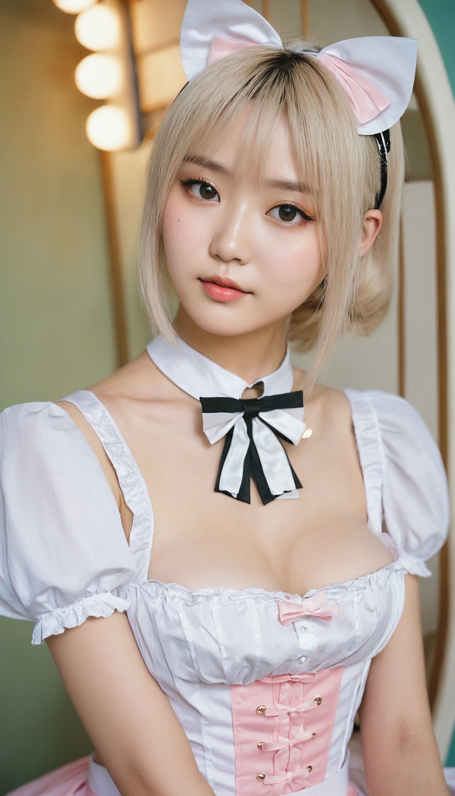 {"3": {"inputs": {"seed": 169025399946448, "steps": 64, "cfg": 5.23, "sampler_name": "dpmpp_2m", "scheduler": "karras", "denoise": 1.0, "model": ["27", 0], "positive": ["6", 0], "negative": ["7", 0], "latent_image": ["5", 0]}, "class_type": "KSampler"}, "4": {"inputs": {"ckpt_name": "juggernautxl.safetensors"}, "class_type": "CheckpointLoaderSimple"}, "5": {"inputs": {"width": 768, "height": 1344, "batch_size": 1}, "class_type": "EmptyLatentImage"}, "6": {"inputs": {"text": "18 year old girl, (ukrainian:0.99), (taiwanese:1.09), (idol:0.97), (detailed face:1.00), (slim:0.97), (cute:1.06), (double eyelids:1.04), (seductive facial expression:1.14), (pale skin:1.08), (sexy lips:1.01), (blush:1.09), (temptress:1.10), (seductive pose:0.95), (in a seductive pose:1.07), (large perky breasts:0.97), (cleavage:1.04), (thigh gap:1.05), in a (skimpy maid costume:1.12) working at a maid cafe, choker, bowtie, headband, pleated skirt, (film:1.05), (detailed skin:1.02), (portra:1.06), (soft lighting:1.07), (natural looking skin:1.06), (candid cinema:1.06), (RAW:1.01), (skin fuzz:1.02), (textured skin:1.09)", "clip": ["27", 1]}, "class_type": "CLIPTextEncode"}, "7": {"inputs": {"text": "(worst quality:1.12), (twisted:1.07), (distorted:1.08), (open mouth:1.13), (low resolution:1.07), (bad hands:1.11), (watermark:1.11)", "clip": ["27", 1]}, "class_type": "CLIPTextEncode"}, "8": {"inputs": {"samples": ["3", 0], "vae": ["4", 2]}, "class_type": "VAEDecode"}, "25": {"inputs": {"lora_name": "nudify_xl.safetensors", "strength_model": 0.12, "strength_clip": 0.15, "model": ["4", 0], "clip": ["4", 1]}, "class_type": "LoraLoader"}, "26": {"inputs": {"lora_name": "shirtlift_SDXL_v2.safetensors", "strength_model": 0.1, "strength_clip": 0.17, "model": ["25", 0], "clip": ["25", 1]}, "class_type": "LoraLoader"}, "27": {"inputs": {"lora_name": "PerfectEyesXL.safetensors", "strength_model": 0.01, "strength_clip": 0.06, "model": ["26", 0], "clip": ["26", 1]}, "class_type": "LoraLoader"}, "30": {"inputs": {"model_name": "4x_NMKD-Superscale-SP_178000_G.pth"}, "class_type": "UpscaleModelLoader"}, "31": {"inputs": {"upscale_model": ["30", 0], "image": ["8", 0]}, "class_type": "ImageUpscaleWithModel"}, "32": {"inputs": {"upscale_method": "lanczos", "scale_by": 0.5, "image": ["31", 0]}, "class_type": "ImageScaleBy"}, "33": {"inputs": {"pixels": ["32", 0], "vae": ["4", 2]}, "class_type": "VAEEncode"}, "34": {"inputs": {"seed": 169025399946448, "steps": 64, "cfg": 5.23, "sampler_name": "dpmpp_2m", "scheduler": "karras", "denoise": 0.3, "model": ["27", 0], "positive": ["6", 0], "negative": ["7", 0], "latent_image": ["33", 0]}, "class_type": "KSampler"}, "36": {"inputs": {"samples": ["34", 0], "vae": ["4", 2]}, "class_type": "VAEDecode"}, "39": {"inputs": {"filename_prefix": "comfyapi-1718508217062", "images": ["36", 0]}, "class_type": "SaveImage"}}