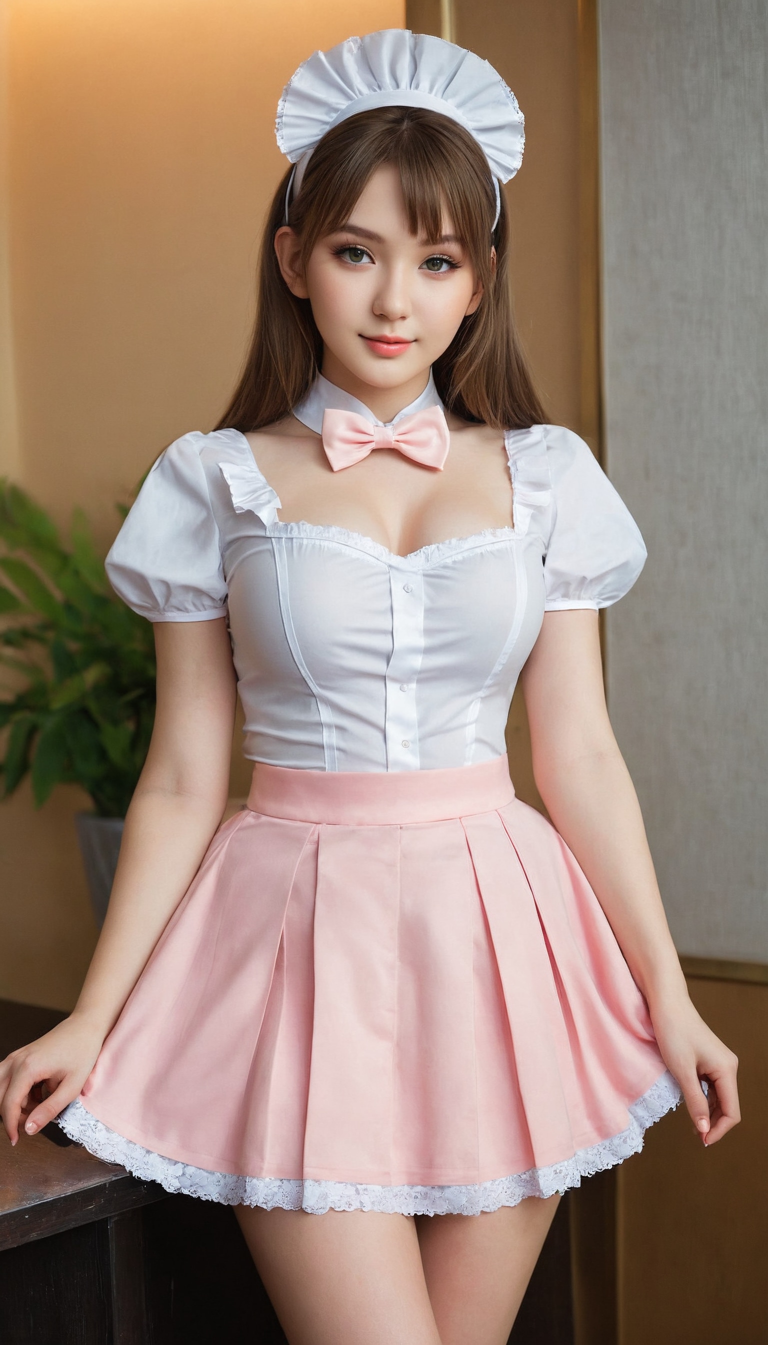 {"3": {"inputs": {"seed": 256928944797822, "steps": 32, "cfg": 6.06, "sampler_name": "dpmpp_2m", "scheduler": "karras", "denoise": 1.0, "model": ["27", 0], "positive": ["6", 0], "negative": ["7", 0], "latent_image": ["5", 0]}, "class_type": "KSampler"}, "4": {"inputs": {"ckpt_name": "juggernautXL_v8Rundiffusion.safetensors"}, "class_type": "CheckpointLoaderSimple"}, "5": {"inputs": {"width": 768, "height": 1344, "batch_size": 1}, "class_type": "EmptyLatentImage"}, "6": {"inputs": {"text": "19 year old girl, (irish:1.04), (ukrainian:1.01), (detailed face:1.11), (seductive pose:1.01), (seductive facial expression:1.00), (double eyelids:1.03), (slim:0.95), (temptress:1.09), (cute:1.03), (eyelashes:1.10), (beautiful eyes:1.09), (pale skin:0.97), (sexy lips:1.07), (blush:0.97), (in a seductive pose:0.95), (large perky breasts:1.04), (cleavage:1.08), (thigh gap:0.95), in a (skimpy maid costume:1.10) working at a maid cafe, choker, bowtie, headband, pleated skirt, (textured skin:1.06), (natural looking skin:1.09), (detailed skin:1.07), (soft lighting:1.08), (film:1.00), (skin fuzz:1.05), (RAW:1.08), (candid cinema:1.09), (portra:1.05)", "clip": ["27", 1]}, "class_type": "CLIPTextEncode"}, "7": {"inputs": {"text": "(worst quality:1.10), (open mouth:1.11), (low resolution:1.05), (watermark:1.06), (bad hands:1.08), (distorted:1.12), (twisted:1.13)", "clip": ["27", 1]}, "class_type": "CLIPTextEncode"}, "8": {"inputs": {"samples": ["3", 0], "vae": ["4", 2]}, "class_type": "VAEDecode"}, "25": {"inputs": {"lora_name": "nudify_xl.safetensors", "strength_model": 0.27, "strength_clip": 0.23, "model": ["4", 0], "clip": ["4", 1]}, "class_type": "LoraLoader"}, "26": {"inputs": {"lora_name": "shirtlift_SDXL_v2.safetensors", "strength_model": 0.06, "strength_clip": 0.02, "model": ["25", 0], "clip": ["25", 1]}, "class_type": "LoraLoader"}, "27": {"inputs": {"lora_name": "PerfectEyesXL.safetensors", "strength_model": 0.06, "strength_clip": 0.15, "model": ["26", 0], "clip": ["26", 1]}, "class_type": "LoraLoader"}, "30": {"inputs": {"model_name": "4x_NMKD-Superscale-SP_178000_G.pth"}, "class_type": "UpscaleModelLoader"}, "31": {"inputs": {"upscale_model": ["30", 0], "image": ["8", 0]}, "class_type": "ImageUpscaleWithModel"}, "32": {"inputs": {"upscale_method": "lanczos", "scale_by": 0.5, "image": ["31", 0]}, "class_type": "ImageScaleBy"}, "33": {"inputs": {"pixels": ["32", 0], "vae": ["4", 2]}, "class_type": "VAEEncode"}, "34": {"inputs": {"seed": 256928944797822, "steps": 32, "cfg": 6.06, "sampler_name": "dpmpp_2m", "scheduler": "karras", "denoise": 0.3, "model": ["27", 0], "positive": ["6", 0], "negative": ["7", 0], "latent_image": ["33", 0]}, "class_type": "KSampler"}, "36": {"inputs": {"samples": ["34", 0], "vae": ["4", 2]}, "class_type": "VAEDecode"}, "39": {"inputs": {"filename_prefix": "comfyapi-1707653590581", "images": ["36", 0]}, "class_type": "SaveImage"}}