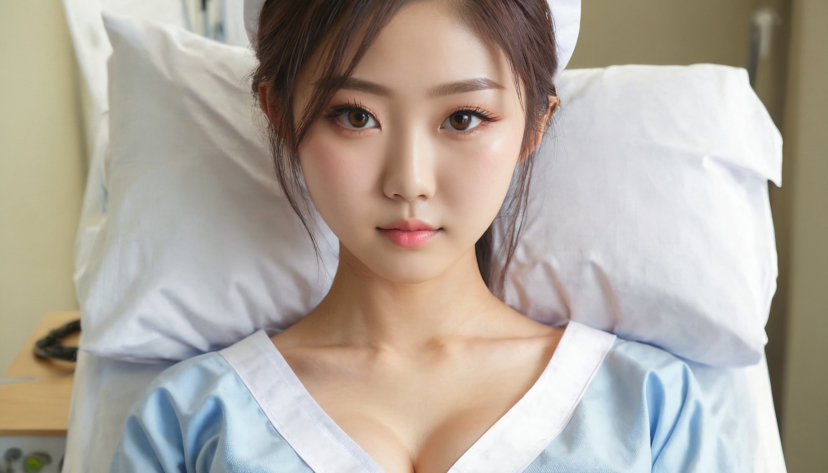 {"3": {"inputs": {"seed": 171203085589706, "steps": 64, "cfg": 5.94, "sampler_name": "dpmpp_2m", "scheduler": "karras", "denoise": 1.0, "model": ["27", 0], "positive": ["6", 0], "negative": ["7", 0], "latent_image": ["5", 0]}, "class_type": "KSampler"}, "4": {"inputs": {"ckpt_name": "juggernautxl.safetensors"}, "class_type": "CheckpointLoaderSimple"}, "5": {"inputs": {"width": 1344, "height": 768, "batch_size": 1}, "class_type": "EmptyLatentImage"}, "6": {"inputs": {"text": "19 year old girl, (japanese:1.14), (detailed face:1.04), (blush:1.14), (cute:1.09), (eyelashes:1.03), (double eyelids:1.14), (seductive pose:1.00), (beautiful eyes:1.12), (temptress:1.05), (seductive facial expression:1.09), (slim:1.02), (idol:0.96), (in a seductive pose:1.14), (large perky breasts:1.07), (cleavage:0.98), (thigh gap:0.95), (nurse in uniform:1.04) working in a hospital ward, (film:1.09), (textured skin:1.03), (portra:1.09), (RAW:1.08), (skin fuzz:1.03), (natural looking skin:1.01), (soft lighting:1.06), (candid cinema:1.05), (detailed skin:1.07)", "clip": ["27", 1]}, "class_type": "CLIPTextEncode"}, "7": {"inputs": {"text": "(distorted:1.08), (low resolution:1.09), (worst quality:1.07), (twisted:1.11), (bad hands:1.13), (open mouth:1.10), (watermark:1.14)", "clip": ["27", 1]}, "class_type": "CLIPTextEncode"}, "8": {"inputs": {"samples": ["3", 0], "vae": ["4", 2]}, "class_type": "VAEDecode"}, "25": {"inputs": {"lora_name": "nudify_xl.safetensors", "strength_model": 0.3, "strength_clip": 0.38, "model": ["4", 0], "clip": ["4", 1]}, "class_type": "LoraLoader"}, "26": {"inputs": {"lora_name": "shirtlift_SDXL_v2.safetensors", "strength_model": 0.03, "strength_clip": 0.14, "model": ["25", 0], "clip": ["25", 1]}, "class_type": "LoraLoader"}, "27": {"inputs": {"lora_name": "PerfectEyesXL.safetensors", "strength_model": 0.01, "strength_clip": 0.07, "model": ["26", 0], "clip": ["26", 1]}, "class_type": "LoraLoader"}, "30": {"inputs": {"model_name": "4x_NMKD-Superscale-SP_178000_G.pth"}, "class_type": "UpscaleModelLoader"}, "31": {"inputs": {"upscale_model": ["30", 0], "image": ["8", 0]}, "class_type": "ImageUpscaleWithModel"}, "32": {"inputs": {"upscale_method": "lanczos", "scale_by": 0.5, "image": ["31", 0]}, "class_type": "ImageScaleBy"}, "33": {"inputs": {"pixels": ["32", 0], "vae": ["4", 2]}, "class_type": "VAEEncode"}, "34": {"inputs": {"seed": 171203085589706, "steps": 64, "cfg": 5.94, "sampler_name": "dpmpp_2m", "scheduler": "karras", "denoise": 0.3, "model": ["27", 0], "positive": ["6", 0], "negative": ["7", 0], "latent_image": ["33", 0]}, "class_type": "KSampler"}, "36": {"inputs": {"samples": ["34", 0], "vae": ["4", 2]}, "class_type": "VAEDecode"}, "39": {"inputs": {"filename_prefix": "comfyapi-1713877326570", "images": ["36", 0]}, "class_type": "SaveImage"}}