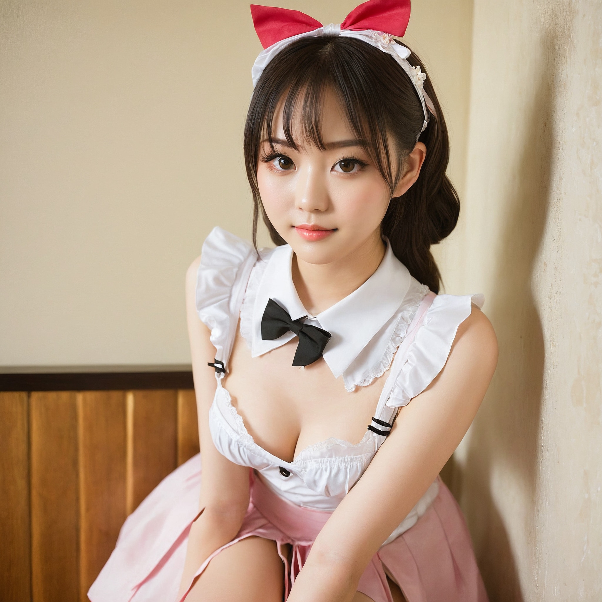 {"3": {"inputs": {"seed": 816990334095583, "steps": 32, "cfg": 6.2, "sampler_name": "dpmpp_2m", "scheduler": "karras", "denoise": 1.0, "model": ["27", 0], "positive": ["6", 0], "negative": ["7", 0], "latent_image": ["5", 0]}, "class_type": "KSampler"}, "4": {"inputs": {"ckpt_name": "juggernautxl.safetensors"}, "class_type": "CheckpointLoaderSimple"}, "5": {"inputs": {"width": 1024, "height": 1024, "batch_size": 1}, "class_type": "EmptyLatentImage"}, "6": {"inputs": {"text": "22 year old girl, (japanese:1.04), (seductive pose:0.97), (temptress:0.95), (cute:0.95), (beautiful eyes:1.05), (slim:1.05), (blush:0.99), (idol:1.03), (eyelashes:1.08), (seductive facial expression:1.05), (sexy lips:1.03), (detailed face:1.07), (double eyelids:1.01), (pale skin:1.08), (perky ass:1.13), (exposed ass:1.08), (looking back:1.13), (sexy ass:1.06), (thigh gap:1.10), in a (skimpy maid costume:1.04) working at a maid cafe, choker, bowtie, headband, pleated skirt, (natural looking skin:1.00), (soft lighting:1.00), (film:1.00), (textured skin:1.00), (portra:1.09), (RAW:1.08), (detailed skin:1.05), (candid cinema:1.02), (skin fuzz:1.04)", "clip": ["27", 1]}, "class_type": "CLIPTextEncode"}, "7": {"inputs": {"text": "(bad hands:1.12), (open mouth:1.07), (worst quality:1.14), (low resolution:1.10), (distorted:1.11), (watermark:1.12), (twisted:1.05)", "clip": ["27", 1]}, "class_type": "CLIPTextEncode"}, "8": {"inputs": {"samples": ["3", 0], "vae": ["4", 2]}, "class_type": "VAEDecode"}, "25": {"inputs": {"lora_name": "nudify_xl.safetensors", "strength_model": 0.32, "strength_clip": 0.17, "model": ["4", 0], "clip": ["4", 1]}, "class_type": "LoraLoader"}, "26": {"inputs": {"lora_name": "shirtlift_SDXL_v2.safetensors", "strength_model": 0.03, "strength_clip": 0.0, "model": ["25", 0], "clip": ["25", 1]}, "class_type": "LoraLoader"}, "27": {"inputs": {"lora_name": "PerfectEyesXL.safetensors", "strength_model": 0.09, "strength_clip": 0.04, "model": ["26", 0], "clip": ["26", 1]}, "class_type": "LoraLoader"}, "30": {"inputs": {"model_name": "4x_NMKD-Superscale-SP_178000_G.pth"}, "class_type": "UpscaleModelLoader"}, "31": {"inputs": {"upscale_model": ["30", 0], "image": ["8", 0]}, "class_type": "ImageUpscaleWithModel"}, "32": {"inputs": {"upscale_method": "lanczos", "scale_by": 0.5, "image": ["31", 0]}, "class_type": "ImageScaleBy"}, "33": {"inputs": {"pixels": ["32", 0], "vae": ["4", 2]}, "class_type": "VAEEncode"}, "34": {"inputs": {"seed": 816990334095583, "steps": 32, "cfg": 6.2, "sampler_name": "dpmpp_2m", "scheduler": "karras", "denoise": 0.3, "model": ["27", 0], "positive": ["6", 0], "negative": ["7", 0], "latent_image": ["33", 0]}, "class_type": "KSampler"}, "36": {"inputs": {"samples": ["34", 0], "vae": ["4", 2]}, "class_type": "VAEDecode"}, "39": {"inputs": {"filename_prefix": "comfyapi-1718476054476", "images": ["36", 0]}, "class_type": "SaveImage"}}