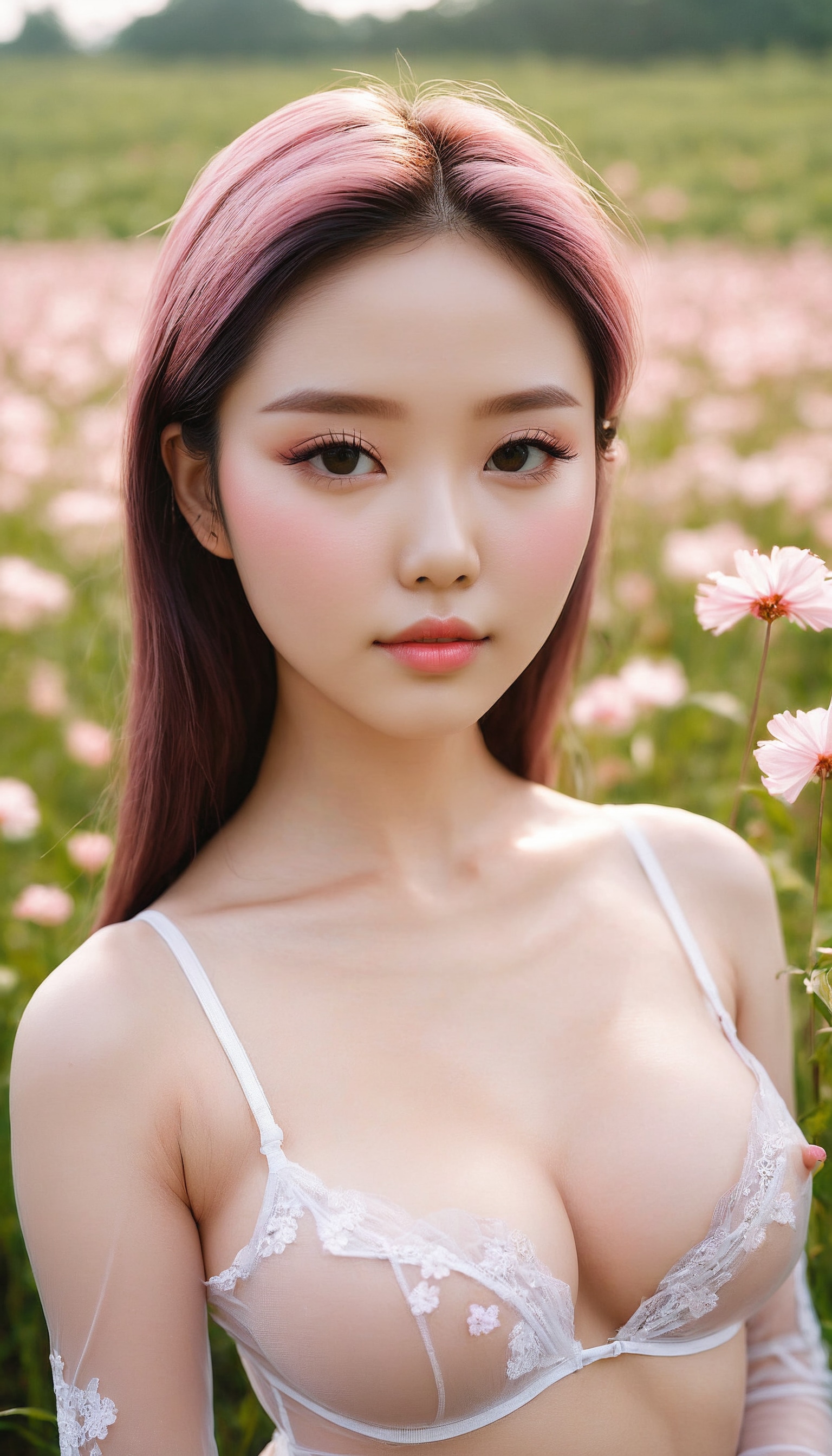 {"3": {"inputs": {"seed": 768351690316057, "steps": 64, "cfg": 7.84, "sampler_name": "dpmpp_2m", "scheduler": "karras", "denoise": 1.0, "model": ["27", 0], "positive": ["6", 0], "negative": ["7", 0], "latent_image": ["5", 0]}, "class_type": "KSampler"}, "4": {"inputs": {"ckpt_name": "juggernautxl.safetensors"}, "class_type": "CheckpointLoaderSimple"}, "5": {"inputs": {"width": 768, "height": 1344, "batch_size": 1}, "class_type": "EmptyLatentImage"}, "6": {"inputs": {"text": "24 year old girl, (double eyelids:0.99), (idol:0.97), (cute:1.01), (slim:1.04), (sexy lips:1.13), (blush:1.04), (detailed face:0.97), (seductive pose:0.97), (pale skin:1.14), (temptress:0.98), (eyelashes:0.97), (in a seductive pose:1.02), (large perky breasts:1.01), (cleavage:1.01), (thigh gap:0.96), wearing (translucent clothes:1.12) on a flower field, (textured skin:1.02), (detailed skin:1.08), (candid cinema:1.04), (RAW:1.04), (natural looking skin:1.07), (film:1.07), (skin fuzz:1.03), (soft lighting:1.00), (portra:1.03)", "clip": ["27", 1]}, "class_type": "CLIPTextEncode"}, "7": {"inputs": {"text": "(bad hands:1.07), (distorted:1.07), (twisted:1.12), (open mouth:1.13), (worst quality:1.12), (low resolution:1.10), (watermark:1.10)", "clip": ["27", 1]}, "class_type": "CLIPTextEncode"}, "8": {"inputs": {"samples": ["3", 0], "vae": ["4", 2]}, "class_type": "VAEDecode"}, "25": {"inputs": {"lora_name": "nudify_xl.safetensors", "strength_model": 0.36, "strength_clip": 0.04, "model": ["4", 0], "clip": ["4", 1]}, "class_type": "LoraLoader"}, "26": {"inputs": {"lora_name": "shirtlift_SDXL_v2.safetensors", "strength_model": 0.03, "strength_clip": 0.17, "model": ["25", 0], "clip": ["25", 1]}, "class_type": "LoraLoader"}, "27": {"inputs": {"lora_name": "PerfectEyesXL.safetensors", "strength_model": 0.04, "strength_clip": 0.04, "model": ["26", 0], "clip": ["26", 1]}, "class_type": "LoraLoader"}, "30": {"inputs": {"model_name": "4x_NMKD-Superscale-SP_178000_G.pth"}, "class_type": "UpscaleModelLoader"}, "31": {"inputs": {"upscale_model": ["30", 0], "image": ["8", 0]}, "class_type": "ImageUpscaleWithModel"}, "32": {"inputs": {"upscale_method": "lanczos", "scale_by": 0.5, "image": ["31", 0]}, "class_type": "ImageScaleBy"}, "33": {"inputs": {"pixels": ["32", 0], "vae": ["4", 2]}, "class_type": "VAEEncode"}, "34": {"inputs": {"seed": 768351690316057, "steps": 64, "cfg": 7.84, "sampler_name": "dpmpp_2m", "scheduler": "karras", "denoise": 0.3, "model": ["27", 0], "positive": ["6", 0], "negative": ["7", 0], "latent_image": ["33", 0]}, "class_type": "KSampler"}, "36": {"inputs": {"samples": ["34", 0], "vae": ["4", 2]}, "class_type": "VAEDecode"}, "39": {"inputs": {"filename_prefix": "comfyapi-1728264406347", "images": ["36", 0]}, "class_type": "SaveImage"}}