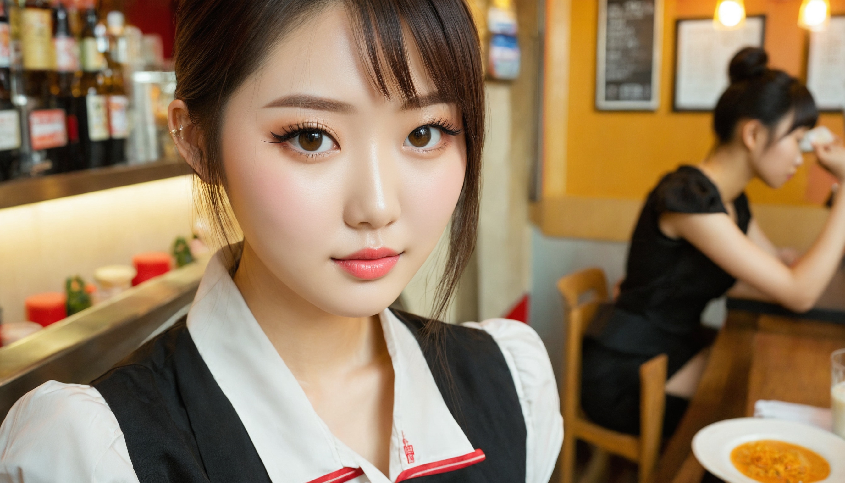 {"3": {"inputs": {"seed": 721448641081320, "steps": 64, "cfg": 6.0, "sampler_name": "dpmpp_2m", "scheduler": "karras", "denoise": 1.0, "model": ["27", 0], "positive": ["6", 0], "negative": ["7", 0], "latent_image": ["5", 0]}, "class_type": "KSampler"}, "4": {"inputs": {"ckpt_name": "juggernautxl.safetensors"}, "class_type": "CheckpointLoaderSimple"}, "5": {"inputs": {"width": 1344, "height": 768, "batch_size": 1}, "class_type": "EmptyLatentImage"}, "6": {"inputs": {"text": "21 year old girl, (chinese:1.04), (taiwanese:1.05), (cute:0.97), (beautiful eyes:1.02), (temptress:1.04), (seductive facial expression:1.08), (seductive pose:1.08), (sexy lips:1.12), (pale skin:1.00), (detailed face:0.95), (slim:1.05), (double eyelids:1.14), (eyelashes:1.08), (idol:0.95), (blush:0.95), (in a seductive pose:1.06), (large perky breasts:1.06), (cleavage:0.99), (thigh gap:1.01), (a waitress in uniform:1.04) working at a restaurant, (textured skin:1.07), (candid cinema:1.02), (RAW:1.03), (soft lighting:1.00), (portra:1.07), (natural looking skin:1.01), (skin fuzz:1.08), (film:1.03), (detailed skin:1.09)", "clip": ["27", 1]}, "class_type": "CLIPTextEncode"}, "7": {"inputs": {"text": "(twisted:1.10), (distorted:1.13), (watermark:1.05), (open mouth:1.08), (worst quality:1.09), (low resolution:1.12), (bad hands:1.13)", "clip": ["27", 1]}, "class_type": "CLIPTextEncode"}, "8": {"inputs": {"samples": ["3", 0], "vae": ["4", 2]}, "class_type": "VAEDecode"}, "25": {"inputs": {"lora_name": "nudify_xl.safetensors", "strength_model": 0.31, "strength_clip": 0.37, "model": ["4", 0], "clip": ["4", 1]}, "class_type": "LoraLoader"}, "26": {"inputs": {"lora_name": "shirtlift_SDXL_v2.safetensors", "strength_model": 0.03, "strength_clip": 0.03, "model": ["25", 0], "clip": ["25", 1]}, "class_type": "LoraLoader"}, "27": {"inputs": {"lora_name": "PerfectEyesXL.safetensors", "strength_model": 0.18, "strength_clip": 0.04, "model": ["26", 0], "clip": ["26", 1]}, "class_type": "LoraLoader"}, "30": {"inputs": {"model_name": "4x_NMKD-Superscale-SP_178000_G.pth"}, "class_type": "UpscaleModelLoader"}, "31": {"inputs": {"upscale_model": ["30", 0], "image": ["8", 0]}, "class_type": "ImageUpscaleWithModel"}, "32": {"inputs": {"upscale_method": "lanczos", "scale_by": 0.5, "image": ["31", 0]}, "class_type": "ImageScaleBy"}, "33": {"inputs": {"pixels": ["32", 0], "vae": ["4", 2]}, "class_type": "VAEEncode"}, "34": {"inputs": {"seed": 721448641081320, "steps": 64, "cfg": 6.0, "sampler_name": "dpmpp_2m", "scheduler": "karras", "denoise": 0.3, "model": ["27", 0], "positive": ["6", 0], "negative": ["7", 0], "latent_image": ["33", 0]}, "class_type": "KSampler"}, "36": {"inputs": {"samples": ["34", 0], "vae": ["4", 2]}, "class_type": "VAEDecode"}, "39": {"inputs": {"filename_prefix": "comfyapi-1716488004244", "images": ["36", 0]}, "class_type": "SaveImage"}}