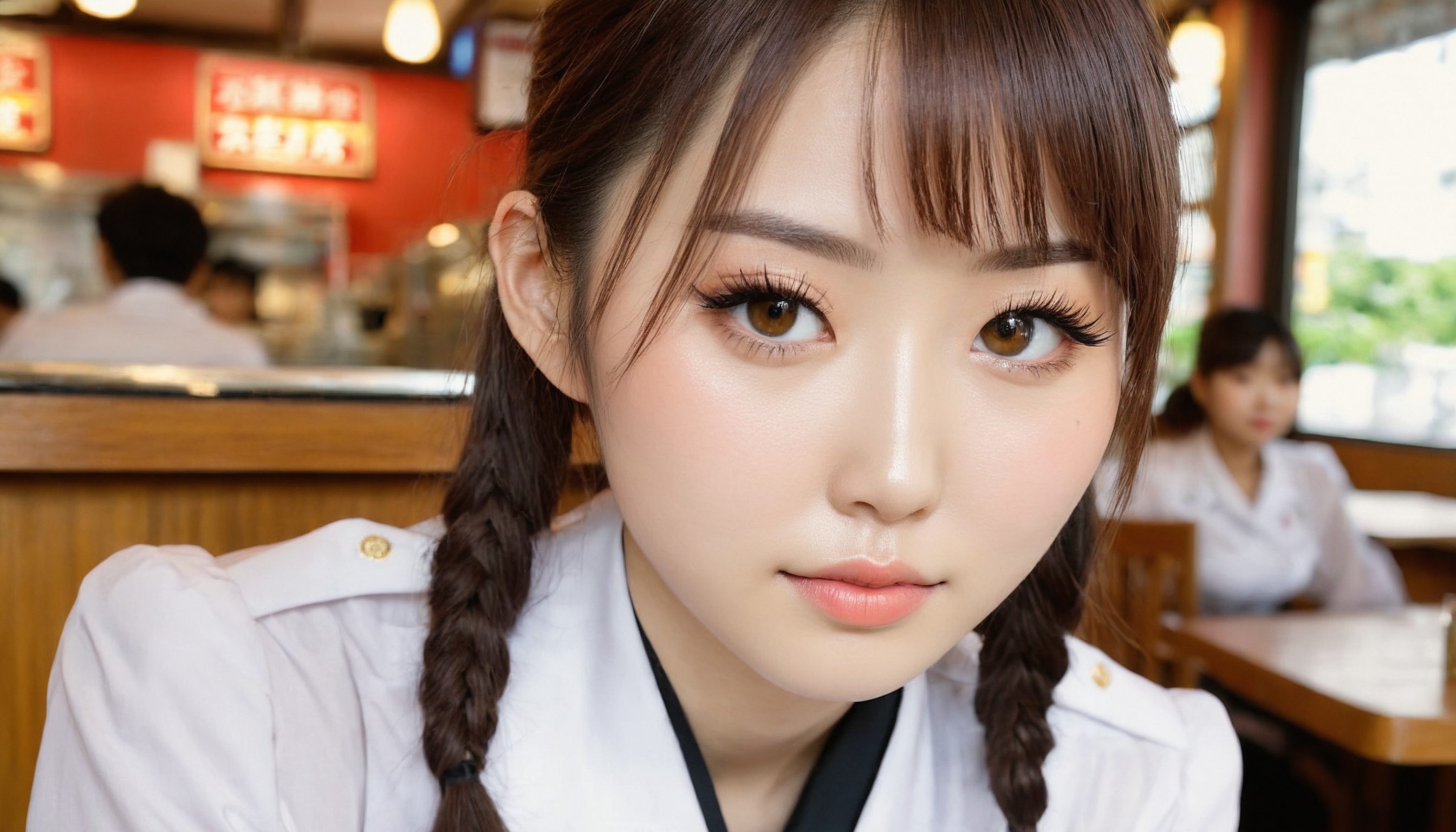 {"3": {"inputs": {"seed": 409582742130545, "steps": 64, "cfg": 5.6, "sampler_name": "dpmpp_2m", "scheduler": "karras", "denoise": 1.0, "model": ["27", 0], "positive": ["6", 0], "negative": ["7", 0], "latent_image": ["5", 0]}, "class_type": "KSampler"}, "4": {"inputs": {"ckpt_name": "juggernautxl.safetensors"}, "class_type": "CheckpointLoaderSimple"}, "5": {"inputs": {"width": 1344, "height": 768, "batch_size": 1}, "class_type": "EmptyLatentImage"}, "6": {"inputs": {"text": "26 year old girl, (japanese:1.12), (blush:1.00), (pale skin:1.14), (seductive pose:0.98), (idol:1.07), (temptress:1.03), (cute:1.07), (seductive facial expression:1.01), (beautiful eyes:0.95), (sexy lips:1.06), (eyelashes:1.10), (detailed face:1.03), (double eyelids:1.01), (perky ass:0.99), (exposed ass:0.98), (looking back:0.95), (sexy ass:1.11), (thigh gap:1.09), (a waitress in uniform:1.01) working at a restaurant, (portra:1.09), (skin fuzz:1.01), (film:1.01), (soft lighting:1.02), (candid cinema:1.08), (detailed skin:1.09), (natural looking skin:1.03), (RAW:1.04), (textured skin:1.03)", "clip": ["27", 1]}, "class_type": "CLIPTextEncode"}, "7": {"inputs": {"text": "(worst quality:1.14), (open mouth:1.12), (low resolution:1.10), (twisted:1.11), (watermark:1.11), (bad hands:1.05), (distorted:1.05)", "clip": ["27", 1]}, "class_type": "CLIPTextEncode"}, "8": {"inputs": {"samples": ["3", 0], "vae": ["4", 2]}, "class_type": "VAEDecode"}, "25": {"inputs": {"lora_name": "nudify_xl.safetensors", "strength_model": 0.16, "strength_clip": 0.17, "model": ["4", 0], "clip": ["4", 1]}, "class_type": "LoraLoader"}, "26": {"inputs": {"lora_name": "shirtlift_SDXL_v2.safetensors", "strength_model": 0.06, "strength_clip": 0.01, "model": ["25", 0], "clip": ["25", 1]}, "class_type": "LoraLoader"}, "27": {"inputs": {"lora_name": "PerfectEyesXL.safetensors", "strength_model": 0.18, "strength_clip": 0.16, "model": ["26", 0], "clip": ["26", 1]}, "class_type": "LoraLoader"}, "30": {"inputs": {"model_name": "4x_NMKD-Superscale-SP_178000_G.pth"}, "class_type": "UpscaleModelLoader"}, "31": {"inputs": {"upscale_model": ["30", 0], "image": ["8", 0]}, "class_type": "ImageUpscaleWithModel"}, "32": {"inputs": {"upscale_method": "lanczos", "scale_by": 0.5, "image": ["31", 0]}, "class_type": "ImageScaleBy"}, "33": {"inputs": {"pixels": ["32", 0], "vae": ["4", 2]}, "class_type": "VAEEncode"}, "34": {"inputs": {"seed": 409582742130545, "steps": 64, "cfg": 5.6, "sampler_name": "dpmpp_2m", "scheduler": "karras", "denoise": 0.3, "model": ["27", 0], "positive": ["6", 0], "negative": ["7", 0], "latent_image": ["33", 0]}, "class_type": "KSampler"}, "36": {"inputs": {"samples": ["34", 0], "vae": ["4", 2]}, "class_type": "VAEDecode"}, "39": {"inputs": {"filename_prefix": "comfyapi-1724962173666", "images": ["36", 0]}, "class_type": "SaveImage"}}