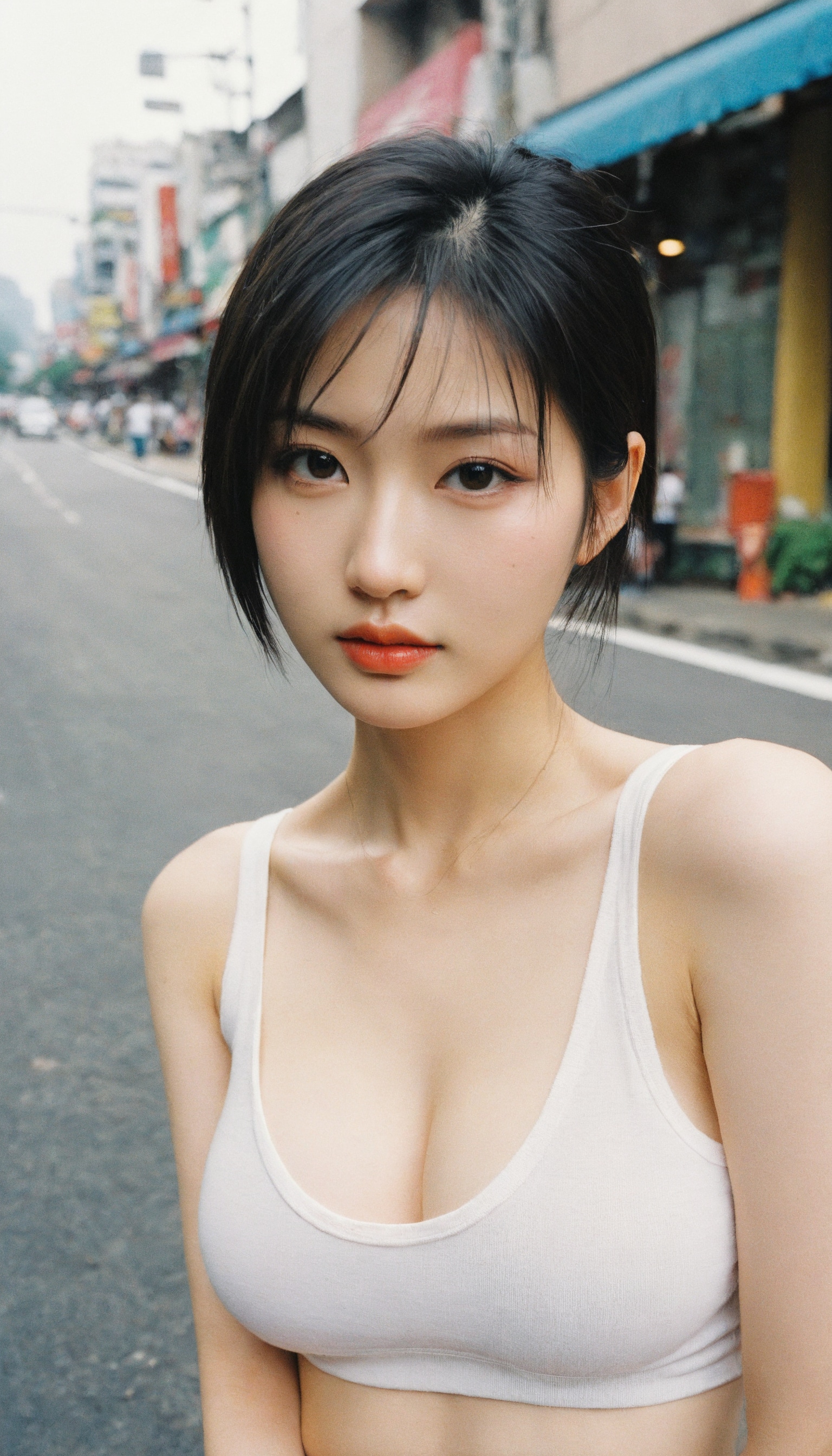 {"3": {"inputs": {"seed": 105374983040271, "steps": 32, "cfg": 5.16, "sampler_name": "dpmpp_2m", "scheduler": "karras", "denoise": 1.0, "model": ["27", 0], "positive": ["6", 0], "negative": ["7", 0], "latent_image": ["5", 0]}, "class_type": "KSampler"}, "4": {"inputs": {"ckpt_name": "helloworldxl.safetensors"}, "class_type": "CheckpointLoaderSimple"}, "5": {"inputs": {"width": 768, "height": 1344, "batch_size": 1}, "class_type": "EmptyLatentImage"}, "6": {"inputs": {"text": "28 year old girl, (taiwanese:1.07), (temptress:0.95), (seductive pose:1.08), (cute:1.05), (seductive facial expression:1.07), (blush:1.06), (beautiful eyes:1.08), (sexy lips:1.14), (eyelashes:1.12), (double eyelids:0.97), (pale skin:0.98), (in a seductive pose:0.97), (large perky breasts:1.08), (cleavage:0.99), (thigh gap:1.00), (white tanktop:0.98), busy street, (film:1.02), (textured skin:1.04), (skin fuzz:1.02), (detailed skin:1.03), (candid cinema:1.07), (RAW:1.05), (portra:1.08), (natural looking skin:1.05), (soft lighting:1.09)", "clip": ["27", 1]}, "class_type": "CLIPTextEncode"}, "7": {"inputs": {"text": "(low resolution:1.12), (watermark:1.05), (bad hands:1.06), (worst quality:1.08), (distorted:1.10), (open mouth:1.13), (twisted:1.10)", "clip": ["27", 1]}, "class_type": "CLIPTextEncode"}, "8": {"inputs": {"samples": ["3", 0], "vae": ["4", 2]}, "class_type": "VAEDecode"}, "25": {"inputs": {"lora_name": "nudify_xl.safetensors", "strength_model": 0.03, "strength_clip": 0.23, "model": ["4", 0], "clip": ["4", 1]}, "class_type": "LoraLoader"}, "26": {"inputs": {"lora_name": "shirtlift_SDXL_v2.safetensors", "strength_model": 0.07, "strength_clip": 0.01, "model": ["25", 0], "clip": ["25", 1]}, "class_type": "LoraLoader"}, "27": {"inputs": {"lora_name": "PerfectEyesXL.safetensors", "strength_model": 0.13, "strength_clip": 0.13, "model": ["26", 0], "clip": ["26", 1]}, "class_type": "LoraLoader"}, "30": {"inputs": {"model_name": "4x_NMKD-Superscale-SP_178000_G.pth"}, "class_type": "UpscaleModelLoader"}, "31": {"inputs": {"upscale_model": ["30", 0], "image": ["8", 0]}, "class_type": "ImageUpscaleWithModel"}, "32": {"inputs": {"upscale_method": "lanczos", "scale_by": 0.5, "image": ["31", 0]}, "class_type": "ImageScaleBy"}, "33": {"inputs": {"pixels": ["32", 0], "vae": ["4", 2]}, "class_type": "VAEEncode"}, "34": {"inputs": {"seed": 105374983040271, "steps": 32, "cfg": 5.16, "sampler_name": "dpmpp_2m", "scheduler": "karras", "denoise": 0.3, "model": ["27", 0], "positive": ["6", 0], "negative": ["7", 0], "latent_image": ["33", 0]}, "class_type": "KSampler"}, "36": {"inputs": {"samples": ["34", 0], "vae": ["4", 2]}, "class_type": "VAEDecode"}, "39": {"inputs": {"filename_prefix": "comfyapi-1723766366815", "images": ["36", 0]}, "class_type": "SaveImage"}}