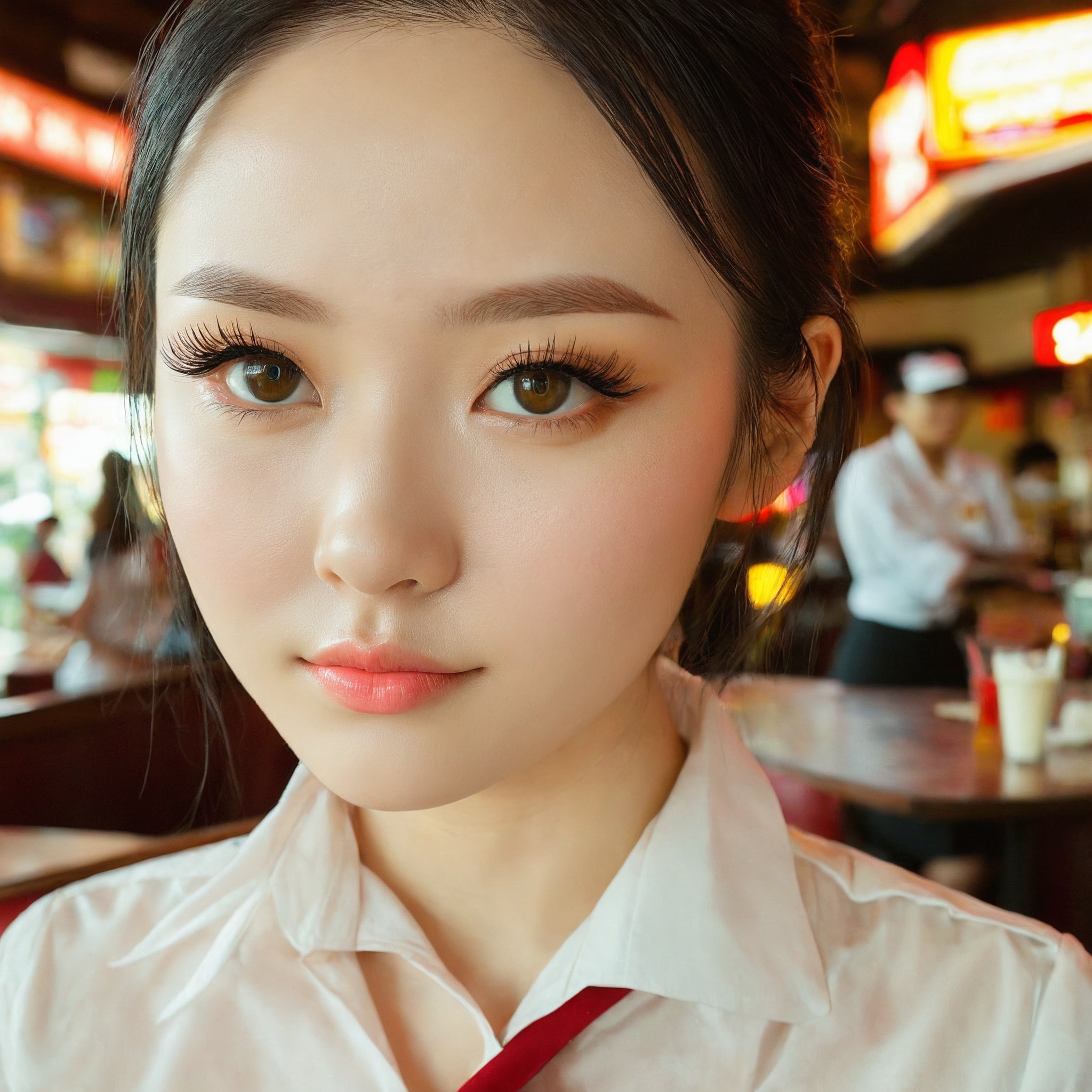 {"3": {"inputs": {"seed": 287049542129331, "steps": 32, "cfg": 5.5, "sampler_name": "dpmpp_2m", "scheduler": "karras", "denoise": 1.0, "model": ["27", 0], "positive": ["6", 0], "negative": ["7", 0], "latent_image": ["5", 0]}, "class_type": "KSampler"}, "4": {"inputs": {"ckpt_name": "juggernautxl.safetensors"}, "class_type": "CheckpointLoaderSimple"}, "5": {"inputs": {"width": 1024, "height": 1024, "batch_size": 1}, "class_type": "EmptyLatentImage"}, "6": {"inputs": {"text": "26 year old girl, (double eyelids:1.09), (eyelashes:1.06), (cute:1.14), (detailed face:1.05), (temptress:1.06), (beautiful eyes:1.09), (pale skin:1.06), (sexy lips:1.07), (idol:1.04), (seductive facial expression:1.08), (seductive pose:0.99), (slim:1.10), (in a seductive pose:1.06), (large perky breasts:0.97), (cleavage:1.03), (thigh gap:0.98), (a waitress in uniform:1.08) working at a restaurant, (film:1.09), (detailed skin:1.02), (candid cinema:1.02), (skin fuzz:1.09), (portra:1.07), (natural looking skin:1.02), (soft lighting:1.08), (textured skin:1.04), (RAW:1.07)", "clip": ["27", 1]}, "class_type": "CLIPTextEncode"}, "7": {"inputs": {"text": "(twisted:1.06), (watermark:1.10), (distorted:1.11), (bad hands:1.05), (worst quality:1.09), (open mouth:1.11), (low resolution:1.14)", "clip": ["27", 1]}, "class_type": "CLIPTextEncode"}, "8": {"inputs": {"samples": ["3", 0], "vae": ["4", 2]}, "class_type": "VAEDecode"}, "25": {"inputs": {"lora_name": "nudify_xl.safetensors", "strength_model": 0.24, "strength_clip": 0.38, "model": ["4", 0], "clip": ["4", 1]}, "class_type": "LoraLoader"}, "26": {"inputs": {"lora_name": "shirtlift_SDXL_v2.safetensors", "strength_model": 0.01, "strength_clip": 0.18, "model": ["25", 0], "clip": ["25", 1]}, "class_type": "LoraLoader"}, "27": {"inputs": {"lora_name": "PerfectEyesXL.safetensors", "strength_model": 0.08, "strength_clip": 0.03, "model": ["26", 0], "clip": ["26", 1]}, "class_type": "LoraLoader"}, "30": {"inputs": {"model_name": "4x_NMKD-Superscale-SP_178000_G.pth"}, "class_type": "UpscaleModelLoader"}, "31": {"inputs": {"upscale_model": ["30", 0], "image": ["8", 0]}, "class_type": "ImageUpscaleWithModel"}, "32": {"inputs": {"upscale_method": "lanczos", "scale_by": 0.5, "image": ["31", 0]}, "class_type": "ImageScaleBy"}, "33": {"inputs": {"pixels": ["32", 0], "vae": ["4", 2]}, "class_type": "VAEEncode"}, "34": {"inputs": {"seed": 287049542129331, "steps": 32, "cfg": 5.5, "sampler_name": "dpmpp_2m", "scheduler": "karras", "denoise": 0.3, "model": ["27", 0], "positive": ["6", 0], "negative": ["7", 0], "latent_image": ["33", 0]}, "class_type": "KSampler"}, "36": {"inputs": {"samples": ["34", 0], "vae": ["4", 2]}, "class_type": "VAEDecode"}, "39": {"inputs": {"filename_prefix": "comfyapi-1734066609662", "images": ["36", 0]}, "class_type": "SaveImage"}}