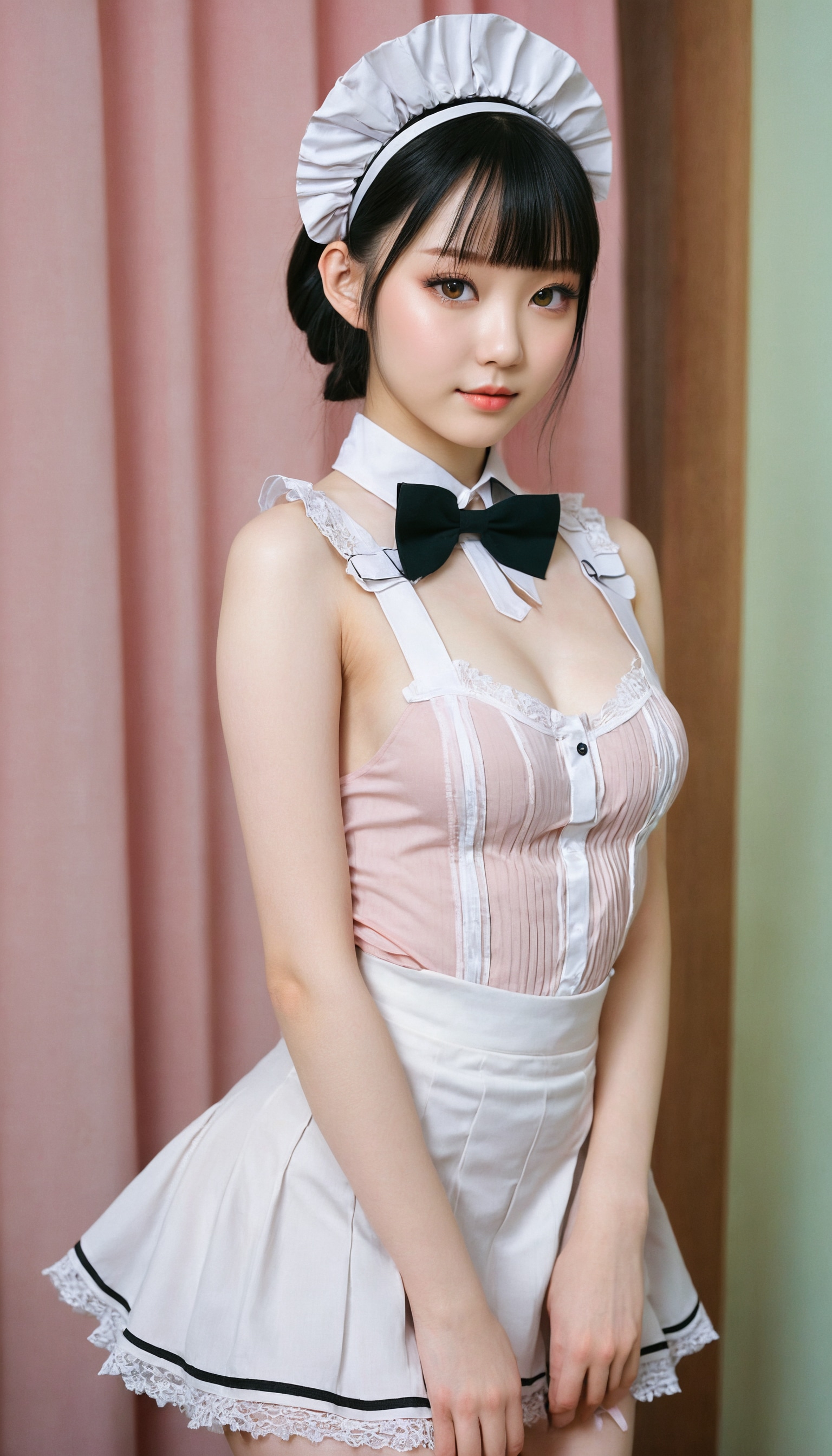 {"3": {"inputs": {"seed": 228906453417802, "steps": 64, "cfg": 7.96, "sampler_name": "dpmpp_2m", "scheduler": "karras", "denoise": 1.0, "model": ["27", 0], "positive": ["6", 0], "negative": ["7", 0], "latent_image": ["5", 0]}, "class_type": "KSampler"}, "4": {"inputs": {"ckpt_name": "juggernautxl.safetensors"}, "class_type": "CheckpointLoaderSimple"}, "5": {"inputs": {"width": 768, "height": 1344, "batch_size": 1}, "class_type": "EmptyLatentImage"}, "6": {"inputs": {"text": "18 year old girl, (chinese:1.00), (ukrainian:1.12), (temptress:1.13), (idol:1.10), (cute:0.96), (pale skin:0.96), (blush:1.11), (slim:1.11), (detailed face:1.14), (double eyelids:0.96), (beautiful eyes:1.02), (eyelashes:0.97), (seductive facial expression:0.98), (sexy lips:0.98), (seductive pose:1.08), (perky ass:1.05), (exposed ass:1.06), (looking back:1.13), (sexy ass:0.96), (thigh gap:1.10), in a (skimpy maid costume:0.95) working at a maid cafe, choker, bowtie, headband, pleated skirt, (soft lighting:1.04), (textured skin:1.01), (RAW:1.02), (natural looking skin:1.01), (film:1.08), (detailed skin:1.04), (portra:1.03), (candid cinema:1.00), (skin fuzz:1.01)", "clip": ["27", 1]}, "class_type": "CLIPTextEncode"}, "7": {"inputs": {"text": "(low resolution:1.10), (watermark:1.11), (bad hands:1.08), (open mouth:1.09), (twisted:1.07), (worst quality:1.05), (distorted:1.10)", "clip": ["27", 1]}, "class_type": "CLIPTextEncode"}, "8": {"inputs": {"samples": ["3", 0], "vae": ["4", 2]}, "class_type": "VAEDecode"}, "25": {"inputs": {"lora_name": "nudify_xl.safetensors", "strength_model": 0.26, "strength_clip": 0.07, "model": ["4", 0], "clip": ["4", 1]}, "class_type": "LoraLoader"}, "26": {"inputs": {"lora_name": "shirtlift_SDXL_v2.safetensors", "strength_model": 0.11, "strength_clip": 0.12, "model": ["25", 0], "clip": ["25", 1]}, "class_type": "LoraLoader"}, "27": {"inputs": {"lora_name": "PerfectEyesXL.safetensors", "strength_model": 0.19, "strength_clip": 0.01, "model": ["26", 0], "clip": ["26", 1]}, "class_type": "LoraLoader"}, "30": {"inputs": {"model_name": "4x_NMKD-Superscale-SP_178000_G.pth"}, "class_type": "UpscaleModelLoader"}, "31": {"inputs": {"upscale_model": ["30", 0], "image": ["8", 0]}, "class_type": "ImageUpscaleWithModel"}, "32": {"inputs": {"upscale_method": "lanczos", "scale_by": 0.5, "image": ["31", 0]}, "class_type": "ImageScaleBy"}, "33": {"inputs": {"pixels": ["32", 0], "vae": ["4", 2]}, "class_type": "VAEEncode"}, "34": {"inputs": {"seed": 228906453417802, "steps": 64, "cfg": 7.96, "sampler_name": "dpmpp_2m", "scheduler": "karras", "denoise": 0.3, "model": ["27", 0], "positive": ["6", 0], "negative": ["7", 0], "latent_image": ["33", 0]}, "class_type": "KSampler"}, "36": {"inputs": {"samples": ["34", 0], "vae": ["4", 2]}, "class_type": "VAEDecode"}, "39": {"inputs": {"filename_prefix": "comfyapi-1716343309628", "images": ["36", 0]}, "class_type": "SaveImage"}}