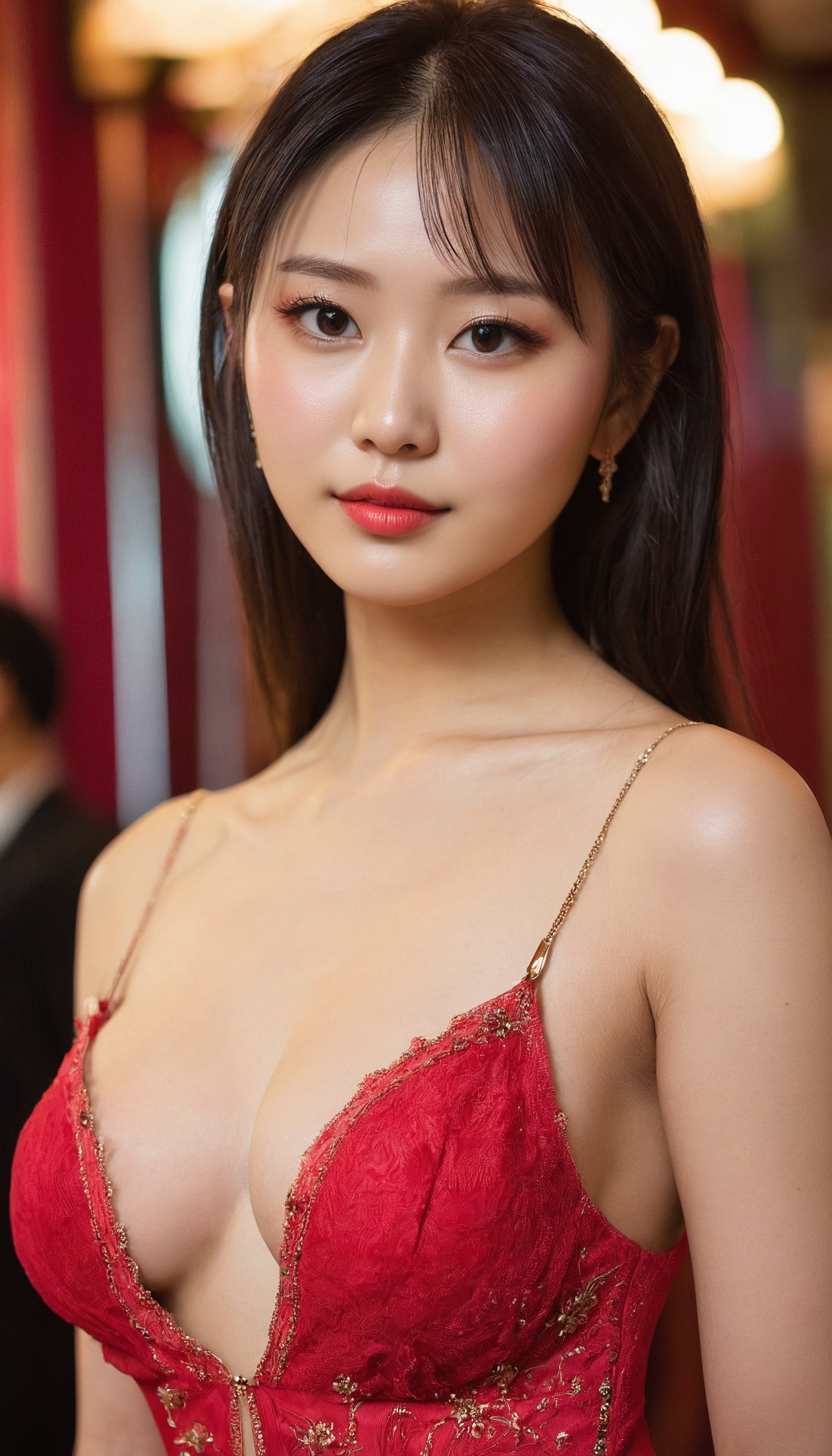 {"3": {"inputs": {"seed": 408022179695890, "steps": 32, "cfg": 5.49, "sampler_name": "dpmpp_2m", "scheduler": "karras", "denoise": 1.0, "model": ["27", 0], "positive": ["6", 0], "negative": ["7", 0], "latent_image": ["5", 0]}, "class_type": "KSampler"}, "4": {"inputs": {"ckpt_name": "juggernautxl.safetensors"}, "class_type": "CheckpointLoaderSimple"}, "5": {"inputs": {"width": 768, "height": 1344, "batch_size": 1}, "class_type": "EmptyLatentImage"}, "6": {"inputs": {"text": "21 year old girl, (irish:0.97), (taiwanese:1.03), (ukrainian:1.06), (idol:1.14), (detailed face:0.99), (seductive facial expression:1.12), (blush:1.00), (slim:1.10), (double eyelids:0.98), (cute:1.01), (seductive pose:1.01), (sexy lips:1.02), (temptress:1.04), (beautiful eyes:1.03), (eyelashes:0.99), (in a seductive pose:1.06), (large perky breasts:1.01), (cleavage:0.99), (thigh gap:1.10), (wearing a low-cut red dress:1.02) at a ballroom, (detailed skin:1.08), (film:1.04), (textured skin:1.09), (natural looking skin:1.03), (candid cinema:1.07), (skin fuzz:1.06), (portra:1.04), (soft lighting:1.02), (RAW:1.09)", "clip": ["27", 1]}, "class_type": "CLIPTextEncode"}, "7": {"inputs": {"text": "(open mouth:1.13), (watermark:1.06), (distorted:1.14), (bad hands:1.09), (low resolution:1.06), (worst quality:1.10), (twisted:1.09)", "clip": ["27", 1]}, "class_type": "CLIPTextEncode"}, "8": {"inputs": {"samples": ["3", 0], "vae": ["4", 2]}, "class_type": "VAEDecode"}, "25": {"inputs": {"lora_name": "nudify_xl.safetensors", "strength_model": 0.22, "strength_clip": 0.15, "model": ["4", 0], "clip": ["4", 1]}, "class_type": "LoraLoader"}, "26": {"inputs": {"lora_name": "shirtlift_SDXL_v2.safetensors", "strength_model": 0.04, "strength_clip": 0.05, "model": ["25", 0], "clip": ["25", 1]}, "class_type": "LoraLoader"}, "27": {"inputs": {"lora_name": "PerfectEyesXL.safetensors", "strength_model": 0.04, "strength_clip": 0.11, "model": ["26", 0], "clip": ["26", 1]}, "class_type": "LoraLoader"}, "30": {"inputs": {"model_name": "4x_NMKD-Superscale-SP_178000_G.pth"}, "class_type": "UpscaleModelLoader"}, "31": {"inputs": {"upscale_model": ["30", 0], "image": ["8", 0]}, "class_type": "ImageUpscaleWithModel"}, "32": {"inputs": {"upscale_method": "lanczos", "scale_by": 0.5, "image": ["31", 0]}, "class_type": "ImageScaleBy"}, "33": {"inputs": {"pixels": ["32", 0], "vae": ["4", 2]}, "class_type": "VAEEncode"}, "34": {"inputs": {"seed": 408022179695890, "steps": 32, "cfg": 5.49, "sampler_name": "dpmpp_2m", "scheduler": "karras", "denoise": 0.3, "model": ["27", 0], "positive": ["6", 0], "negative": ["7", 0], "latent_image": ["33", 0]}, "class_type": "KSampler"}, "36": {"inputs": {"samples": ["34", 0], "vae": ["4", 2]}, "class_type": "VAEDecode"}, "39": {"inputs": {"filename_prefix": "comfyapi-1715854064742", "images": ["36", 0]}, "class_type": "SaveImage"}}