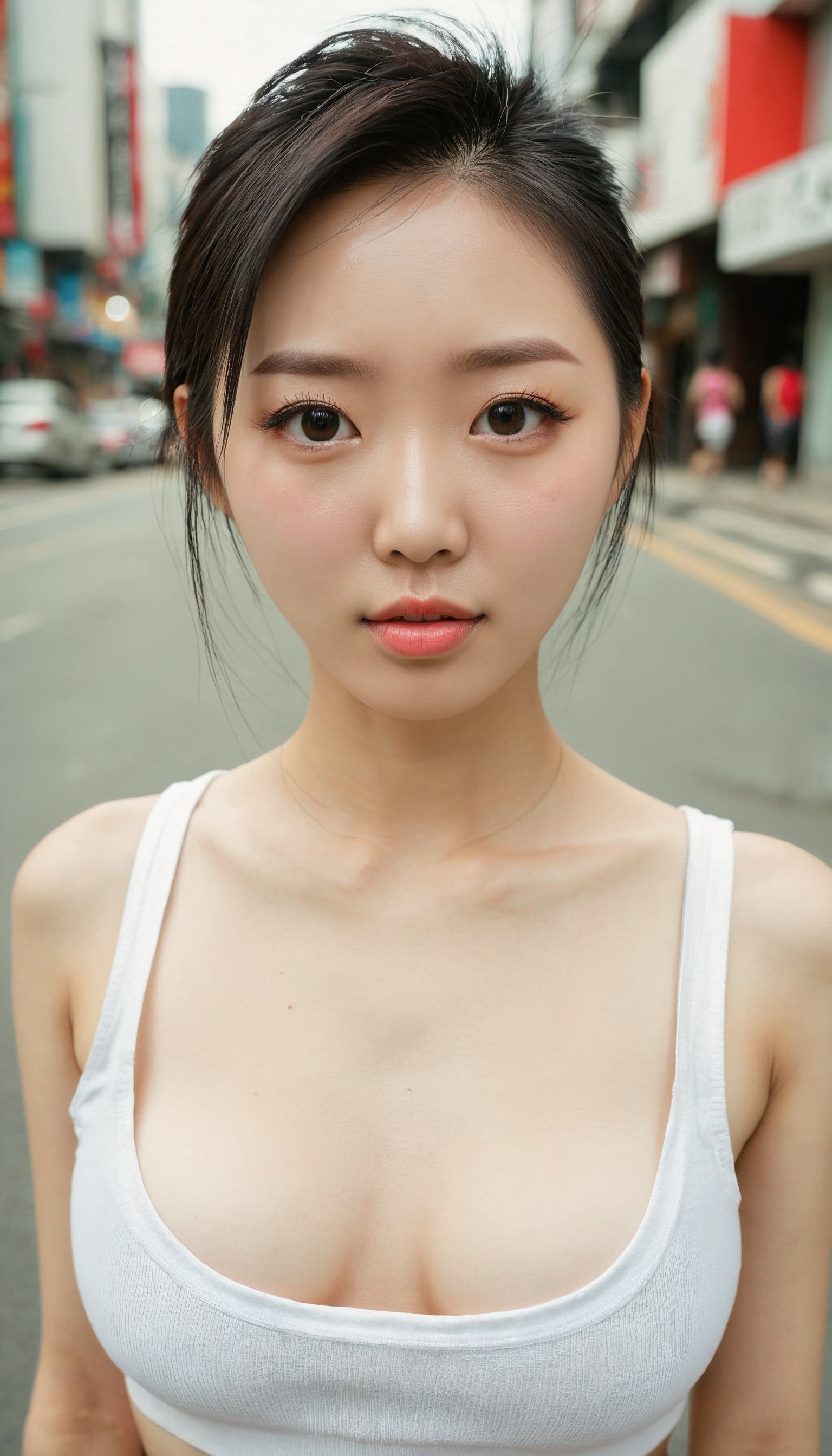 {"3": {"inputs": {"seed": 780981585652922, "steps": 64, "cfg": 6.5, "sampler_name": "dpmpp_2m", "scheduler": "karras", "denoise": 1.0, "model": ["27", 0], "positive": ["6", 0], "negative": ["7", 0], "latent_image": ["5", 0]}, "class_type": "KSampler"}, "4": {"inputs": {"ckpt_name": "juggernautxl.safetensors"}, "class_type": "CheckpointLoaderSimple"}, "5": {"inputs": {"width": 768, "height": 1344, "batch_size": 1}, "class_type": "EmptyLatentImage"}, "6": {"inputs": {"text": "27 year old girl, (korean:0.95), (slim:1.02), (temptress:1.08), (pale skin:1.00), (cute:1.07), (seductive facial expression:0.96), (seductive pose:0.95), (detailed face:1.13), (beautiful eyes:1.07), (double eyelids:1.01), (eyelashes:1.07), (sexy lips:1.04), (perky ass:0.95), (exposed ass:0.99), (looking back:1.05), (sexy ass:1.08), (thigh gap:1.13), (white tanktop:1.14), busy street, (textured skin:1.03), (detailed skin:1.01), (natural looking skin:1.08), (film:1.03), (RAW:1.00), (skin fuzz:1.02), (candid cinema:1.03), (portra:1.08), (soft lighting:1.08)", "clip": ["27", 1]}, "class_type": "CLIPTextEncode"}, "7": {"inputs": {"text": "(twisted:1.05), (worst quality:1.06), (watermark:1.08), (bad hands:1.11), (low resolution:1.11), (distorted:1.08)", "clip": ["27", 1]}, "class_type": "CLIPTextEncode"}, "8": {"inputs": {"samples": ["3", 0], "vae": ["4", 2]}, "class_type": "VAEDecode"}, "25": {"inputs": {"lora_name": "nudify_xl.safetensors", "strength_model": 0.3, "strength_clip": 0.38, "model": ["4", 0], "clip": ["4", 1]}, "class_type": "LoraLoader"}, "26": {"inputs": {"lora_name": "shirtlift_SDXL_v2.safetensors", "strength_model": 0.16, "strength_clip": 0.07, "model": ["25", 0], "clip": ["25", 1]}, "class_type": "LoraLoader"}, "27": {"inputs": {"lora_name": "PerfectEyesXL.safetensors", "strength_model": 0.08, "strength_clip": 0.0, "model": ["26", 0], "clip": ["26", 1]}, "class_type": "LoraLoader"}, "30": {"inputs": {"model_name": "4x_NMKD-Superscale-SP_178000_G.pth"}, "class_type": "UpscaleModelLoader"}, "31": {"inputs": {"upscale_model": ["30", 0], "image": ["8", 0]}, "class_type": "ImageUpscaleWithModel"}, "32": {"inputs": {"upscale_method": "lanczos", "scale_by": 0.5, "image": ["31", 0]}, "class_type": "ImageScaleBy"}, "33": {"inputs": {"pixels": ["32", 0], "vae": ["4", 2]}, "class_type": "VAEEncode"}, "34": {"inputs": {"seed": 780981585652922, "steps": 64, "cfg": 6.5, "sampler_name": "dpmpp_2m", "scheduler": "karras", "denoise": 0.3, "model": ["27", 0], "positive": ["6", 0], "negative": ["7", 0], "latent_image": ["33", 0]}, "class_type": "KSampler"}, "36": {"inputs": {"samples": ["34", 0], "vae": ["4", 2]}, "class_type": "VAEDecode"}, "39": {"inputs": {"filename_prefix": "comfyapi-1716480682301", "images": ["36", 0]}, "class_type": "SaveImage"}}
