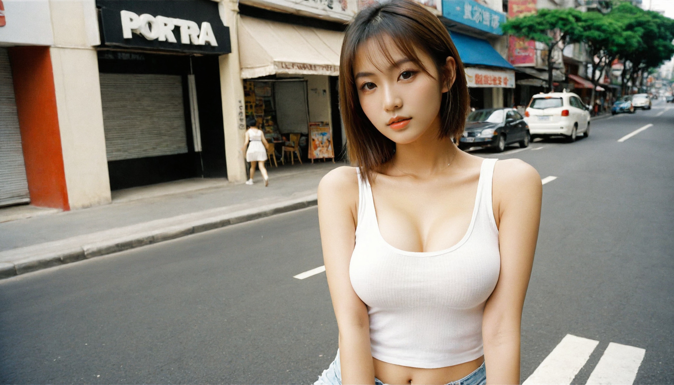 {"3": {"inputs": {"seed": 146817468671480, "steps": 64, "cfg": 7.93, "sampler_name": "dpmpp_2m", "scheduler": "karras", "denoise": 1.0, "model": ["27", 0], "positive": ["6", 0], "negative": ["7", 0], "latent_image": ["5", 0]}, "class_type": "KSampler"}, "4": {"inputs": {"ckpt_name": "leosamsHelloworldSDXL_helloworldSDXL32DPO.safetensors"}, "class_type": "CheckpointLoaderSimple"}, "5": {"inputs": {"width": 1344, "height": 768, "batch_size": 1}, "class_type": "EmptyLatentImage"}, "6": {"inputs": {"text": "25 year old girl, (temptress:0.95), (seductive pose:1.01), (cute:0.99), (detailed face:1.07), (idol:0.99), (seductive facial expression:1.14), (slim:1.13), (sexy lips:1.01), (double eyelids:1.12), (eyelashes:1.05), (beautiful eyes:1.11), (in a seductive pose:1.01), (large perky breasts:1.11), (cleavage:1.03), (thigh gap:1.10), (white tanktop:1.02), busy street, (portra:1.07), (textured skin:1.07), (candid cinema:1.06), (detailed skin:1.02), (skin fuzz:1.05), (natural looking skin:1.06), (RAW:1.00), (soft lighting:1.05)", "clip": ["27", 1]}, "class_type": "CLIPTextEncode"}, "7": {"inputs": {"text": "(bad hands:1.14), (distorted:1.05), (low resolution:1.13), (open mouth:1.10), (twisted:1.10), (worst quality:1.12), (watermark:1.08)", "clip": ["27", 1]}, "class_type": "CLIPTextEncode"}, "8": {"inputs": {"samples": ["3", 0], "vae": ["4", 2]}, "class_type": "VAEDecode"}, "25": {"inputs": {"lora_name": "nudify_xl.safetensors", "strength_model": 0.06, "strength_clip": 0.3, "model": ["4", 0], "clip": ["4", 1]}, "class_type": "LoraLoader"}, "26": {"inputs": {"lora_name": "shirtlift_SDXL_v2.safetensors", "strength_model": 0.04, "strength_clip": 0.04, "model": ["25", 0], "clip": ["25", 1]}, "class_type": "LoraLoader"}, "27": {"inputs": {"lora_name": "PerfectEyesXL.safetensors", "strength_model": 0.06, "strength_clip": 0.19, "model": ["26", 0], "clip": ["26", 1]}, "class_type": "LoraLoader"}, "30": {"inputs": {"model_name": "4x_NMKD-Superscale-SP_178000_G.pth"}, "class_type": "UpscaleModelLoader"}, "31": {"inputs": {"upscale_model": ["30", 0], "image": ["8", 0]}, "class_type": "ImageUpscaleWithModel"}, "32": {"inputs": {"upscale_method": "lanczos", "scale_by": 0.5, "image": ["31", 0]}, "class_type": "ImageScaleBy"}, "33": {"inputs": {"pixels": ["32", 0], "vae": ["4", 2]}, "class_type": "VAEEncode"}, "34": {"inputs": {"seed": 146817468671480, "steps": 64, "cfg": 7.93, "sampler_name": "dpmpp_2m", "scheduler": "karras", "denoise": 0.3, "model": ["27", 0], "positive": ["6", 0], "negative": ["7", 0], "latent_image": ["33", 0]}, "class_type": "KSampler"}, "36": {"inputs": {"samples": ["34", 0], "vae": ["4", 2]}, "class_type": "VAEDecode"}, "39": {"inputs": {"filename_prefix": "comfyapi-1708009072374", "images": ["36", 0]}, "class_type": "SaveImage"}}