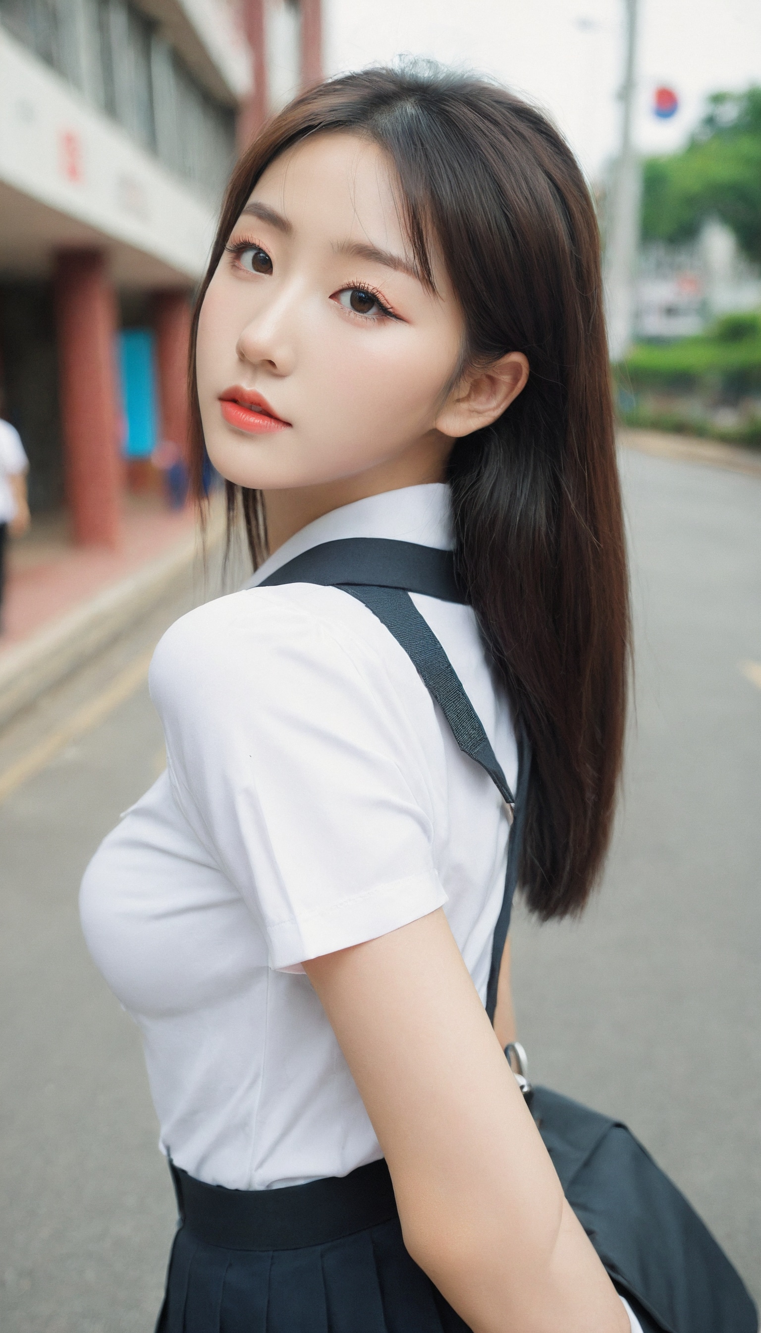 {"3": {"inputs": {"seed": 373856127663815, "steps": 64, "cfg": 5.06, "sampler_name": "dpmpp_2m", "scheduler": "karras", "denoise": 1.0, "model": ["27", 0], "positive": ["6", 0], "negative": ["7", 0], "latent_image": ["5", 0]}, "class_type": "KSampler"}, "4": {"inputs": {"ckpt_name": "leosamsHelloworldSDXL_helloworldSDXL32DPO.safetensors"}, "class_type": "CheckpointLoaderSimple"}, "5": {"inputs": {"width": 768, "height": 1344, "batch_size": 1}, "class_type": "EmptyLatentImage"}, "6": {"inputs": {"text": "25 year old girl, (korean:1.11), (chinese:0.95), (eyelashes:1.13), (temptress:1.05), (beautiful eyes:1.10), (slim:1.00), (seductive pose:1.07), (pale skin:0.95), (idol:1.05), (seductive facial expression:0.97), (sexy lips:1.05), (cute:1.12), (double eyelids:1.05), (detailed face:1.04), (blush:1.07), (perky ass:1.13), (exposed ass:1.03), (looking back:0.97), (sexy ass:1.03), (thigh gap:0.96), (school uniform:1.09), choker, busy street, (skin fuzz:1.04), (film:1.01), (soft lighting:1.06), (portra:1.00), (RAW:1.04), (textured skin:1.06), (candid cinema:1.03), (detailed skin:1.00), (natural looking skin:1.05)", "clip": ["27", 1]}, "class_type": "CLIPTextEncode"}, "7": {"inputs": {"text": "(low resolution:1.14), (watermark:1.10), (bad hands:1.10), (distorted:1.12), (twisted:1.06), (open mouth:1.08), (worst quality:1.12)", "clip": ["27", 1]}, "class_type": "CLIPTextEncode"}, "8": {"inputs": {"samples": ["3", 0], "vae": ["4", 2]}, "class_type": "VAEDecode"}, "25": {"inputs": {"lora_name": "nudify_xl.safetensors", "strength_model": 0.0, "strength_clip": 0.19, "model": ["4", 0], "clip": ["4", 1]}, "class_type": "LoraLoader"}, "26": {"inputs": {"lora_name": "shirtlift_SDXL_v2.safetensors", "strength_model": 0.06, "strength_clip": 0.0, "model": ["25", 0], "clip": ["25", 1]}, "class_type": "LoraLoader"}, "27": {"inputs": {"lora_name": "PerfectEyesXL.safetensors", "strength_model": 0.17, "strength_clip": 0.04, "model": ["26", 0], "clip": ["26", 1]}, "class_type": "LoraLoader"}, "30": {"inputs": {"model_name": "4x_NMKD-Superscale-SP_178000_G.pth"}, "class_type": "UpscaleModelLoader"}, "31": {"inputs": {"upscale_model": ["30", 0], "image": ["8", 0]}, "class_type": "ImageUpscaleWithModel"}, "32": {"inputs": {"upscale_method": "lanczos", "scale_by": 0.5, "image": ["31", 0]}, "class_type": "ImageScaleBy"}, "33": {"inputs": {"pixels": ["32", 0], "vae": ["4", 2]}, "class_type": "VAEEncode"}, "34": {"inputs": {"seed": 373856127663815, "steps": 64, "cfg": 5.06, "sampler_name": "dpmpp_2m", "scheduler": "karras", "denoise": 0.3, "model": ["27", 0], "positive": ["6", 0], "negative": ["7", 0], "latent_image": ["33", 0]}, "class_type": "KSampler"}, "36": {"inputs": {"samples": ["34", 0], "vae": ["4", 2]}, "class_type": "VAEDecode"}, "39": {"inputs": {"filename_prefix": "comfyapi-1707893207636", "images": ["36", 0]}, "class_type": "SaveImage"}}