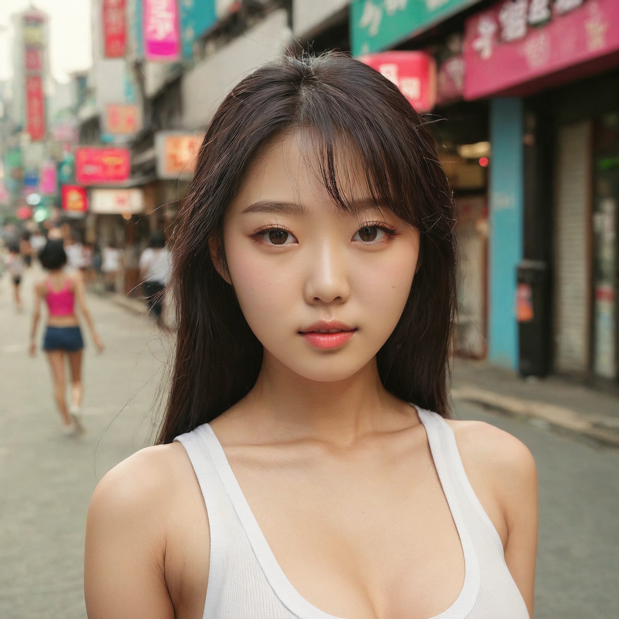 {"3": {"inputs": {"seed": 920890200439557, "steps": 32, "cfg": 5.22, "sampler_name": "dpmpp_2m", "scheduler": "karras", "denoise": 1.0, "model": ["27", 0], "positive": ["6", 0], "negative": ["7", 0], "latent_image": ["5", 0]}, "class_type": "KSampler"}, "4": {"inputs": {"ckpt_name": "juggernautxl.safetensors"}, "class_type": "CheckpointLoaderSimple"}, "5": {"inputs": {"width": 1024, "height": 1024, "batch_size": 1}, "class_type": "EmptyLatentImage"}, "6": {"inputs": {"text": "18 year old girl, (korean:1.12), (double eyelids:1.14), (seductive pose:1.03), (temptress:1.08), (blush:0.99), (slim:1.13), (eyelashes:0.99), (idol:1.00), (seductive facial expression:1.08), (beautiful eyes:0.97), (detailed face:0.95), (sexy lips:1.14), (in a seductive pose:0.97), (large perky breasts:0.96), (cleavage:1.05), (thigh gap:1.03), (white tanktop:1.08), busy street, (textured skin:1.02), (portra:1.09), (film:1.06), (detailed skin:1.00), (candid cinema:1.05), (skin fuzz:1.09), (natural looking skin:1.00), (soft lighting:1.00), (RAW:1.07)", "clip": ["27", 1]}, "class_type": "CLIPTextEncode"}, "7": {"inputs": {"text": "(bad hands:1.14), (worst quality:1.11), (low resolution:1.10), (distorted:1.06), (open mouth:1.05), (watermark:1.06), (twisted:1.09)", "clip": ["27", 1]}, "class_type": "CLIPTextEncode"}, "8": {"inputs": {"samples": ["3", 0], "vae": ["4", 2]}, "class_type": "VAEDecode"}, "25": {"inputs": {"lora_name": "nudify_xl.safetensors", "strength_model": 0.0, "strength_clip": 0.23, "model": ["4", 0], "clip": ["4", 1]}, "class_type": "LoraLoader"}, "26": {"inputs": {"lora_name": "shirtlift_SDXL_v2.safetensors", "strength_model": 0.17, "strength_clip": 0.18, "model": ["25", 0], "clip": ["25", 1]}, "class_type": "LoraLoader"}, "27": {"inputs": {"lora_name": "PerfectEyesXL.safetensors", "strength_model": 0.01, "strength_clip": 0.12, "model": ["26", 0], "clip": ["26", 1]}, "class_type": "LoraLoader"}, "30": {"inputs": {"model_name": "4x_NMKD-Superscale-SP_178000_G.pth"}, "class_type": "UpscaleModelLoader"}, "31": {"inputs": {"upscale_model": ["30", 0], "image": ["8", 0]}, "class_type": "ImageUpscaleWithModel"}, "32": {"inputs": {"upscale_method": "lanczos", "scale_by": 0.5, "image": ["31", 0]}, "class_type": "ImageScaleBy"}, "33": {"inputs": {"pixels": ["32", 0], "vae": ["4", 2]}, "class_type": "VAEEncode"}, "34": {"inputs": {"seed": 920890200439557, "steps": 32, "cfg": 5.22, "sampler_name": "dpmpp_2m", "scheduler": "karras", "denoise": 0.3, "model": ["27", 0], "positive": ["6", 0], "negative": ["7", 0], "latent_image": ["33", 0]}, "class_type": "KSampler"}, "36": {"inputs": {"samples": ["34", 0], "vae": ["4", 2]}, "class_type": "VAEDecode"}, "39": {"inputs": {"filename_prefix": "comfyapi-1716794170522", "images": ["36", 0]}, "class_type": "SaveImage"}}