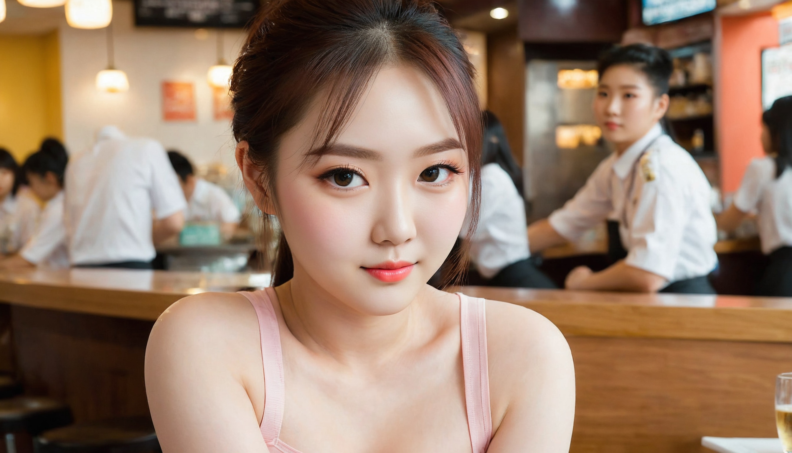 {"3": {"inputs": {"seed": 476451434534955, "steps": 32, "cfg": 7.19, "sampler_name": "dpmpp_2m", "scheduler": "karras", "denoise": 1.0, "model": ["27", 0], "positive": ["6", 0], "negative": ["7", 0], "latent_image": ["5", 0]}, "class_type": "KSampler"}, "4": {"inputs": {"ckpt_name": "juggernautXL_v8Rundiffusion.safetensors"}, "class_type": "CheckpointLoaderSimple"}, "5": {"inputs": {"width": 1344, "height": 768, "batch_size": 1}, "class_type": "EmptyLatentImage"}, "6": {"inputs": {"text": "22 year old girl, (korean:0.96), (seductive pose:1.11), (eyelashes:0.98), (sexy lips:1.00), (temptress:1.08), (beautiful eyes:1.03), (idol:0.98), (cute:1.09), (double eyelids:1.08), (pale skin:1.13), (slim:1.12), (blush:1.14), (seductive facial expression:1.00), (perky ass:1.02), (exposed ass:1.04), (looking back:1.12), (sexy ass:1.05), (thigh gap:0.98), (a waitress in uniform:0.95) working at a restaurant, (portra:1.02), (detailed skin:1.08), (film:1.05), (skin fuzz:1.04), (candid cinema:1.08), (RAW:1.06), (soft lighting:1.09), (natural looking skin:1.01), (textured skin:1.05)", "clip": ["27", 1]}, "class_type": "CLIPTextEncode"}, "7": {"inputs": {"text": "(twisted:1.10), (watermark:1.13), (worst quality:1.12), (bad hands:1.06), (distorted:1.14), (low resolution:1.06), (open mouth:1.14)", "clip": ["27", 1]}, "class_type": "CLIPTextEncode"}, "8": {"inputs": {"samples": ["3", 0], "vae": ["4", 2]}, "class_type": "VAEDecode"}, "25": {"inputs": {"lora_name": "nudify_xl.safetensors", "strength_model": 0.03, "strength_clip": 0.27, "model": ["4", 0], "clip": ["4", 1]}, "class_type": "LoraLoader"}, "26": {"inputs": {"lora_name": "shirtlift_SDXL_v2.safetensors", "strength_model": 0.1, "strength_clip": 0.05, "model": ["25", 0], "clip": ["25", 1]}, "class_type": "LoraLoader"}, "27": {"inputs": {"lora_name": "PerfectEyesXL.safetensors", "strength_model": 0.18, "strength_clip": 0.11, "model": ["26", 0], "clip": ["26", 1]}, "class_type": "LoraLoader"}, "30": {"inputs": {"model_name": "4x_NMKD-Superscale-SP_178000_G.pth"}, "class_type": "UpscaleModelLoader"}, "31": {"inputs": {"upscale_model": ["30", 0], "image": ["8", 0]}, "class_type": "ImageUpscaleWithModel"}, "32": {"inputs": {"upscale_method": "lanczos", "scale_by": 0.5, "image": ["31", 0]}, "class_type": "ImageScaleBy"}, "33": {"inputs": {"pixels": ["32", 0], "vae": ["4", 2]}, "class_type": "VAEEncode"}, "34": {"inputs": {"seed": 476451434534955, "steps": 32, "cfg": 7.19, "sampler_name": "dpmpp_2m", "scheduler": "karras", "denoise": 0.3, "model": ["27", 0], "positive": ["6", 0], "negative": ["7", 0], "latent_image": ["33", 0]}, "class_type": "KSampler"}, "36": {"inputs": {"samples": ["34", 0], "vae": ["4", 2]}, "class_type": "VAEDecode"}, "39": {"inputs": {"filename_prefix": "comfyapi-1708115397674", "images": ["36", 0]}, "class_type": "SaveImage"}}