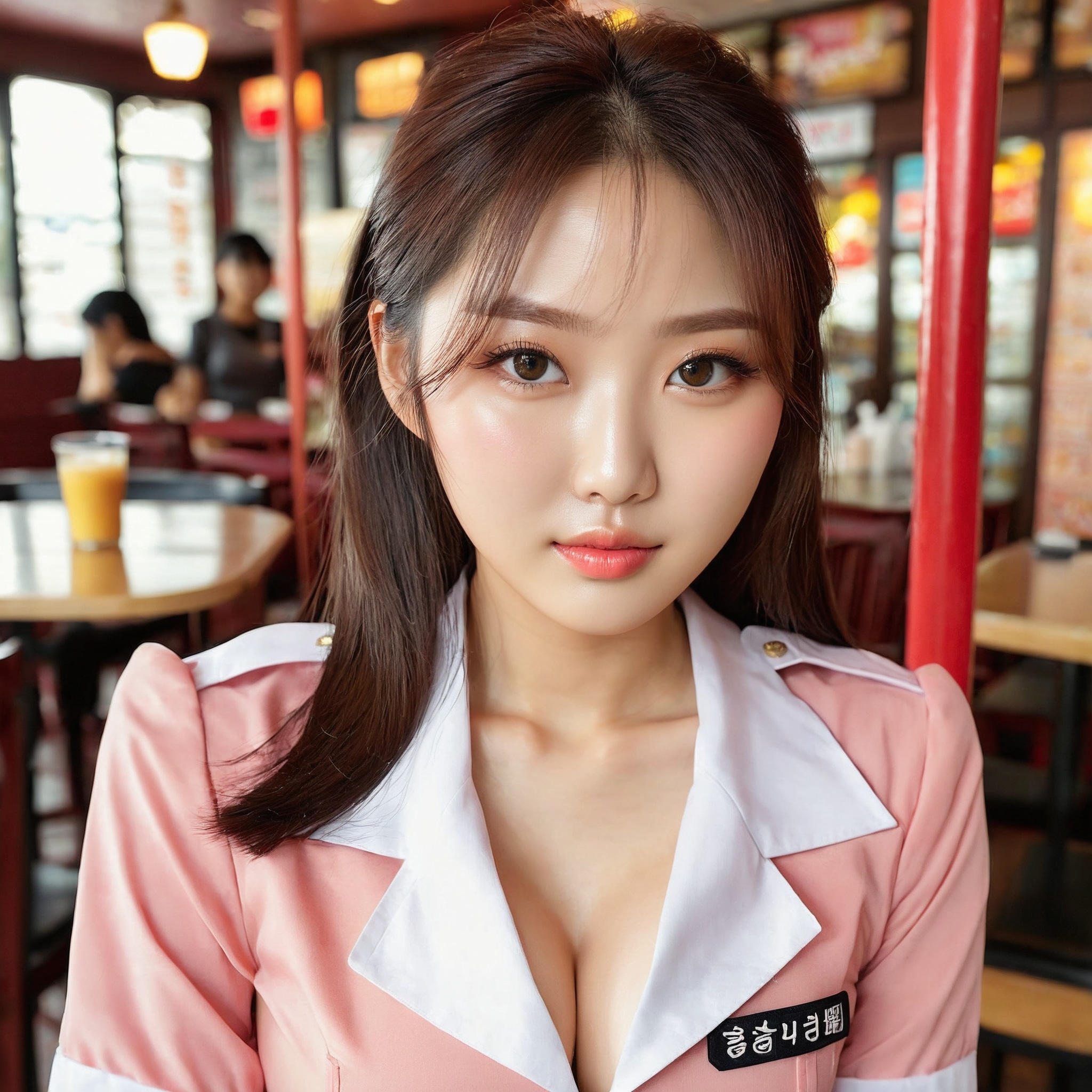 {"3": {"inputs": {"seed": 511632401532526, "steps": 32, "cfg": 7.27, "sampler_name": "dpmpp_2m", "scheduler": "karras", "denoise": 1.0, "model": ["27", 0], "positive": ["6", 0], "negative": ["7", 0], "latent_image": ["5", 0]}, "class_type": "KSampler"}, "4": {"inputs": {"ckpt_name": "juggernautxl.safetensors"}, "class_type": "CheckpointLoaderSimple"}, "5": {"inputs": {"width": 1024, "height": 1024, "batch_size": 1}, "class_type": "EmptyLatentImage"}, "6": {"inputs": {"text": "23 year old girl, (korean:1.10), (seductive facial expression:0.97), (temptress:1.10), (beautiful eyes:1.14), (blush:1.08), (eyelashes:1.01), (detailed face:1.01), (seductive pose:1.03), (idol:1.13), (slim:1.14), (double eyelids:1.09), (sexy lips:1.13), (pale skin:0.97), (in a seductive pose:0.97), (large perky breasts:1.07), (cleavage:0.98), (thigh gap:1.03), (a waitress in uniform:1.10) working at a restaurant, (textured skin:1.03), (portra:1.09), (film:1.07), (detailed skin:1.02), (skin fuzz:1.05), (RAW:1.07), (soft lighting:1.02), (candid cinema:1.05), (natural looking skin:1.06)", "clip": ["27", 1]}, "class_type": "CLIPTextEncode"}, "7": {"inputs": {"text": "(distorted:1.09), (watermark:1.13), (worst quality:1.07), (bad hands:1.09), (twisted:1.07), (low resolution:1.14), (open mouth:1.08)", "clip": ["27", 1]}, "class_type": "CLIPTextEncode"}, "8": {"inputs": {"samples": ["3", 0], "vae": ["4", 2]}, "class_type": "VAEDecode"}, "25": {"inputs": {"lora_name": "nudify_xl.safetensors", "strength_model": 0.01, "strength_clip": 0.21, "model": ["4", 0], "clip": ["4", 1]}, "class_type": "LoraLoader"}, "26": {"inputs": {"lora_name": "shirtlift_SDXL_v2.safetensors", "strength_model": 0.07, "strength_clip": 0.14, "model": ["25", 0], "clip": ["25", 1]}, "class_type": "LoraLoader"}, "27": {"inputs": {"lora_name": "PerfectEyesXL.safetensors", "strength_model": 0.17, "strength_clip": 0.14, "model": ["26", 0], "clip": ["26", 1]}, "class_type": "LoraLoader"}, "30": {"inputs": {"model_name": "4x_NMKD-Superscale-SP_178000_G.pth"}, "class_type": "UpscaleModelLoader"}, "31": {"inputs": {"upscale_model": ["30", 0], "image": ["8", 0]}, "class_type": "ImageUpscaleWithModel"}, "32": {"inputs": {"upscale_method": "lanczos", "scale_by": 0.5, "image": ["31", 0]}, "class_type": "ImageScaleBy"}, "33": {"inputs": {"pixels": ["32", 0], "vae": ["4", 2]}, "class_type": "VAEEncode"}, "34": {"inputs": {"seed": 511632401532526, "steps": 32, "cfg": 7.27, "sampler_name": "dpmpp_2m", "scheduler": "karras", "denoise": 0.3, "model": ["27", 0], "positive": ["6", 0], "negative": ["7", 0], "latent_image": ["33", 0]}, "class_type": "KSampler"}, "36": {"inputs": {"samples": ["34", 0], "vae": ["4", 2]}, "class_type": "VAEDecode"}, "39": {"inputs": {"filename_prefix": "comfyapi-1716253764249", "images": ["36", 0]}, "class_type": "SaveImage"}}