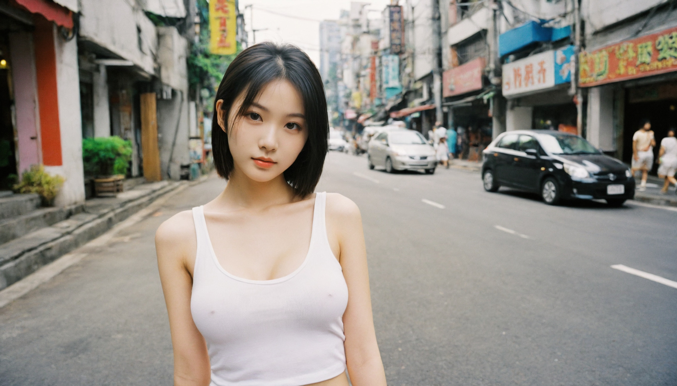 {"3": {"inputs": {"seed": 459614791529679, "steps": 32, "cfg": 5.04, "sampler_name": "dpmpp_2m", "scheduler": "karras", "denoise": 1.0, "model": ["27", 0], "positive": ["6", 0], "negative": ["7", 0], "latent_image": ["5", 0]}, "class_type": "KSampler"}, "4": {"inputs": {"ckpt_name": "helloworldxl.safetensors"}, "class_type": "CheckpointLoaderSimple"}, "5": {"inputs": {"width": 1344, "height": 768, "batch_size": 1}, "class_type": "EmptyLatentImage"}, "6": {"inputs": {"text": "18 year old girl, (taiwanese:1.09), (seductive facial expression:1.05), (slim:1.03), (temptress:0.95), (pale skin:0.97), (idol:1.01), (sexy lips:1.04), (detailed face:1.00), (eyelashes:0.95), (double eyelids:1.10), (cute:1.02), (seductive pose:1.11), (blush:1.01), (beautiful eyes:1.14), (in a seductive pose:1.00), (large perky breasts:0.98), (cleavage:0.95), (thigh gap:0.95), (white tanktop:1.12), busy street, (soft lighting:1.03), (film:1.09), (RAW:1.01), (portra:1.07), (candid cinema:1.07), (textured skin:1.07), (skin fuzz:1.03), (detailed skin:1.09)", "clip": ["27", 1]}, "class_type": "CLIPTextEncode"}, "7": {"inputs": {"text": "(distorted:1.05), (bad hands:1.11), (watermark:1.08), (worst quality:1.14), (open mouth:1.07), (twisted:1.14), (low resolution:1.05)", "clip": ["27", 1]}, "class_type": "CLIPTextEncode"}, "8": {"inputs": {"samples": ["3", 0], "vae": ["4", 2]}, "class_type": "VAEDecode"}, "25": {"inputs": {"lora_name": "nudify_xl.safetensors", "strength_model": 0.12, "strength_clip": 0.01, "model": ["4", 0], "clip": ["4", 1]}, "class_type": "LoraLoader"}, "26": {"inputs": {"lora_name": "shirtlift_SDXL_v2.safetensors", "strength_model": 0.19, "strength_clip": 0.03, "model": ["25", 0], "clip": ["25", 1]}, "class_type": "LoraLoader"}, "27": {"inputs": {"lora_name": "PerfectEyesXL.safetensors", "strength_model": 0.01, "strength_clip": 0.07, "model": ["26", 0], "clip": ["26", 1]}, "class_type": "LoraLoader"}, "30": {"inputs": {"model_name": "4x_NMKD-Superscale-SP_178000_G.pth"}, "class_type": "UpscaleModelLoader"}, "31": {"inputs": {"upscale_model": ["30", 0], "image": ["8", 0]}, "class_type": "ImageUpscaleWithModel"}, "32": {"inputs": {"upscale_method": "lanczos", "scale_by": 0.5, "image": ["31", 0]}, "class_type": "ImageScaleBy"}, "33": {"inputs": {"pixels": ["32", 0], "vae": ["4", 2]}, "class_type": "VAEEncode"}, "34": {"inputs": {"seed": 459614791529679, "steps": 32, "cfg": 5.04, "sampler_name": "dpmpp_2m", "scheduler": "karras", "denoise": 0.3, "model": ["27", 0], "positive": ["6", 0], "negative": ["7", 0], "latent_image": ["33", 0]}, "class_type": "KSampler"}, "36": {"inputs": {"samples": ["34", 0], "vae": ["4", 2]}, "class_type": "VAEDecode"}, "39": {"inputs": {"filename_prefix": "comfyapi-1728107305003", "images": ["36", 0]}, "class_type": "SaveImage"}}