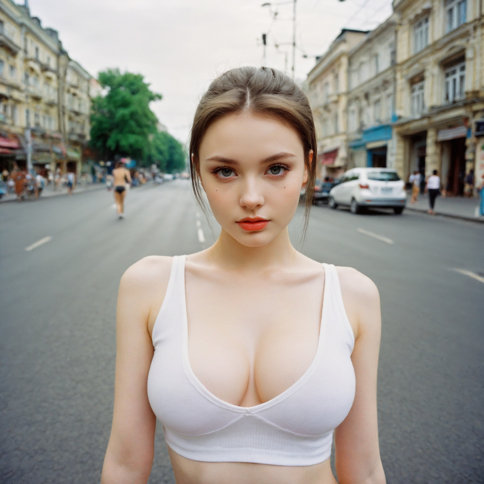 {"3": {"inputs": {"seed": 368953811047073, "steps": 32, "cfg": 5.69, "sampler_name": "dpmpp_2m", "scheduler": "karras", "denoise": 1.0, "model": ["27", 0], "positive": ["6", 0], "negative": ["7", 0], "latent_image": ["5", 0]}, "class_type": "KSampler"}, "4": {"inputs": {"ckpt_name": "helloworldxl.safetensors"}, "class_type": "CheckpointLoaderSimple"}, "5": {"inputs": {"width": 1024, "height": 1024, "batch_size": 1}, "class_type": "EmptyLatentImage"}, "6": {"inputs": {"text": "20 year old girl, (ukrainian:1.10), (cute:0.98), (eyelashes:1.12), (seductive pose:1.01), (temptress:0.97), (idol:1.13), (blush:1.07), (sexy lips:1.00), (double eyelids:0.95), (seductive facial expression:0.97), (pale skin:1.13), (detailed face:1.05), (slim:1.03), (beautiful eyes:1.04), (in a seductive pose:0.97), (large perky breasts:1.08), (cleavage:1.13), (thigh gap:1.07), (white tanktop:1.13), busy street, (portra:1.00), (detailed skin:1.04), (candid cinema:1.04), (textured skin:1.06), (natural looking skin:1.06), (RAW:1.08), (skin fuzz:1.03), (soft lighting:1.00), (film:1.01)", "clip": ["27", 1]}, "class_type": "CLIPTextEncode"}, "7": {"inputs": {"text": "(open mouth:1.12), (bad hands:1.06), (twisted:1.05), (watermark:1.13), (worst quality:1.14), (distorted:1.08), (low resolution:1.08)", "clip": ["27", 1]}, "class_type": "CLIPTextEncode"}, "8": {"inputs": {"samples": ["3", 0], "vae": ["4", 2]}, "class_type": "VAEDecode"}, "25": {"inputs": {"lora_name": "nudify_xl.safetensors", "strength_model": 0.29, "strength_clip": 0.38, "model": ["4", 0], "clip": ["4", 1]}, "class_type": "LoraLoader"}, "26": {"inputs": {"lora_name": "shirtlift_SDXL_v2.safetensors", "strength_model": 0.08, "strength_clip": 0.11, "model": ["25", 0], "clip": ["25", 1]}, "class_type": "LoraLoader"}, "27": {"inputs": {"lora_name": "PerfectEyesXL.safetensors", "strength_model": 0.0, "strength_clip": 0.19, "model": ["26", 0], "clip": ["26", 1]}, "class_type": "LoraLoader"}, "30": {"inputs": {"model_name": "4x_NMKD-Superscale-SP_178000_G.pth"}, "class_type": "UpscaleModelLoader"}, "31": {"inputs": {"upscale_model": ["30", 0], "image": ["8", 0]}, "class_type": "ImageUpscaleWithModel"}, "32": {"inputs": {"upscale_method": "lanczos", "scale_by": 0.5, "image": ["31", 0]}, "class_type": "ImageScaleBy"}, "33": {"inputs": {"pixels": ["32", 0], "vae": ["4", 2]}, "class_type": "VAEEncode"}, "34": {"inputs": {"seed": 368953811047073, "steps": 32, "cfg": 5.69, "sampler_name": "dpmpp_2m", "scheduler": "karras", "denoise": 0.3, "model": ["27", 0], "positive": ["6", 0], "negative": ["7", 0], "latent_image": ["33", 0]}, "class_type": "KSampler"}, "36": {"inputs": {"samples": ["34", 0], "vae": ["4", 2]}, "class_type": "VAEDecode"}, "39": {"inputs": {"filename_prefix": "comfyapi-1731181525113", "images": ["36", 0]}, "class_type": "SaveImage"}}