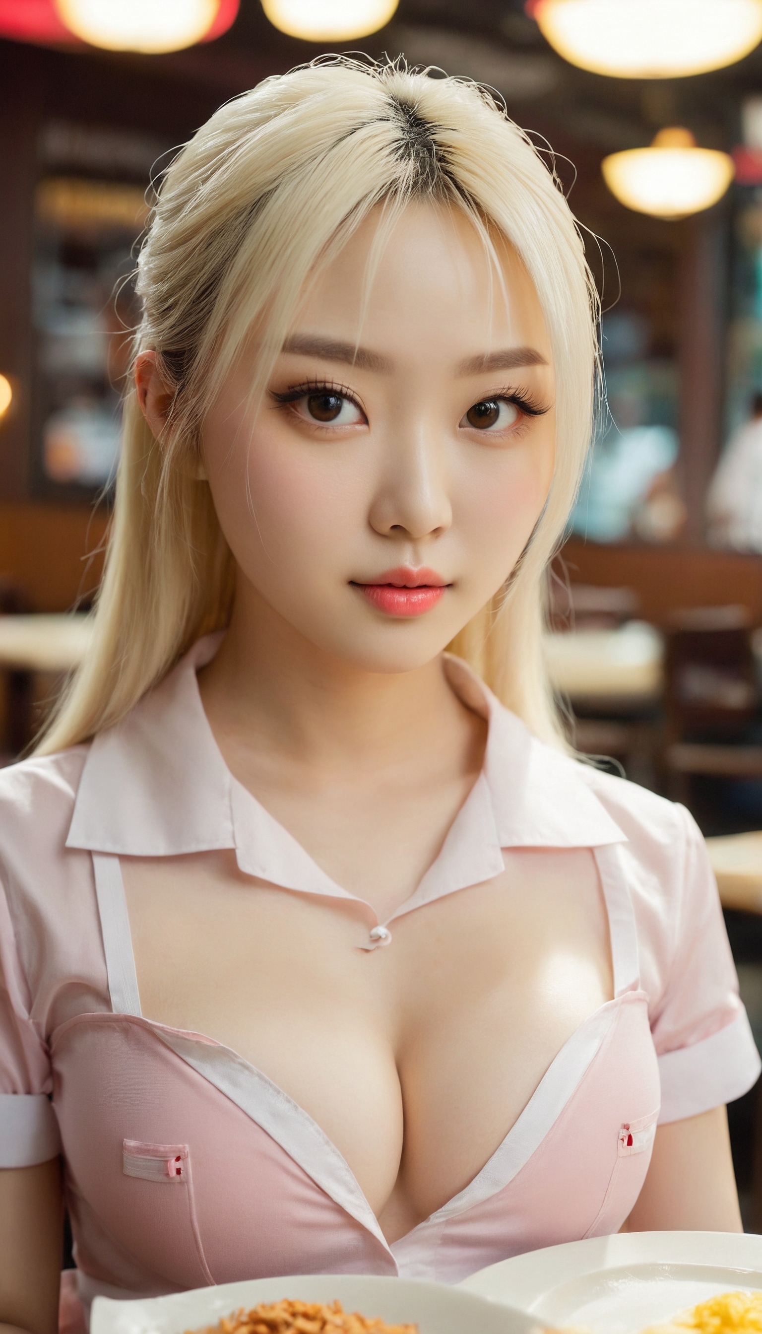 {"3": {"inputs": {"seed": 993328921140656, "steps": 32, "cfg": 5.75, "sampler_name": "dpmpp_2m", "scheduler": "karras", "denoise": 1.0, "model": ["27", 0], "positive": ["6", 0], "negative": ["7", 0], "latent_image": ["5", 0]}, "class_type": "KSampler"}, "4": {"inputs": {"ckpt_name": "juggernautxl.safetensors"}, "class_type": "CheckpointLoaderSimple"}, "5": {"inputs": {"width": 768, "height": 1344, "batch_size": 1}, "class_type": "EmptyLatentImage"}, "6": {"inputs": {"text": "24 year old girl, (chinese:0.96), (seductive facial expression:0.95), (pale skin:1.07), (cute:0.96), (idol:0.95), (seductive pose:1.05), (beautiful eyes:1.11), (sexy lips:1.01), (double eyelids:1.13), (temptress:1.13), (blush:0.98), (eyelashes:1.01), (slim:0.98), (detailed face:1.07), (in a seductive pose:0.95), (large perky breasts:1.01), (cleavage:1.05), (thigh gap:1.10), (a waitress in uniform:0.96) working at a restaurant, (film:1.08), (textured skin:1.02), (candid cinema:1.00), (soft lighting:1.01), (RAW:1.03), (portra:1.06), (natural looking skin:1.06), (skin fuzz:1.02), (detailed skin:1.02)", "clip": ["27", 1]}, "class_type": "CLIPTextEncode"}, "7": {"inputs": {"text": "(bad hands:1.07), (low resolution:1.12), (watermark:1.14), (open mouth:1.08), (worst quality:1.14), (twisted:1.11), (distorted:1.05)", "clip": ["27", 1]}, "class_type": "CLIPTextEncode"}, "8": {"inputs": {"samples": ["3", 0], "vae": ["4", 2]}, "class_type": "VAEDecode"}, "25": {"inputs": {"lora_name": "nudify_xl.safetensors", "strength_model": 0.17, "strength_clip": 0.39, "model": ["4", 0], "clip": ["4", 1]}, "class_type": "LoraLoader"}, "26": {"inputs": {"lora_name": "shirtlift_SDXL_v2.safetensors", "strength_model": 0.12, "strength_clip": 0.15, "model": ["25", 0], "clip": ["25", 1]}, "class_type": "LoraLoader"}, "27": {"inputs": {"lora_name": "PerfectEyesXL.safetensors", "strength_model": 0.01, "strength_clip": 0.18, "model": ["26", 0], "clip": ["26", 1]}, "class_type": "LoraLoader"}, "30": {"inputs": {"model_name": "4x_NMKD-Superscale-SP_178000_G.pth"}, "class_type": "UpscaleModelLoader"}, "31": {"inputs": {"upscale_model": ["30", 0], "image": ["8", 0]}, "class_type": "ImageUpscaleWithModel"}, "32": {"inputs": {"upscale_method": "lanczos", "scale_by": 0.5, "image": ["31", 0]}, "class_type": "ImageScaleBy"}, "33": {"inputs": {"pixels": ["32", 0], "vae": ["4", 2]}, "class_type": "VAEEncode"}, "34": {"inputs": {"seed": 993328921140656, "steps": 32, "cfg": 5.75, "sampler_name": "dpmpp_2m", "scheduler": "karras", "denoise": 0.3, "model": ["27", 0], "positive": ["6", 0], "negative": ["7", 0], "latent_image": ["33", 0]}, "class_type": "KSampler"}, "36": {"inputs": {"samples": ["34", 0], "vae": ["4", 2]}, "class_type": "VAEDecode"}, "39": {"inputs": {"filename_prefix": "comfyapi-1726928501272", "images": ["36", 0]}, "class_type": "SaveImage"}}