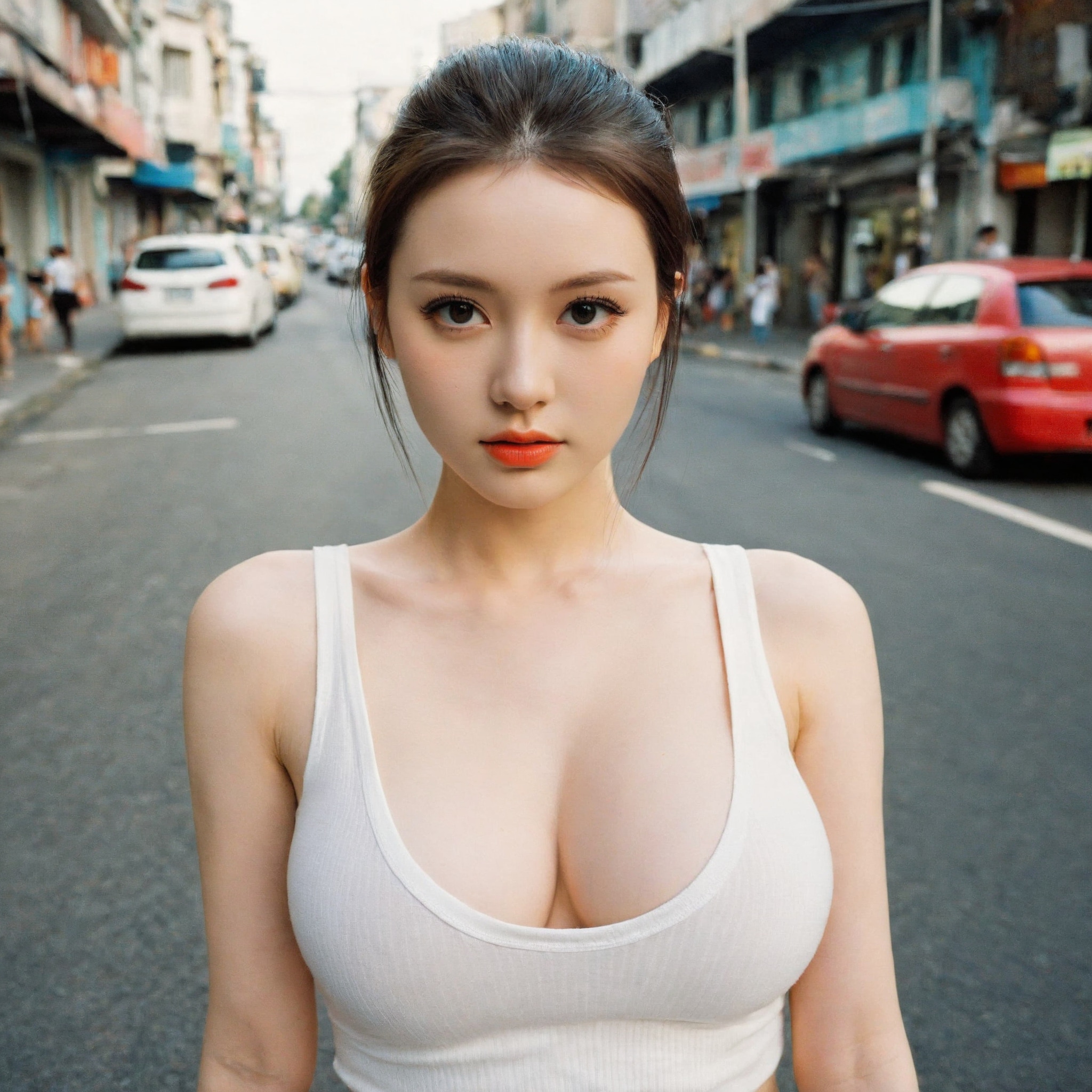 {"3": {"inputs": {"seed": 698889230514882, "steps": 32, "cfg": 5.47, "sampler_name": "dpmpp_2m", "scheduler": "karras", "denoise": 1.0, "model": ["27", 0], "positive": ["6", 0], "negative": ["7", 0], "latent_image": ["5", 0]}, "class_type": "KSampler"}, "4": {"inputs": {"ckpt_name": "helloworldxl.safetensors"}, "class_type": "CheckpointLoaderSimple"}, "5": {"inputs": {"width": 1024, "height": 1024, "batch_size": 1}, "class_type": "EmptyLatentImage"}, "6": {"inputs": {"text": "26 year old girl, (blush:0.95), (cute:1.07), (double eyelids:0.99), (detailed face:1.02), (idol:1.14), (sexy lips:1.04), (slim:0.98), (seductive facial expression:1.00), (eyelashes:1.11), (seductive pose:1.08), (pale skin:1.00), (beautiful eyes:1.09), (temptress:1.11), (in a seductive pose:1.13), (large perky breasts:1.01), (cleavage:0.97), (thigh gap:1.05), (white tanktop:1.11), busy street, (textured skin:1.09), (natural looking skin:1.07), (candid cinema:1.06), (skin fuzz:1.04), (detailed skin:1.03), (film:1.08), (portra:1.04), (soft lighting:1.01), (RAW:1.05)", "clip": ["27", 1]}, "class_type": "CLIPTextEncode"}, "7": {"inputs": {"text": "(low resolution:1.11), (open mouth:1.12), (twisted:1.06), (distorted:1.14), (bad hands:1.09), (watermark:1.08), (worst quality:1.11)", "clip": ["27", 1]}, "class_type": "CLIPTextEncode"}, "8": {"inputs": {"samples": ["3", 0], "vae": ["4", 2]}, "class_type": "VAEDecode"}, "25": {"inputs": {"lora_name": "nudify_xl.safetensors", "strength_model": 0.39, "strength_clip": 0.25, "model": ["4", 0], "clip": ["4", 1]}, "class_type": "LoraLoader"}, "26": {"inputs": {"lora_name": "shirtlift_SDXL_v2.safetensors", "strength_model": 0.11, "strength_clip": 0.19, "model": ["25", 0], "clip": ["25", 1]}, "class_type": "LoraLoader"}, "27": {"inputs": {"lora_name": "PerfectEyesXL.safetensors", "strength_model": 0.19, "strength_clip": 0.19, "model": ["26", 0], "clip": ["26", 1]}, "class_type": "LoraLoader"}, "30": {"inputs": {"model_name": "4x_NMKD-Superscale-SP_178000_G.pth"}, "class_type": "UpscaleModelLoader"}, "31": {"inputs": {"upscale_model": ["30", 0], "image": ["8", 0]}, "class_type": "ImageUpscaleWithModel"}, "32": {"inputs": {"upscale_method": "lanczos", "scale_by": 0.5, "image": ["31", 0]}, "class_type": "ImageScaleBy"}, "33": {"inputs": {"pixels": ["32", 0], "vae": ["4", 2]}, "class_type": "VAEEncode"}, "34": {"inputs": {"seed": 698889230514882, "steps": 32, "cfg": 5.47, "sampler_name": "dpmpp_2m", "scheduler": "karras", "denoise": 0.3, "model": ["27", 0], "positive": ["6", 0], "negative": ["7", 0], "latent_image": ["33", 0]}, "class_type": "KSampler"}, "36": {"inputs": {"samples": ["34", 0], "vae": ["4", 2]}, "class_type": "VAEDecode"}, "39": {"inputs": {"filename_prefix": "comfyapi-1724448717774", "images": ["36", 0]}, "class_type": "SaveImage"}}