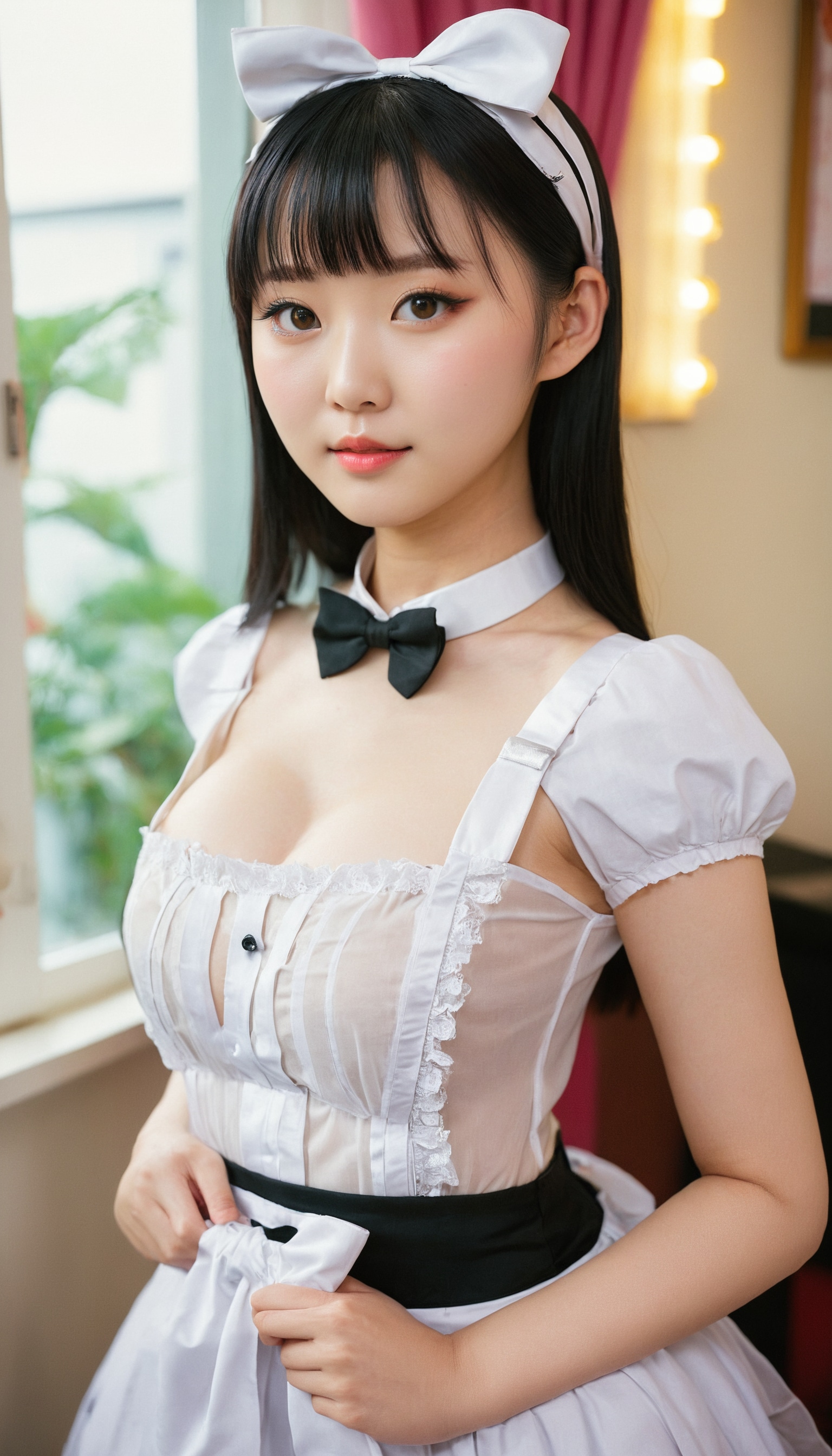 {"3": {"inputs": {"seed": 784539119234884, "steps": 32, "cfg": 6.94, "sampler_name": "dpmpp_2m", "scheduler": "karras", "denoise": 1.0, "model": ["27", 0], "positive": ["6", 0], "negative": ["7", 0], "latent_image": ["5", 0]}, "class_type": "KSampler"}, "4": {"inputs": {"ckpt_name": "juggernautxl.safetensors"}, "class_type": "CheckpointLoaderSimple"}, "5": {"inputs": {"width": 768, "height": 1344, "batch_size": 1}, "class_type": "EmptyLatentImage"}, "6": {"inputs": {"text": "24 year old girl, (chinese:1.06), (slim:1.14), (seductive pose:1.11), (cute:1.01), (sexy lips:0.96), (temptress:1.05), (blush:1.00), (seductive facial expression:1.14), (beautiful eyes:1.08), (detailed face:1.01), (pale skin:0.99), (eyelashes:0.96), (double eyelids:0.95), (idol:1.09), (in a seductive pose:1.07), (large perky breasts:0.98), (cleavage:0.99), (thigh gap:0.96), in a (skimpy maid costume:1.11) working at a maid cafe, choker, bowtie, headband, pleated skirt, (skin fuzz:1.03), (film:1.09), (portra:1.07), (soft lighting:1.04), (natural looking skin:1.02), (candid cinema:1.04), (detailed skin:1.07), (textured skin:1.01), (RAW:1.02)", "clip": ["27", 1]}, "class_type": "CLIPTextEncode"}, "7": {"inputs": {"text": "(watermark:1.14), (distorted:1.11), (bad hands:1.13), (twisted:1.09), (low resolution:1.10), (worst quality:1.05), (open mouth:1.12)", "clip": ["27", 1]}, "class_type": "CLIPTextEncode"}, "8": {"inputs": {"samples": ["3", 0], "vae": ["4", 2]}, "class_type": "VAEDecode"}, "25": {"inputs": {"lora_name": "nudify_xl.safetensors", "strength_model": 0.35, "strength_clip": 0.16, "model": ["4", 0], "clip": ["4", 1]}, "class_type": "LoraLoader"}, "26": {"inputs": {"lora_name": "shirtlift_SDXL_v2.safetensors", "strength_model": 0.17, "strength_clip": 0.03, "model": ["25", 0], "clip": ["25", 1]}, "class_type": "LoraLoader"}, "27": {"inputs": {"lora_name": "PerfectEyesXL.safetensors", "strength_model": 0.09, "strength_clip": 0.15, "model": ["26", 0], "clip": ["26", 1]}, "class_type": "LoraLoader"}, "30": {"inputs": {"model_name": "4x_NMKD-Superscale-SP_178000_G.pth"}, "class_type": "UpscaleModelLoader"}, "31": {"inputs": {"upscale_model": ["30", 0], "image": ["8", 0]}, "class_type": "ImageUpscaleWithModel"}, "32": {"inputs": {"upscale_method": "lanczos", "scale_by": 0.5, "image": ["31", 0]}, "class_type": "ImageScaleBy"}, "33": {"inputs": {"pixels": ["32", 0], "vae": ["4", 2]}, "class_type": "VAEEncode"}, "34": {"inputs": {"seed": 784539119234884, "steps": 32, "cfg": 6.94, "sampler_name": "dpmpp_2m", "scheduler": "karras", "denoise": 0.3, "model": ["27", 0], "positive": ["6", 0], "negative": ["7", 0], "latent_image": ["33", 0]}, "class_type": "KSampler"}, "36": {"inputs": {"samples": ["34", 0], "vae": ["4", 2]}, "class_type": "VAEDecode"}, "39": {"inputs": {"filename_prefix": "comfyapi-1714126914257", "images": ["36", 0]}, "class_type": "SaveImage"}}