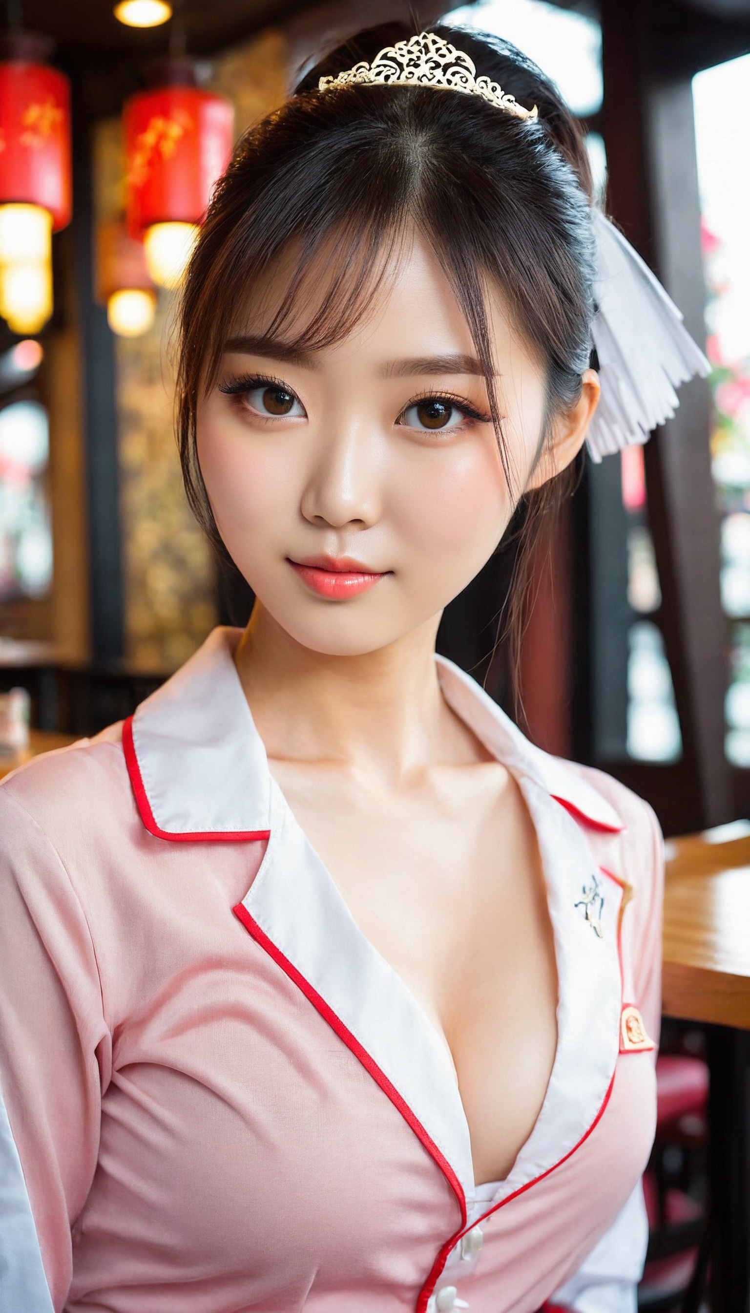 {"3": {"inputs": {"seed": 454186350054838, "steps": 32, "cfg": 7.92, "sampler_name": "dpmpp_2m", "scheduler": "karras", "denoise": 1.0, "model": ["27", 0], "positive": ["6", 0], "negative": ["7", 0], "latent_image": ["5", 0]}, "class_type": "KSampler"}, "4": {"inputs": {"ckpt_name": "juggernautxl.safetensors"}, "class_type": "CheckpointLoaderSimple"}, "5": {"inputs": {"width": 768, "height": 1344, "batch_size": 1}, "class_type": "EmptyLatentImage"}, "6": {"inputs": {"text": "25 year old girl, (chinese:1.02), (temptress:1.05), (double eyelids:1.01), (cute:1.08), (seductive facial expression:1.08), (detailed face:1.14), (blush:1.11), (eyelashes:1.10), (pale skin:1.07), (sexy lips:0.97), (idol:1.05), (beautiful eyes:1.09), (slim:1.11), (seductive pose:1.03), (in a seductive pose:1.07), (large perky breasts:0.95), (cleavage:0.95), (thigh gap:1.14), (a waitress in uniform:0.99) working at a restaurant, (skin fuzz:1.03), (film:1.04), (soft lighting:1.04), (candid cinema:1.03), (natural looking skin:1.01), (textured skin:1.00), (RAW:1.02), (detailed skin:1.04), (portra:1.01)", "clip": ["27", 1]}, "class_type": "CLIPTextEncode"}, "7": {"inputs": {"text": "(distorted:1.11), (twisted:1.13), (watermark:1.14), (bad hands:1.09), (worst quality:1.10), (open mouth:1.10), (low resolution:1.06)", "clip": ["27", 1]}, "class_type": "CLIPTextEncode"}, "8": {"inputs": {"samples": ["3", 0], "vae": ["4", 2]}, "class_type": "VAEDecode"}, "25": {"inputs": {"lora_name": "nudify_xl.safetensors", "strength_model": 0.12, "strength_clip": 0.07, "model": ["4", 0], "clip": ["4", 1]}, "class_type": "LoraLoader"}, "26": {"inputs": {"lora_name": "shirtlift_SDXL_v2.safetensors", "strength_model": 0.15, "strength_clip": 0.03, "model": ["25", 0], "clip": ["25", 1]}, "class_type": "LoraLoader"}, "27": {"inputs": {"lora_name": "PerfectEyesXL.safetensors", "strength_model": 0.18, "strength_clip": 0.04, "model": ["26", 0], "clip": ["26", 1]}, "class_type": "LoraLoader"}, "30": {"inputs": {"model_name": "4x_NMKD-Superscale-SP_178000_G.pth"}, "class_type": "UpscaleModelLoader"}, "31": {"inputs": {"upscale_model": ["30", 0], "image": ["8", 0]}, "class_type": "ImageUpscaleWithModel"}, "32": {"inputs": {"upscale_method": "lanczos", "scale_by": 0.5, "image": ["31", 0]}, "class_type": "ImageScaleBy"}, "33": {"inputs": {"pixels": ["32", 0], "vae": ["4", 2]}, "class_type": "VAEEncode"}, "34": {"inputs": {"seed": 454186350054838, "steps": 32, "cfg": 7.92, "sampler_name": "dpmpp_2m", "scheduler": "karras", "denoise": 0.3, "model": ["27", 0], "positive": ["6", 0], "negative": ["7", 0], "latent_image": ["33", 0]}, "class_type": "KSampler"}, "36": {"inputs": {"samples": ["34", 0], "vae": ["4", 2]}, "class_type": "VAEDecode"}, "39": {"inputs": {"filename_prefix": "comfyapi-1731317093478", "images": ["36", 0]}, "class_type": "SaveImage"}}