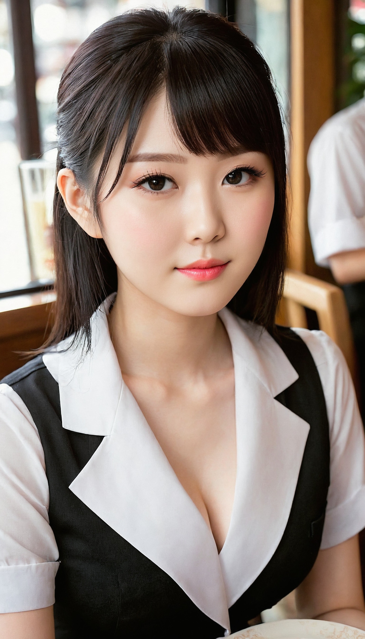 {"3": {"inputs": {"seed": 460204428155475, "steps": 32, "cfg": 6.82, "sampler_name": "dpmpp_2m", "scheduler": "karras", "denoise": 1.0, "model": ["27", 0], "positive": ["6", 0], "negative": ["7", 0], "latent_image": ["5", 0]}, "class_type": "KSampler"}, "4": {"inputs": {"ckpt_name": "juggernautXL_v8Rundiffusion.safetensors"}, "class_type": "CheckpointLoaderSimple"}, "5": {"inputs": {"width": 768, "height": 1344, "batch_size": 1}, "class_type": "EmptyLatentImage"}, "6": {"inputs": {"text": "25 year old girl, (japanese:1.09), (idol:1.06), (temptress:1.08), (blush:0.97), (pale skin:1.03), (seductive facial expression:0.95), (slim:1.00), (double eyelids:0.97), (sexy lips:1.10), (beautiful eyes:0.97), (cute:0.97), (detailed face:1.11), (eyelashes:1.14), (seductive pose:0.95), (in a seductive pose:1.09), (large perky breasts:1.03), (cleavage:0.96), (thigh gap:1.02), (a waitress in uniform:1.00) working at a restaurant, (film:1.05), (portra:1.04), (skin fuzz:1.00), (detailed skin:1.04), (textured skin:1.05), (RAW:1.00), (candid cinema:1.09), (natural looking skin:1.04), (soft lighting:1.04)", "clip": ["27", 1]}, "class_type": "CLIPTextEncode"}, "7": {"inputs": {"text": "(distorted:1.14), (twisted:1.09), (low resolution:1.05), (watermark:1.12), (open mouth:1.10), (bad hands:1.13), (worst quality:1.11)", "clip": ["27", 1]}, "class_type": "CLIPTextEncode"}, "8": {"inputs": {"samples": ["3", 0], "vae": ["4", 2]}, "class_type": "VAEDecode"}, "25": {"inputs": {"lora_name": "nudify_xl.safetensors", "strength_model": 0.26, "strength_clip": 0.02, "model": ["4", 0], "clip": ["4", 1]}, "class_type": "LoraLoader"}, "26": {"inputs": {"lora_name": "shirtlift_SDXL_v2.safetensors", "strength_model": 0.04, "strength_clip": 0.0, "model": ["25", 0], "clip": ["25", 1]}, "class_type": "LoraLoader"}, "27": {"inputs": {"lora_name": "PerfectEyesXL.safetensors", "strength_model": 0.08, "strength_clip": 0.15, "model": ["26", 0], "clip": ["26", 1]}, "class_type": "LoraLoader"}, "30": {"inputs": {"model_name": "4x_NMKD-Superscale-SP_178000_G.pth"}, "class_type": "UpscaleModelLoader"}, "31": {"inputs": {"upscale_model": ["30", 0], "image": ["8", 0]}, "class_type": "ImageUpscaleWithModel"}, "32": {"inputs": {"upscale_method": "lanczos", "scale_by": 0.5, "image": ["31", 0]}, "class_type": "ImageScaleBy"}, "33": {"inputs": {"pixels": ["32", 0], "vae": ["4", 2]}, "class_type": "VAEEncode"}, "34": {"inputs": {"seed": 460204428155475, "steps": 32, "cfg": 6.82, "sampler_name": "dpmpp_2m", "scheduler": "karras", "denoise": 0.3, "model": ["27", 0], "positive": ["6", 0], "negative": ["7", 0], "latent_image": ["33", 0]}, "class_type": "KSampler"}, "36": {"inputs": {"samples": ["34", 0], "vae": ["4", 2]}, "class_type": "VAEDecode"}, "39": {"inputs": {"filename_prefix": "comfyapi-1708215489430", "images": ["36", 0]}, "class_type": "SaveImage"}}