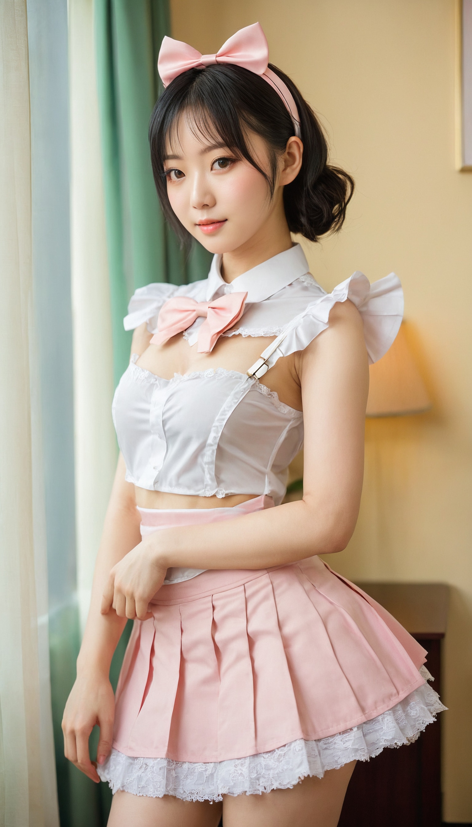 {"3": {"inputs": {"seed": 227149776768926, "steps": 32, "cfg": 6.94, "sampler_name": "dpmpp_2m", "scheduler": "karras", "denoise": 1.0, "model": ["27", 0], "positive": ["6", 0], "negative": ["7", 0], "latent_image": ["5", 0]}, "class_type": "KSampler"}, "4": {"inputs": {"ckpt_name": "juggernautxl.safetensors"}, "class_type": "CheckpointLoaderSimple"}, "5": {"inputs": {"width": 768, "height": 1344, "batch_size": 1}, "class_type": "EmptyLatentImage"}, "6": {"inputs": {"text": "24 year old girl, (taiwanese:1.14), (chinese:1.00), (seductive facial expression:1.01), (double eyelids:1.06), (eyelashes:0.98), (seductive pose:0.95), (pale skin:1.04), (cute:1.13), (slim:0.99), (detailed face:1.01), (temptress:0.95), (idol:0.96), (sexy lips:1.02), (blush:1.12), (perky ass:0.98), (exposed ass:1.01), (looking back:1.02), (sexy ass:1.11), (thigh gap:0.97), in a (skimpy maid costume:0.96) working at a maid cafe, choker, bowtie, headband, pleated skirt, (detailed skin:1.05), (candid cinema:1.06), (portra:1.05), (soft lighting:1.09), (textured skin:1.07), (skin fuzz:1.02), (natural looking skin:1.09), (RAW:1.01), (film:1.09)", "clip": ["27", 1]}, "class_type": "CLIPTextEncode"}, "7": {"inputs": {"text": "(bad hands:1.07), (watermark:1.13), (distorted:1.06), (worst quality:1.10), (open mouth:1.13), (low resolution:1.14), (twisted:1.08)", "clip": ["27", 1]}, "class_type": "CLIPTextEncode"}, "8": {"inputs": {"samples": ["3", 0], "vae": ["4", 2]}, "class_type": "VAEDecode"}, "25": {"inputs": {"lora_name": "nudify_xl.safetensors", "strength_model": 0.05, "strength_clip": 0.14, "model": ["4", 0], "clip": ["4", 1]}, "class_type": "LoraLoader"}, "26": {"inputs": {"lora_name": "shirtlift_SDXL_v2.safetensors", "strength_model": 0.07, "strength_clip": 0.06, "model": ["25", 0], "clip": ["25", 1]}, "class_type": "LoraLoader"}, "27": {"inputs": {"lora_name": "PerfectEyesXL.safetensors", "strength_model": 0.11, "strength_clip": 0.07, "model": ["26", 0], "clip": ["26", 1]}, "class_type": "LoraLoader"}, "30": {"inputs": {"model_name": "4x_NMKD-Superscale-SP_178000_G.pth"}, "class_type": "UpscaleModelLoader"}, "31": {"inputs": {"upscale_model": ["30", 0], "image": ["8", 0]}, "class_type": "ImageUpscaleWithModel"}, "32": {"inputs": {"upscale_method": "lanczos", "scale_by": 0.5, "image": ["31", 0]}, "class_type": "ImageScaleBy"}, "33": {"inputs": {"pixels": ["32", 0], "vae": ["4", 2]}, "class_type": "VAEEncode"}, "34": {"inputs": {"seed": 227149776768926, "steps": 32, "cfg": 6.94, "sampler_name": "dpmpp_2m", "scheduler": "karras", "denoise": 0.3, "model": ["27", 0], "positive": ["6", 0], "negative": ["7", 0], "latent_image": ["33", 0]}, "class_type": "KSampler"}, "36": {"inputs": {"samples": ["34", 0], "vae": ["4", 2]}, "class_type": "VAEDecode"}, "39": {"inputs": {"filename_prefix": "comfyapi-1714622467460", "images": ["36", 0]}, "class_type": "SaveImage"}}