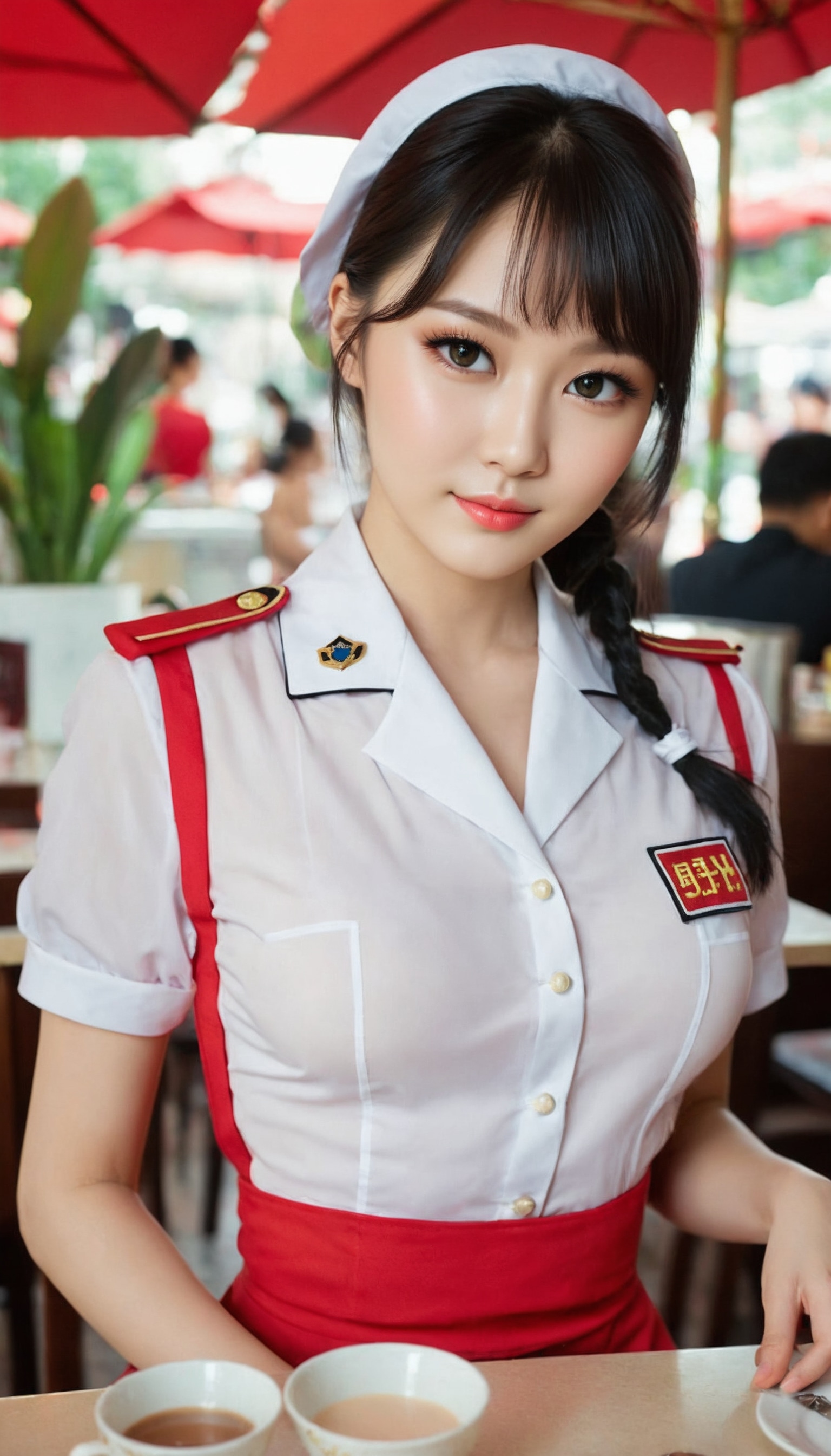 {"3": {"inputs": {"seed": 828490706067950, "steps": 32, "cfg": 6.43, "sampler_name": "dpmpp_2m", "scheduler": "karras", "denoise": 1.0, "model": ["27", 0], "positive": ["6", 0], "negative": ["7", 0], "latent_image": ["5", 0]}, "class_type": "KSampler"}, "4": {"inputs": {"ckpt_name": "juggernautXL_v8Rundiffusion.safetensors"}, "class_type": "CheckpointLoaderSimple"}, "5": {"inputs": {"width": 768, "height": 1344, "batch_size": 1}, "class_type": "EmptyLatentImage"}, "6": {"inputs": {"text": "25 year old girl, (ukrainian:0.99), (taiwanese:0.99), (slim:1.12), (seductive pose:1.02), (idol:1.06), (eyelashes:1.00), (pale skin:0.96), (blush:0.97), (temptress:1.03), (cute:1.05), (detailed face:1.04), (beautiful eyes:1.12), (seductive facial expression:1.09), (sexy lips:1.04), (double eyelids:1.08), (in a seductive pose:0.99), (large perky breasts:0.96), (cleavage:0.96), (thigh gap:1.00), (a waitress in uniform:1.14) working at a restaurant, (detailed skin:1.05), (textured skin:1.08), (portra:1.01), (candid cinema:1.03), (skin fuzz:1.01), (soft lighting:1.01), (film:1.03), (natural looking skin:1.06), (RAW:1.01)", "clip": ["27", 1]}, "class_type": "CLIPTextEncode"}, "7": {"inputs": {"text": "(twisted:1.05), (bad hands:1.10), (distorted:1.06), (worst quality:1.08), (open mouth:1.07), (watermark:1.11), (low resolution:1.11)", "clip": ["27", 1]}, "class_type": "CLIPTextEncode"}, "8": {"inputs": {"samples": ["3", 0], "vae": ["4", 2]}, "class_type": "VAEDecode"}, "25": {"inputs": {"lora_name": "nudify_xl.safetensors", "strength_model": 0.05, "strength_clip": 0.31, "model": ["4", 0], "clip": ["4", 1]}, "class_type": "LoraLoader"}, "26": {"inputs": {"lora_name": "shirtlift_SDXL_v2.safetensors", "strength_model": 0.01, "strength_clip": 0.18, "model": ["25", 0], "clip": ["25", 1]}, "class_type": "LoraLoader"}, "27": {"inputs": {"lora_name": "PerfectEyesXL.safetensors", "strength_model": 0.12, "strength_clip": 0.14, "model": ["26", 0], "clip": ["26", 1]}, "class_type": "LoraLoader"}, "30": {"inputs": {"model_name": "4x_NMKD-Superscale-SP_178000_G.pth"}, "class_type": "UpscaleModelLoader"}, "31": {"inputs": {"upscale_model": ["30", 0], "image": ["8", 0]}, "class_type": "ImageUpscaleWithModel"}, "32": {"inputs": {"upscale_method": "lanczos", "scale_by": 0.5, "image": ["31", 0]}, "class_type": "ImageScaleBy"}, "33": {"inputs": {"pixels": ["32", 0], "vae": ["4", 2]}, "class_type": "VAEEncode"}, "34": {"inputs": {"seed": 828490706067950, "steps": 32, "cfg": 6.43, "sampler_name": "dpmpp_2m", "scheduler": "karras", "denoise": 0.3, "model": ["27", 0], "positive": ["6", 0], "negative": ["7", 0], "latent_image": ["33", 0]}, "class_type": "KSampler"}, "36": {"inputs": {"samples": ["34", 0], "vae": ["4", 2]}, "class_type": "VAEDecode"}, "39": {"inputs": {"filename_prefix": "comfyapi-1707534772735", "images": ["36", 0]}, "class_type": "SaveImage"}}