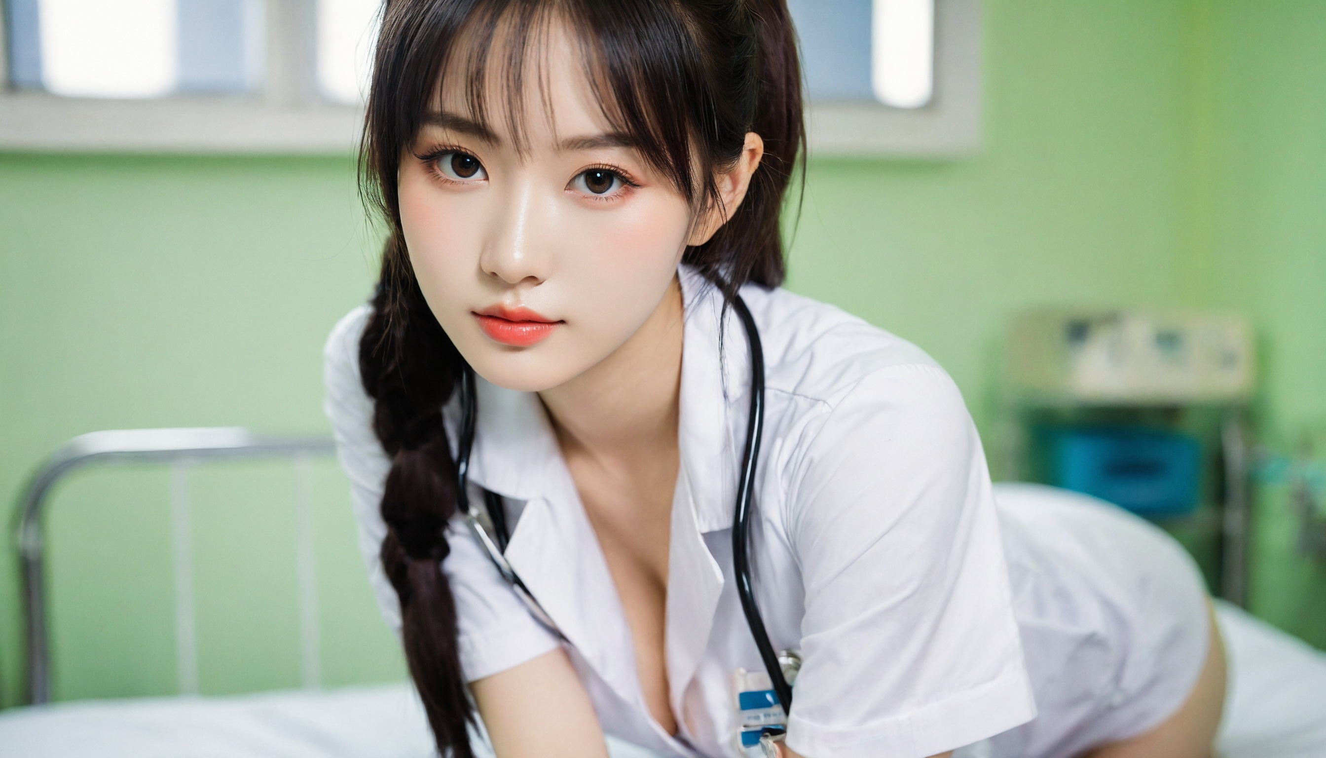 {"3": {"inputs": {"seed": 426913013506409, "steps": 64, "cfg": 6.8, "sampler_name": "dpmpp_2m", "scheduler": "karras", "denoise": 1.0, "model": ["27", 0], "positive": ["6", 0], "negative": ["7", 0], "latent_image": ["5", 0]}, "class_type": "KSampler"}, "4": {"inputs": {"ckpt_name": "helloworldxl.safetensors"}, "class_type": "CheckpointLoaderSimple"}, "5": {"inputs": {"width": 1344, "height": 768, "batch_size": 1}, "class_type": "EmptyLatentImage"}, "6": {"inputs": {"text": "19 year old girl, (chinese:1.09), (taiwanese:0.95), (japanese:0.96), (ukrainian:1.01), (eyelashes:1.00), (temptress:1.04), (double eyelids:1.04), (sexy lips:1.14), (cute:0.96), (blush:1.04), (idol:1.01), (pale skin:0.95), (seductive pose:1.01), (slim:0.97), (seductive facial expression:0.96), (detailed face:1.09), (beautiful eyes:0.97), (in a seductive pose:1.13), (large perky breasts:0.99), (cleavage:1.09), (thigh gap:1.00), (nurse in uniform:1.06) working in a hospital ward, (soft lighting:1.05), (natural looking skin:1.03), (textured skin:1.08), (film:1.08), (RAW:1.04), (portra:1.04), (skin fuzz:1.02), (candid cinema:1.03), (detailed skin:1.04)", "clip": ["27", 1]}, "class_type": "CLIPTextEncode"}, "7": {"inputs": {"text": "(worst quality:1.10), (low resolution:1.14), (twisted:1.09), (bad hands:1.09), (open mouth:1.05), (distorted:1.07), (watermark:1.07)", "clip": ["27", 1]}, "class_type": "CLIPTextEncode"}, "8": {"inputs": {"samples": ["3", 0], "vae": ["4", 2]}, "class_type": "VAEDecode"}, "25": {"inputs": {"lora_name": "nudify_xl.safetensors", "strength_model": 0.12, "strength_clip": 0.15, "model": ["4", 0], "clip": ["4", 1]}, "class_type": "LoraLoader"}, "26": {"inputs": {"lora_name": "shirtlift_SDXL_v2.safetensors", "strength_model": 0.02, "strength_clip": 0.13, "model": ["25", 0], "clip": ["25", 1]}, "class_type": "LoraLoader"}, "27": {"inputs": {"lora_name": "PerfectEyesXL.safetensors", "strength_model": 0.11, "strength_clip": 0.11, "model": ["26", 0], "clip": ["26", 1]}, "class_type": "LoraLoader"}, "30": {"inputs": {"model_name": "4x_NMKD-Superscale-SP_178000_G.pth"}, "class_type": "UpscaleModelLoader"}, "31": {"inputs": {"upscale_model": ["30", 0], "image": ["8", 0]}, "class_type": "ImageUpscaleWithModel"}, "32": {"inputs": {"upscale_method": "lanczos", "scale_by": 0.5, "image": ["31", 0]}, "class_type": "ImageScaleBy"}, "33": {"inputs": {"pixels": ["32", 0], "vae": ["4", 2]}, "class_type": "VAEEncode"}, "34": {"inputs": {"seed": 426913013506409, "steps": 64, "cfg": 6.8, "sampler_name": "dpmpp_2m", "scheduler": "karras", "denoise": 0.3, "model": ["27", 0], "positive": ["6", 0], "negative": ["7", 0], "latent_image": ["33", 0]}, "class_type": "KSampler"}, "36": {"inputs": {"samples": ["34", 0], "vae": ["4", 2]}, "class_type": "VAEDecode"}, "39": {"inputs": {"filename_prefix": "comfyapi-1726599440151", "images": ["36", 0]}, "class_type": "SaveImage"}}