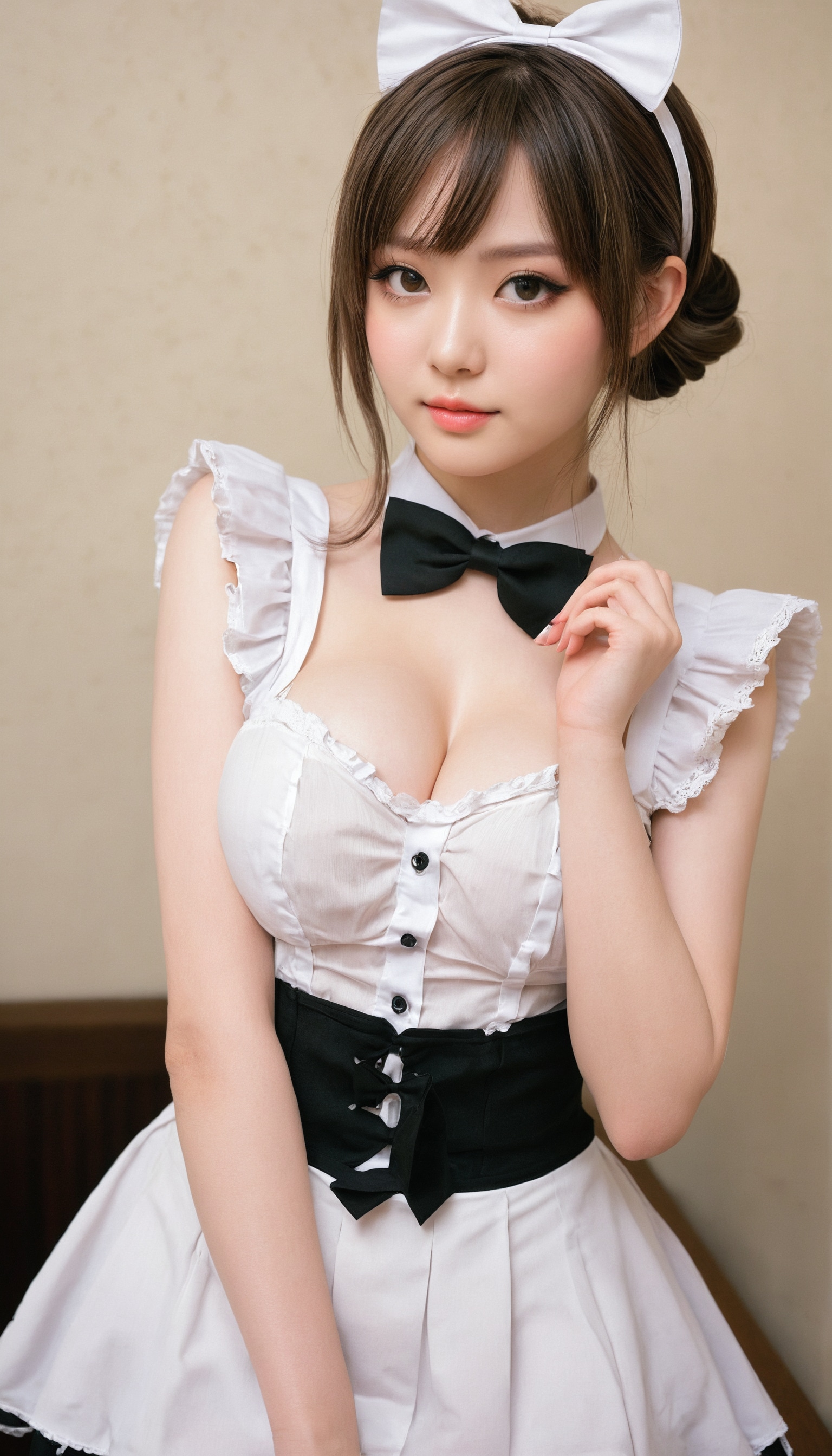 {"3": {"inputs": {"seed": 380622171702093, "steps": 64, "cfg": 5.52, "sampler_name": "dpmpp_2m", "scheduler": "karras", "denoise": 1.0, "model": ["27", 0], "positive": ["6", 0], "negative": ["7", 0], "latent_image": ["5", 0]}, "class_type": "KSampler"}, "4": {"inputs": {"ckpt_name": "juggernautxl.safetensors"}, "class_type": "CheckpointLoaderSimple"}, "5": {"inputs": {"width": 768, "height": 1344, "batch_size": 1}, "class_type": "EmptyLatentImage"}, "6": {"inputs": {"text": "22 year old girl, (idol:0.99), (double eyelids:0.99), (temptress:0.95), (blush:0.98), (seductive facial expression:1.13), (detailed face:1.02), (eyelashes:1.01), (pale skin:0.99), (seductive pose:1.13), (sexy lips:1.12), (slim:1.02), (cute:1.14), (beautiful eyes:1.09), (in a seductive pose:1.07), (large perky breasts:1.06), (cleavage:0.96), (thigh gap:1.04), in a (skimpy maid costume:1.04) working at a maid cafe, choker, bowtie, headband, pleated skirt, (portra:1.07), (candid cinema:1.07), (skin fuzz:1.07), (soft lighting:1.08), (film:1.08), (detailed skin:1.01), (textured skin:1.00), (RAW:1.03), (natural looking skin:1.05)", "clip": ["27", 1]}, "class_type": "CLIPTextEncode"}, "7": {"inputs": {"text": "(open mouth:1.08), (watermark:1.10), (worst quality:1.07), (twisted:1.08), (distorted:1.11), (low resolution:1.13), (bad hands:1.07)", "clip": ["27", 1]}, "class_type": "CLIPTextEncode"}, "8": {"inputs": {"samples": ["3", 0], "vae": ["4", 2]}, "class_type": "VAEDecode"}, "25": {"inputs": {"lora_name": "nudify_xl.safetensors", "strength_model": 0.22, "strength_clip": 0.08, "model": ["4", 0], "clip": ["4", 1]}, "class_type": "LoraLoader"}, "26": {"inputs": {"lora_name": "shirtlift_SDXL_v2.safetensors", "strength_model": 0.15, "strength_clip": 0.05, "model": ["25", 0], "clip": ["25", 1]}, "class_type": "LoraLoader"}, "27": {"inputs": {"lora_name": "PerfectEyesXL.safetensors", "strength_model": 0.03, "strength_clip": 0.19, "model": ["26", 0], "clip": ["26", 1]}, "class_type": "LoraLoader"}, "30": {"inputs": {"model_name": "4x_NMKD-Superscale-SP_178000_G.pth"}, "class_type": "UpscaleModelLoader"}, "31": {"inputs": {"upscale_model": ["30", 0], "image": ["8", 0]}, "class_type": "ImageUpscaleWithModel"}, "32": {"inputs": {"upscale_method": "lanczos", "scale_by": 0.5, "image": ["31", 0]}, "class_type": "ImageScaleBy"}, "33": {"inputs": {"pixels": ["32", 0], "vae": ["4", 2]}, "class_type": "VAEEncode"}, "34": {"inputs": {"seed": 380622171702093, "steps": 64, "cfg": 5.52, "sampler_name": "dpmpp_2m", "scheduler": "karras", "denoise": 0.3, "model": ["27", 0], "positive": ["6", 0], "negative": ["7", 0], "latent_image": ["33", 0]}, "class_type": "KSampler"}, "36": {"inputs": {"samples": ["34", 0], "vae": ["4", 2]}, "class_type": "VAEDecode"}, "39": {"inputs": {"filename_prefix": "comfyapi-1714720235108", "images": ["36", 0]}, "class_type": "SaveImage"}}