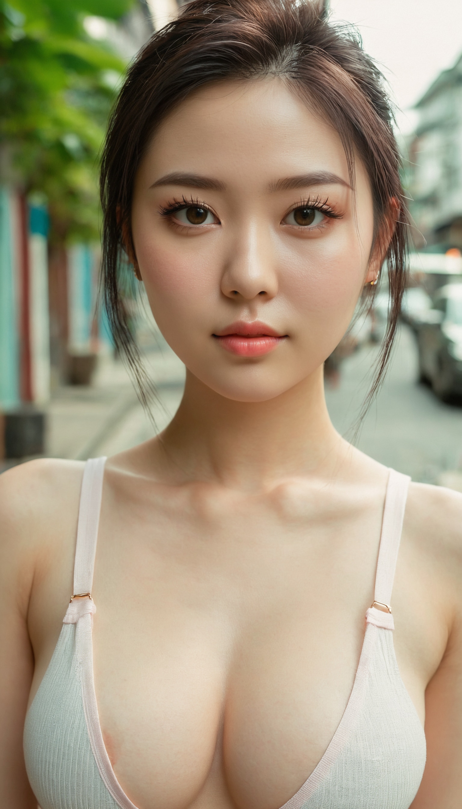 {"3": {"inputs": {"seed": 299193940455608, "steps": 64, "cfg": 6.34, "sampler_name": "dpmpp_2m", "scheduler": "karras", "denoise": 1.0, "model": ["27", 0], "positive": ["6", 0], "negative": ["7", 0], "latent_image": ["5", 0]}, "class_type": "KSampler"}, "4": {"inputs": {"ckpt_name": "juggernautxl.safetensors"}, "class_type": "CheckpointLoaderSimple"}, "5": {"inputs": {"width": 768, "height": 1344, "batch_size": 1}, "class_type": "EmptyLatentImage"}, "6": {"inputs": {"text": "27 year old girl, (ukrainian:1.06), (taiwanese:0.96), (irish:0.99), (detailed face:1.05), (blush:1.09), (cute:1.06), (idol:1.02), (seductive facial expression:1.11), (sexy lips:1.04), (pale skin:1.02), (beautiful eyes:0.96), (seductive pose:0.98), (double eyelids:0.98), (eyelashes:1.11), (temptress:1.06), (in a seductive pose:1.02), (large perky breasts:1.03), (cleavage:0.98), (thigh gap:1.08), (white tanktop:1.07), busy street, (portra:1.01), (film:1.09), (textured skin:1.01), (detailed skin:1.06), (candid cinema:1.07), (natural looking skin:1.00), (skin fuzz:1.02), (RAW:1.00), (soft lighting:1.01)", "clip": ["27", 1]}, "class_type": "CLIPTextEncode"}, "7": {"inputs": {"text": "(bad hands:1.14), (open mouth:1.13), (distorted:1.06), (watermark:1.06), (worst quality:1.06), (low resolution:1.14), (twisted:1.11)", "clip": ["27", 1]}, "class_type": "CLIPTextEncode"}, "8": {"inputs": {"samples": ["3", 0], "vae": ["4", 2]}, "class_type": "VAEDecode"}, "25": {"inputs": {"lora_name": "nudify_xl.safetensors", "strength_model": 0.34, "strength_clip": 0.3, "model": ["4", 0], "clip": ["4", 1]}, "class_type": "LoraLoader"}, "26": {"inputs": {"lora_name": "shirtlift_SDXL_v2.safetensors", "strength_model": 0.14, "strength_clip": 0.09, "model": ["25", 0], "clip": ["25", 1]}, "class_type": "LoraLoader"}, "27": {"inputs": {"lora_name": "PerfectEyesXL.safetensors", "strength_model": 0.07, "strength_clip": 0.04, "model": ["26", 0], "clip": ["26", 1]}, "class_type": "LoraLoader"}, "30": {"inputs": {"model_name": "4x_NMKD-Superscale-SP_178000_G.pth"}, "class_type": "UpscaleModelLoader"}, "31": {"inputs": {"upscale_model": ["30", 0], "image": ["8", 0]}, "class_type": "ImageUpscaleWithModel"}, "32": {"inputs": {"upscale_method": "lanczos", "scale_by": 0.5, "image": ["31", 0]}, "class_type": "ImageScaleBy"}, "33": {"inputs": {"pixels": ["32", 0], "vae": ["4", 2]}, "class_type": "VAEEncode"}, "34": {"inputs": {"seed": 299193940455608, "steps": 64, "cfg": 6.34, "sampler_name": "dpmpp_2m", "scheduler": "karras", "denoise": 0.3, "model": ["27", 0], "positive": ["6", 0], "negative": ["7", 0], "latent_image": ["33", 0]}, "class_type": "KSampler"}, "36": {"inputs": {"samples": ["34", 0], "vae": ["4", 2]}, "class_type": "VAEDecode"}, "39": {"inputs": {"filename_prefix": "comfyapi-1724765128774", "images": ["36", 0]}, "class_type": "SaveImage"}}