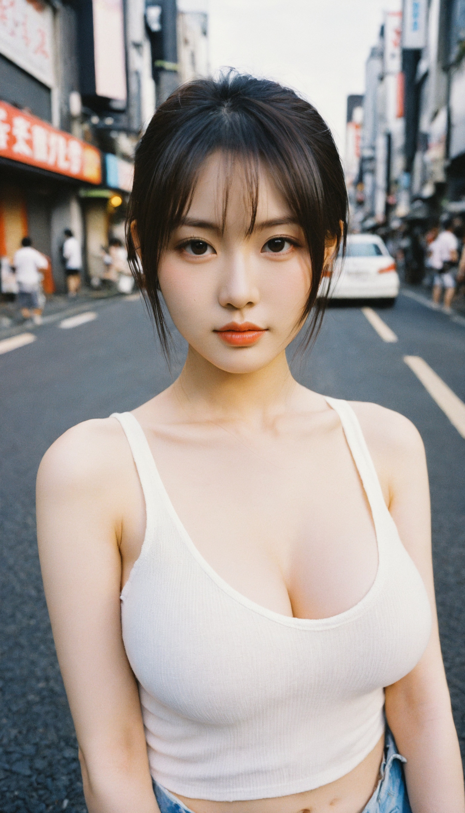{"3": {"inputs": {"seed": 403275379489815, "steps": 64, "cfg": 5.62, "sampler_name": "dpmpp_2m", "scheduler": "karras", "denoise": 1.0, "model": ["27", 0], "positive": ["6", 0], "negative": ["7", 0], "latent_image": ["5", 0]}, "class_type": "KSampler"}, "4": {"inputs": {"ckpt_name": "helloworldxl.safetensors"}, "class_type": "CheckpointLoaderSimple"}, "5": {"inputs": {"width": 768, "height": 1344, "batch_size": 1}, "class_type": "EmptyLatentImage"}, "6": {"inputs": {"text": "26 year old girl, (japanese:1.07), (cute:1.09), (sexy lips:1.07), (eyelashes:1.06), (temptress:1.02), (beautiful eyes:1.03), (blush:1.10), (idol:1.14), (double eyelids:0.97), (seductive pose:1.05), (pale skin:1.11), (in a seductive pose:1.02), (large perky breasts:1.05), (cleavage:0.99), (thigh gap:1.05), (white tanktop:1.04), busy street, (soft lighting:1.07), (candid cinema:1.04), (textured skin:1.07), (portra:1.09), (natural looking skin:1.01), (detailed skin:1.05), (RAW:1.00), (skin fuzz:1.00), (film:1.00)", "clip": ["27", 1]}, "class_type": "CLIPTextEncode"}, "7": {"inputs": {"text": "(open mouth:1.14), (distorted:1.07), (bad hands:1.11), (twisted:1.10), (low resolution:1.05), (worst quality:1.14), (watermark:1.10)", "clip": ["27", 1]}, "class_type": "CLIPTextEncode"}, "8": {"inputs": {"samples": ["3", 0], "vae": ["4", 2]}, "class_type": "VAEDecode"}, "25": {"inputs": {"lora_name": "nudify_xl.safetensors", "strength_model": 0.05, "strength_clip": 0.05, "model": ["4", 0], "clip": ["4", 1]}, "class_type": "LoraLoader"}, "26": {"inputs": {"lora_name": "shirtlift_SDXL_v2.safetensors", "strength_model": 0.09, "strength_clip": 0.04, "model": ["25", 0], "clip": ["25", 1]}, "class_type": "LoraLoader"}, "27": {"inputs": {"lora_name": "PerfectEyesXL.safetensors", "strength_model": 0.02, "strength_clip": 0.14, "model": ["26", 0], "clip": ["26", 1]}, "class_type": "LoraLoader"}, "30": {"inputs": {"model_name": "4x_NMKD-Superscale-SP_178000_G.pth"}, "class_type": "UpscaleModelLoader"}, "31": {"inputs": {"upscale_model": ["30", 0], "image": ["8", 0]}, "class_type": "ImageUpscaleWithModel"}, "32": {"inputs": {"upscale_method": "lanczos", "scale_by": 0.5, "image": ["31", 0]}, "class_type": "ImageScaleBy"}, "33": {"inputs": {"pixels": ["32", 0], "vae": ["4", 2]}, "class_type": "VAEEncode"}, "34": {"inputs": {"seed": 403275379489815, "steps": 64, "cfg": 5.62, "sampler_name": "dpmpp_2m", "scheduler": "karras", "denoise": 0.3, "model": ["27", 0], "positive": ["6", 0], "negative": ["7", 0], "latent_image": ["33", 0]}, "class_type": "KSampler"}, "36": {"inputs": {"samples": ["34", 0], "vae": ["4", 2]}, "class_type": "VAEDecode"}, "39": {"inputs": {"filename_prefix": "comfyapi-1733017019093", "images": ["36", 0]}, "class_type": "SaveImage"}}