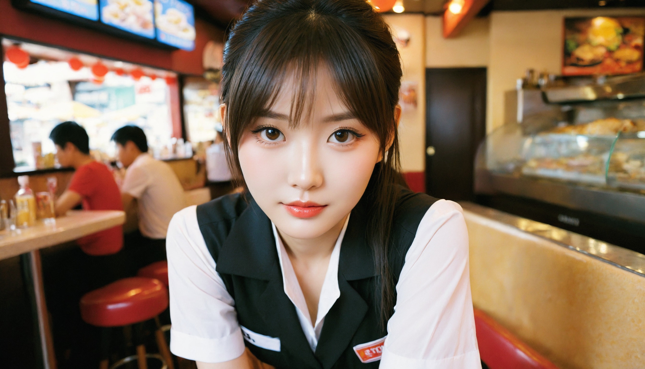 {"3": {"inputs": {"seed": 999636296331855, "steps": 64, "cfg": 6.74, "sampler_name": "dpmpp_2m", "scheduler": "karras", "denoise": 1.0, "model": ["27", 0], "positive": ["6", 0], "negative": ["7", 0], "latent_image": ["5", 0]}, "class_type": "KSampler"}, "4": {"inputs": {"ckpt_name": "helloworldxl.safetensors"}, "class_type": "CheckpointLoaderSimple"}, "5": {"inputs": {"width": 1344, "height": 768, "batch_size": 1}, "class_type": "EmptyLatentImage"}, "6": {"inputs": {"text": "22 year old girl, (taiwanese:1.12), (korean:0.95), (idol:0.97), (seductive facial expression:1.03), (sexy lips:0.97), (eyelashes:0.97), (seductive pose:1.03), (double eyelids:1.12), (slim:1.01), (cute:1.12), (beautiful eyes:1.05), (blush:1.04), (detailed face:1.11), (pale skin:1.08), (in a seductive pose:0.97), (large perky breasts:0.97), (cleavage:0.95), (thigh gap:1.02), (a waitress in uniform:1.11) working at a restaurant, (candid cinema:1.00), (detailed skin:1.09), (skin fuzz:1.02), (soft lighting:1.06), (textured skin:1.03), (RAW:1.05), (natural looking skin:1.07), (film:1.01), (portra:1.09)", "clip": ["27", 1]}, "class_type": "CLIPTextEncode"}, "7": {"inputs": {"text": "(worst quality:1.13), (watermark:1.06), (twisted:1.13), (open mouth:1.06), (low resolution:1.12), (bad hands:1.10), (distorted:1.09)", "clip": ["27", 1]}, "class_type": "CLIPTextEncode"}, "8": {"inputs": {"samples": ["3", 0], "vae": ["4", 2]}, "class_type": "VAEDecode"}, "25": {"inputs": {"lora_name": "nudify_xl.safetensors", "strength_model": 0.06, "strength_clip": 0.09, "model": ["4", 0], "clip": ["4", 1]}, "class_type": "LoraLoader"}, "26": {"inputs": {"lora_name": "shirtlift_SDXL_v2.safetensors", "strength_model": 0.08, "strength_clip": 0.01, "model": ["25", 0], "clip": ["25", 1]}, "class_type": "LoraLoader"}, "27": {"inputs": {"lora_name": "PerfectEyesXL.safetensors", "strength_model": 0.09, "strength_clip": 0.19, "model": ["26", 0], "clip": ["26", 1]}, "class_type": "LoraLoader"}, "30": {"inputs": {"model_name": "4x_NMKD-Superscale-SP_178000_G.pth"}, "class_type": "UpscaleModelLoader"}, "31": {"inputs": {"upscale_model": ["30", 0], "image": ["8", 0]}, "class_type": "ImageUpscaleWithModel"}, "32": {"inputs": {"upscale_method": "lanczos", "scale_by": 0.5, "image": ["31", 0]}, "class_type": "ImageScaleBy"}, "33": {"inputs": {"pixels": ["32", 0], "vae": ["4", 2]}, "class_type": "VAEEncode"}, "34": {"inputs": {"seed": 999636296331855, "steps": 64, "cfg": 6.74, "sampler_name": "dpmpp_2m", "scheduler": "karras", "denoise": 0.3, "model": ["27", 0], "positive": ["6", 0], "negative": ["7", 0], "latent_image": ["33", 0]}, "class_type": "KSampler"}, "36": {"inputs": {"samples": ["34", 0], "vae": ["4", 2]}, "class_type": "VAEDecode"}, "39": {"inputs": {"filename_prefix": "comfyapi-1727897424504", "images": ["36", 0]}, "class_type": "SaveImage"}}