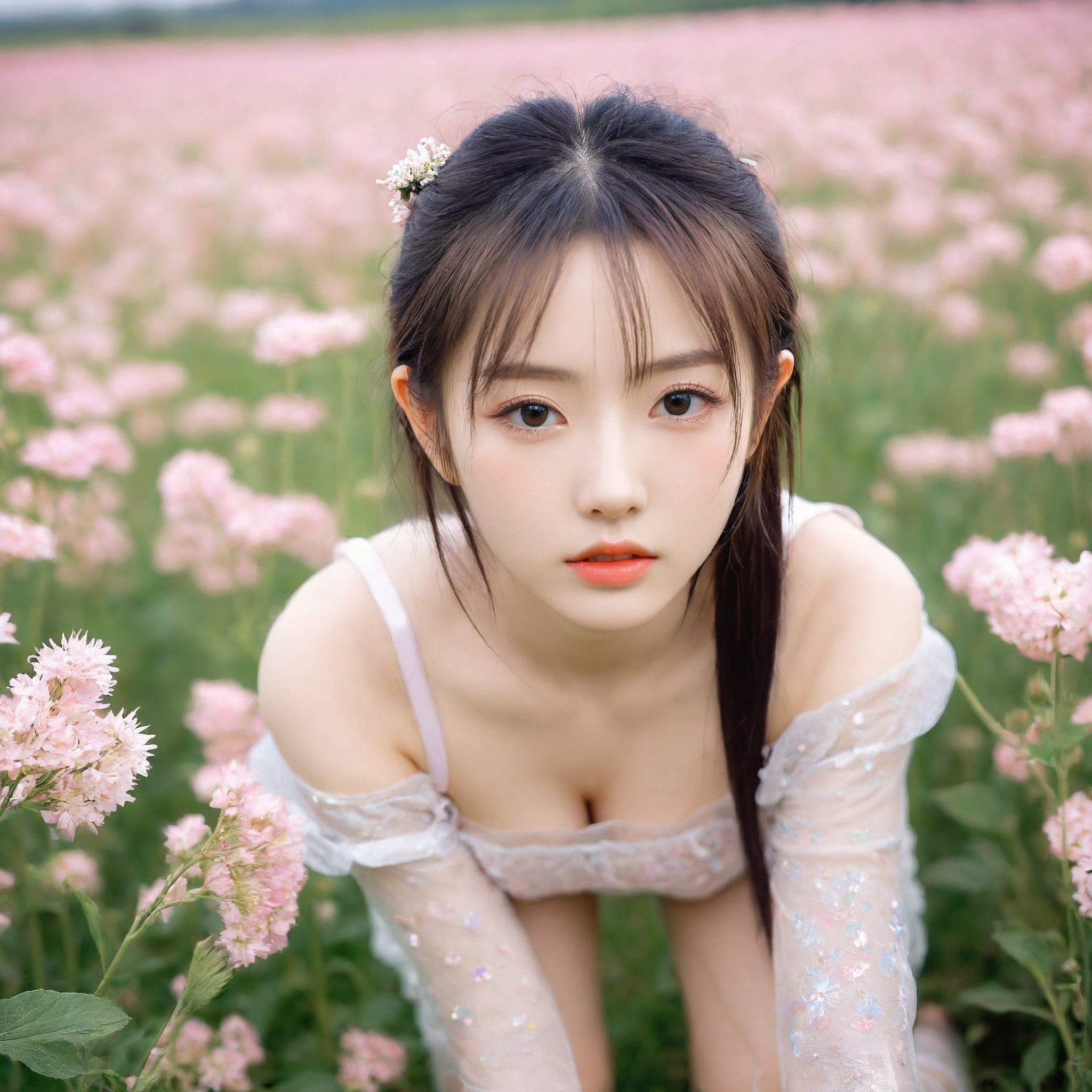 {"3": {"inputs": {"seed": 525244114143001, "steps": 64, "cfg": 5.8, "sampler_name": "dpmpp_2m", "scheduler": "karras", "denoise": 1.0, "model": ["27", 0], "positive": ["6", 0], "negative": ["7", 0], "latent_image": ["5", 0]}, "class_type": "KSampler"}, "4": {"inputs": {"ckpt_name": "leosamsHelloworldSDXL_helloworldSDXL32DPO.safetensors"}, "class_type": "CheckpointLoaderSimple"}, "5": {"inputs": {"width": 1024, "height": 1024, "batch_size": 1}, "class_type": "EmptyLatentImage"}, "6": {"inputs": {"text": "21 year old girl, (japanese:1.06), (chinese:1.11), (beautiful eyes:0.95), (blush:0.96), (seductive pose:1.03), (double eyelids:0.96), (pale skin:1.03), (seductive facial expression:1.08), (cute:0.96), (eyelashes:1.02), (sexy lips:1.07), (slim:1.08), (detailed face:1.14), (idol:1.12), (perky ass:1.09), (exposed ass:1.10), (looking back:1.06), (sexy ass:1.00), (thigh gap:1.01), wearing (translucent clothes:0.97) on a flower field, (soft lighting:1.02), (film:1.08), (textured skin:1.05), (candid cinema:1.05), (portra:1.08), (natural looking skin:1.02), (RAW:1.09), (detailed skin:1.00)", "clip": ["27", 1]}, "class_type": "CLIPTextEncode"}, "7": {"inputs": {"text": "(low resolution:1.13), (twisted:1.14), (open mouth:1.13), (bad hands:1.05), (watermark:1.12), (worst quality:1.09), (distorted:1.10)", "clip": ["27", 1]}, "class_type": "CLIPTextEncode"}, "8": {"inputs": {"samples": ["3", 0], "vae": ["4", 2]}, "class_type": "VAEDecode"}, "25": {"inputs": {"lora_name": "nudify_xl.safetensors", "strength_model": 0.24, "strength_clip": 0.09, "model": ["4", 0], "clip": ["4", 1]}, "class_type": "LoraLoader"}, "26": {"inputs": {"lora_name": "shirtlift_SDXL_v2.safetensors", "strength_model": 0.09, "strength_clip": 0.08, "model": ["25", 0], "clip": ["25", 1]}, "class_type": "LoraLoader"}, "27": {"inputs": {"lora_name": "PerfectEyesXL.safetensors", "strength_model": 0.03, "strength_clip": 0.14, "model": ["26", 0], "clip": ["26", 1]}, "class_type": "LoraLoader"}, "30": {"inputs": {"model_name": "4x_NMKD-Superscale-SP_178000_G.pth"}, "class_type": "UpscaleModelLoader"}, "31": {"inputs": {"upscale_model": ["30", 0], "image": ["8", 0]}, "class_type": "ImageUpscaleWithModel"}, "32": {"inputs": {"upscale_method": "lanczos", "scale_by": 0.5, "image": ["31", 0]}, "class_type": "ImageScaleBy"}, "33": {"inputs": {"pixels": ["32", 0], "vae": ["4", 2]}, "class_type": "VAEEncode"}, "34": {"inputs": {"seed": 525244114143001, "steps": 64, "cfg": 5.8, "sampler_name": "dpmpp_2m", "scheduler": "karras", "denoise": 0.3, "model": ["27", 0], "positive": ["6", 0], "negative": ["7", 0], "latent_image": ["33", 0]}, "class_type": "KSampler"}, "36": {"inputs": {"samples": ["34", 0], "vae": ["4", 2]}, "class_type": "VAEDecode"}, "39": {"inputs": {"filename_prefix": "comfyapi-1707673268629", "images": ["36", 0]}, "class_type": "SaveImage"}}