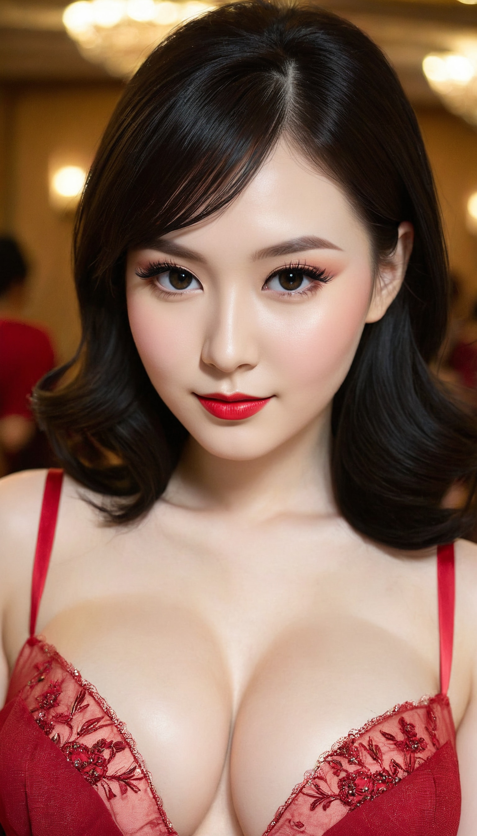 {"3": {"inputs": {"seed": 623137708326270, "steps": 32, "cfg": 7.98, "sampler_name": "dpmpp_2m", "scheduler": "karras", "denoise": 1.0, "model": ["27", 0], "positive": ["6", 0], "negative": ["7", 0], "latent_image": ["5", 0]}, "class_type": "KSampler"}, "4": {"inputs": {"ckpt_name": "juggernautXL_v8Rundiffusion.safetensors"}, "class_type": "CheckpointLoaderSimple"}, "5": {"inputs": {"width": 768, "height": 1344, "batch_size": 1}, "class_type": "EmptyLatentImage"}, "6": {"inputs": {"text": "27 year old girl, (idol:0.97), (seductive pose:1.09), (slim:1.13), (pale skin:1.04), (beautiful eyes:0.97), (eyelashes:1.10), (blush:1.05), (sexy lips:1.03), (detailed face:0.96), (double eyelids:0.98), (cute:0.95), (temptress:1.09), (seductive facial expression:1.09), (in a seductive pose:0.96), (large perky breasts:1.10), (cleavage:1.00), (thigh gap:1.02), (wearing a low-cut red dress:1.07) at a ballroom, (RAW:1.06), (film:1.07), (soft lighting:1.07), (textured skin:1.03), (detailed skin:1.03), (portra:1.05), (candid cinema:1.05), (natural looking skin:1.08), (skin fuzz:1.05)", "clip": ["27", 1]}, "class_type": "CLIPTextEncode"}, "7": {"inputs": {"text": "(watermark:1.05), (worst quality:1.08), (bad hands:1.05), (low resolution:1.08), (distorted:1.08), (twisted:1.10), (open mouth:1.12)", "clip": ["27", 1]}, "class_type": "CLIPTextEncode"}, "8": {"inputs": {"samples": ["3", 0], "vae": ["4", 2]}, "class_type": "VAEDecode"}, "25": {"inputs": {"lora_name": "nudify_xl.safetensors", "strength_model": 0.2, "strength_clip": 0.23, "model": ["4", 0], "clip": ["4", 1]}, "class_type": "LoraLoader"}, "26": {"inputs": {"lora_name": "shirtlift_SDXL_v2.safetensors", "strength_model": 0.07, "strength_clip": 0.16, "model": ["25", 0], "clip": ["25", 1]}, "class_type": "LoraLoader"}, "27": {"inputs": {"lora_name": "PerfectEyesXL.safetensors", "strength_model": 0.01, "strength_clip": 0.02, "model": ["26", 0], "clip": ["26", 1]}, "class_type": "LoraLoader"}, "30": {"inputs": {"model_name": "4x_NMKD-Superscale-SP_178000_G.pth"}, "class_type": "UpscaleModelLoader"}, "31": {"inputs": {"upscale_model": ["30", 0], "image": ["8", 0]}, "class_type": "ImageUpscaleWithModel"}, "32": {"inputs": {"upscale_method": "lanczos", "scale_by": 0.5, "image": ["31", 0]}, "class_type": "ImageScaleBy"}, "33": {"inputs": {"pixels": ["32", 0], "vae": ["4", 2]}, "class_type": "VAEEncode"}, "34": {"inputs": {"seed": 623137708326270, "steps": 32, "cfg": 7.98, "sampler_name": "dpmpp_2m", "scheduler": "karras", "denoise": 0.3, "model": ["27", 0], "positive": ["6", 0], "negative": ["7", 0], "latent_image": ["33", 0]}, "class_type": "KSampler"}, "36": {"inputs": {"samples": ["34", 0], "vae": ["4", 2]}, "class_type": "VAEDecode"}, "39": {"inputs": {"filename_prefix": "comfyapi-1707981818069", "images": ["36", 0]}, "class_type": "SaveImage"}}