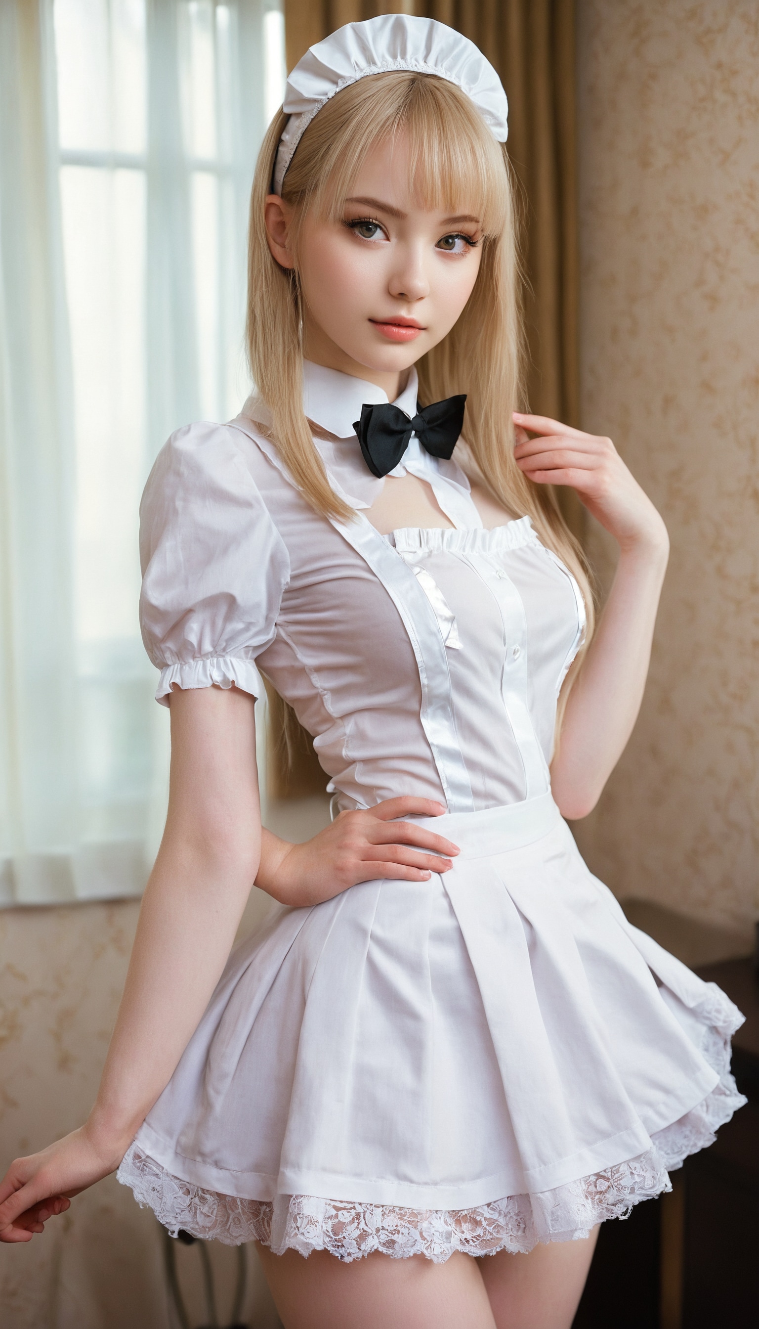 {"3": {"inputs": {"seed": 612669174965878, "steps": 32, "cfg": 5.87, "sampler_name": "dpmpp_2m", "scheduler": "karras", "denoise": 1.0, "model": ["27", 0], "positive": ["6", 0], "negative": ["7", 0], "latent_image": ["5", 0]}, "class_type": "KSampler"}, "4": {"inputs": {"ckpt_name": "juggernautxl.safetensors"}, "class_type": "CheckpointLoaderSimple"}, "5": {"inputs": {"width": 768, "height": 1344, "batch_size": 1}, "class_type": "EmptyLatentImage"}, "6": {"inputs": {"text": "21 year old girl, (russian:0.98), (seductive pose:0.96), (cute:1.03), (beautiful eyes:0.99), (seductive facial expression:1.06), (sexy lips:1.14), (pale skin:1.13), (double eyelids:1.05), (blush:1.03), (temptress:1.02), (eyelashes:1.09), (slim:0.98), (detailed face:1.05), (idol:1.03), (perky ass:0.96), (exposed ass:0.98), (looking back:1.06), (sexy ass:1.11), (thigh gap:1.07), in a (skimpy maid costume:1.11) working at a maid cafe, choker, bowtie, headband, pleated skirt, (detailed skin:1.03), (natural looking skin:1.03), (soft lighting:1.04), (portra:1.07), (RAW:1.03), (skin fuzz:1.09), (film:1.07), (candid cinema:1.08), (textured skin:1.09)", "clip": ["27", 1]}, "class_type": "CLIPTextEncode"}, "7": {"inputs": {"text": "(watermark:1.13), (worst quality:1.10), (twisted:1.06), (open mouth:1.12), (bad hands:1.13), (distorted:1.06), (low resolution:1.14)", "clip": ["27", 1]}, "class_type": "CLIPTextEncode"}, "8": {"inputs": {"samples": ["3", 0], "vae": ["4", 2]}, "class_type": "VAEDecode"}, "25": {"inputs": {"lora_name": "nudify_xl.safetensors", "strength_model": 0.05, "strength_clip": 0.16, "model": ["4", 0], "clip": ["4", 1]}, "class_type": "LoraLoader"}, "26": {"inputs": {"lora_name": "shirtlift_SDXL_v2.safetensors", "strength_model": 0.08, "strength_clip": 0.13, "model": ["25", 0], "clip": ["25", 1]}, "class_type": "LoraLoader"}, "27": {"inputs": {"lora_name": "PerfectEyesXL.safetensors", "strength_model": 0.16, "strength_clip": 0.13, "model": ["26", 0], "clip": ["26", 1]}, "class_type": "LoraLoader"}, "30": {"inputs": {"model_name": "4x_NMKD-Superscale-SP_178000_G.pth"}, "class_type": "UpscaleModelLoader"}, "31": {"inputs": {"upscale_model": ["30", 0], "image": ["8", 0]}, "class_type": "ImageUpscaleWithModel"}, "32": {"inputs": {"upscale_method": "lanczos", "scale_by": 0.5, "image": ["31", 0]}, "class_type": "ImageScaleBy"}, "33": {"inputs": {"pixels": ["32", 0], "vae": ["4", 2]}, "class_type": "VAEEncode"}, "34": {"inputs": {"seed": 612669174965878, "steps": 32, "cfg": 5.87, "sampler_name": "dpmpp_2m", "scheduler": "karras", "denoise": 0.3, "model": ["27", 0], "positive": ["6", 0], "negative": ["7", 0], "latent_image": ["33", 0]}, "class_type": "KSampler"}, "36": {"inputs": {"samples": ["34", 0], "vae": ["4", 2]}, "class_type": "VAEDecode"}, "39": {"inputs": {"filename_prefix": "comfyapi-1714893133014", "images": ["36", 0]}, "class_type": "SaveImage"}}