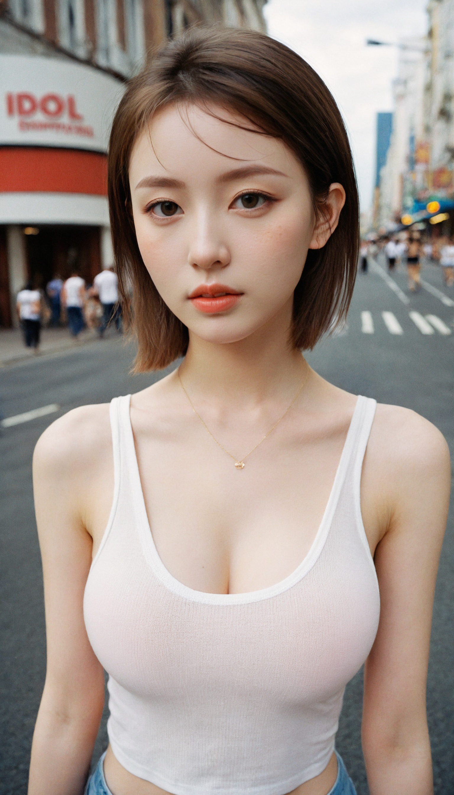 {"3": {"inputs": {"seed": 907198640979765, "steps": 64, "cfg": 5.94, "sampler_name": "dpmpp_2m", "scheduler": "karras", "denoise": 1.0, "model": ["27", 0], "positive": ["6", 0], "negative": ["7", 0], "latent_image": ["5", 0]}, "class_type": "KSampler"}, "4": {"inputs": {"ckpt_name": "leosamsHelloworldSDXL_helloworldSDXL32DPO.safetensors"}, "class_type": "CheckpointLoaderSimple"}, "5": {"inputs": {"width": 768, "height": 1344, "batch_size": 1}, "class_type": "EmptyLatentImage"}, "6": {"inputs": {"text": "25 year old girl, (blush:0.99), (pale skin:1.04), (double eyelids:0.98), (temptress:1.08), (seductive facial expression:1.14), (sexy lips:0.97), (seductive pose:1.05), (detailed face:1.12), (idol:1.04), (slim:1.07), (cute:1.11), (beautiful eyes:1.02), (in a seductive pose:1.11), (large perky breasts:1.03), (cleavage:1.12), (thigh gap:1.12), (white tanktop:1.01), busy street, (candid cinema:1.00), (natural looking skin:1.02), (portra:1.00), (film:1.00), (detailed skin:1.04), (RAW:1.08), (skin fuzz:1.04), (soft lighting:1.08), (textured skin:1.08)", "clip": ["27", 1]}, "class_type": "CLIPTextEncode"}, "7": {"inputs": {"text": "(open mouth:1.06), (distorted:1.14), (watermark:1.07), (worst quality:1.05), (twisted:1.08), (bad hands:1.12), (low resolution:1.12)", "clip": ["27", 1]}, "class_type": "CLIPTextEncode"}, "8": {"inputs": {"samples": ["3", 0], "vae": ["4", 2]}, "class_type": "VAEDecode"}, "25": {"inputs": {"lora_name": "nudify_xl.safetensors", "strength_model": 0.22, "strength_clip": 0.26, "model": ["4", 0], "clip": ["4", 1]}, "class_type": "LoraLoader"}, "26": {"inputs": {"lora_name": "shirtlift_SDXL_v2.safetensors", "strength_model": 0.0, "strength_clip": 0.06, "model": ["25", 0], "clip": ["25", 1]}, "class_type": "LoraLoader"}, "27": {"inputs": {"lora_name": "PerfectEyesXL.safetensors", "strength_model": 0.07, "strength_clip": 0.02, "model": ["26", 0], "clip": ["26", 1]}, "class_type": "LoraLoader"}, "30": {"inputs": {"model_name": "4x_NMKD-Superscale-SP_178000_G.pth"}, "class_type": "UpscaleModelLoader"}, "31": {"inputs": {"upscale_model": ["30", 0], "image": ["8", 0]}, "class_type": "ImageUpscaleWithModel"}, "32": {"inputs": {"upscale_method": "lanczos", "scale_by": 0.5, "image": ["31", 0]}, "class_type": "ImageScaleBy"}, "33": {"inputs": {"pixels": ["32", 0], "vae": ["4", 2]}, "class_type": "VAEEncode"}, "34": {"inputs": {"seed": 907198640979765, "steps": 64, "cfg": 5.94, "sampler_name": "dpmpp_2m", "scheduler": "karras", "denoise": 0.3, "model": ["27", 0], "positive": ["6", 0], "negative": ["7", 0], "latent_image": ["33", 0]}, "class_type": "KSampler"}, "36": {"inputs": {"samples": ["34", 0], "vae": ["4", 2]}, "class_type": "VAEDecode"}, "39": {"inputs": {"filename_prefix": "comfyapi-1708008330681", "images": ["36", 0]}, "class_type": "SaveImage"}}