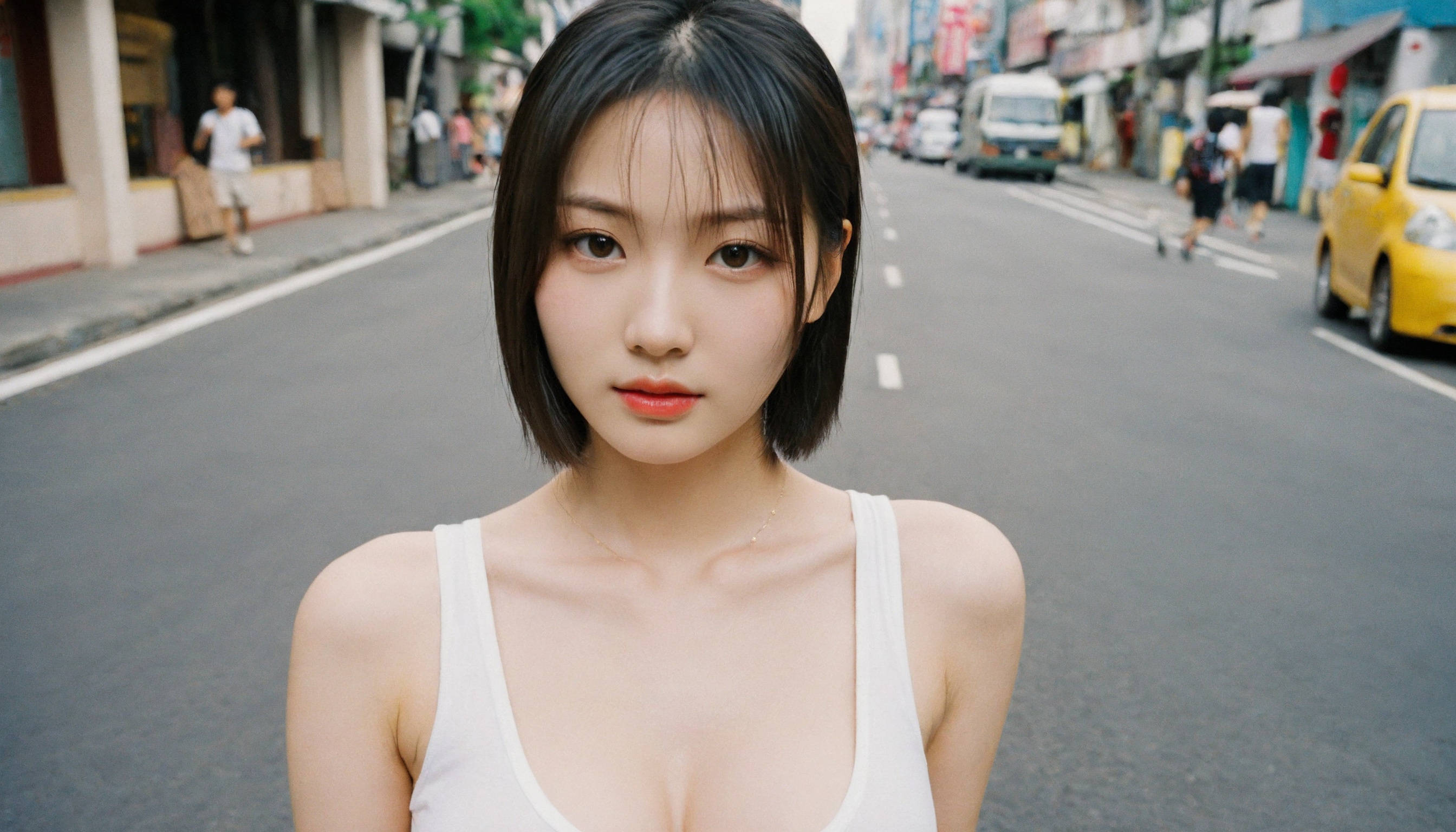 {"3": {"inputs": {"seed": 958649746814265, "steps": 32, "cfg": 5.75, "sampler_name": "dpmpp_2m", "scheduler": "karras", "denoise": 1.0, "model": ["27", 0], "positive": ["6", 0], "negative": ["7", 0], "latent_image": ["5", 0]}, "class_type": "KSampler"}, "4": {"inputs": {"ckpt_name": "helloworldxl.safetensors"}, "class_type": "CheckpointLoaderSimple"}, "5": {"inputs": {"width": 1344, "height": 768, "batch_size": 1}, "class_type": "EmptyLatentImage"}, "6": {"inputs": {"text": "20 year old girl, (taiwanese:1.05), (russian:1.03), (japanese:1.07), (blush:1.00), (seductive pose:0.98), (cute:1.13), (idol:0.96), (double eyelids:1.04), (slim:1.06), (beautiful eyes:1.10), (pale skin:0.99), (sexy lips:0.99), (temptress:1.07), (eyelashes:0.99), (seductive facial expression:0.98), (detailed face:1.07), (in a seductive pose:0.97), (large perky breasts:0.97), (cleavage:0.98), (thigh gap:1.05), (white tanktop:1.04), busy street, (RAW:1.06), (candid cinema:1.00), (textured skin:1.00), (detailed skin:1.08), (soft lighting:1.02), (portra:1.09), (skin fuzz:1.05), (natural looking skin:1.02), (film:1.00)", "clip": ["27", 1]}, "class_type": "CLIPTextEncode"}, "7": {"inputs": {"text": "(worst quality:1.08), (bad hands:1.13), (distorted:1.14), (watermark:1.13), (open mouth:1.06), (low resolution:1.14), (twisted:1.10)", "clip": ["27", 1]}, "class_type": "CLIPTextEncode"}, "8": {"inputs": {"samples": ["3", 0], "vae": ["4", 2]}, "class_type": "VAEDecode"}, "25": {"inputs": {"lora_name": "nudify_xl.safetensors", "strength_model": 0.17, "strength_clip": 0.12, "model": ["4", 0], "clip": ["4", 1]}, "class_type": "LoraLoader"}, "26": {"inputs": {"lora_name": "shirtlift_SDXL_v2.safetensors", "strength_model": 0.18, "strength_clip": 0.09, "model": ["25", 0], "clip": ["25", 1]}, "class_type": "LoraLoader"}, "27": {"inputs": {"lora_name": "PerfectEyesXL.safetensors", "strength_model": 0.06, "strength_clip": 0.18, "model": ["26", 0], "clip": ["26", 1]}, "class_type": "LoraLoader"}, "30": {"inputs": {"model_name": "4x_NMKD-Superscale-SP_178000_G.pth"}, "class_type": "UpscaleModelLoader"}, "31": {"inputs": {"upscale_model": ["30", 0], "image": ["8", 0]}, "class_type": "ImageUpscaleWithModel"}, "32": {"inputs": {"upscale_method": "lanczos", "scale_by": 0.5, "image": ["31", 0]}, "class_type": "ImageScaleBy"}, "33": {"inputs": {"pixels": ["32", 0], "vae": ["4", 2]}, "class_type": "VAEEncode"}, "34": {"inputs": {"seed": 958649746814265, "steps": 32, "cfg": 5.75, "sampler_name": "dpmpp_2m", "scheduler": "karras", "denoise": 0.3, "model": ["27", 0], "positive": ["6", 0], "negative": ["7", 0], "latent_image": ["33", 0]}, "class_type": "KSampler"}, "36": {"inputs": {"samples": ["34", 0], "vae": ["4", 2]}, "class_type": "VAEDecode"}, "39": {"inputs": {"filename_prefix": "comfyapi-1731865854956", "images": ["36", 0]}, "class_type": "SaveImage"}}