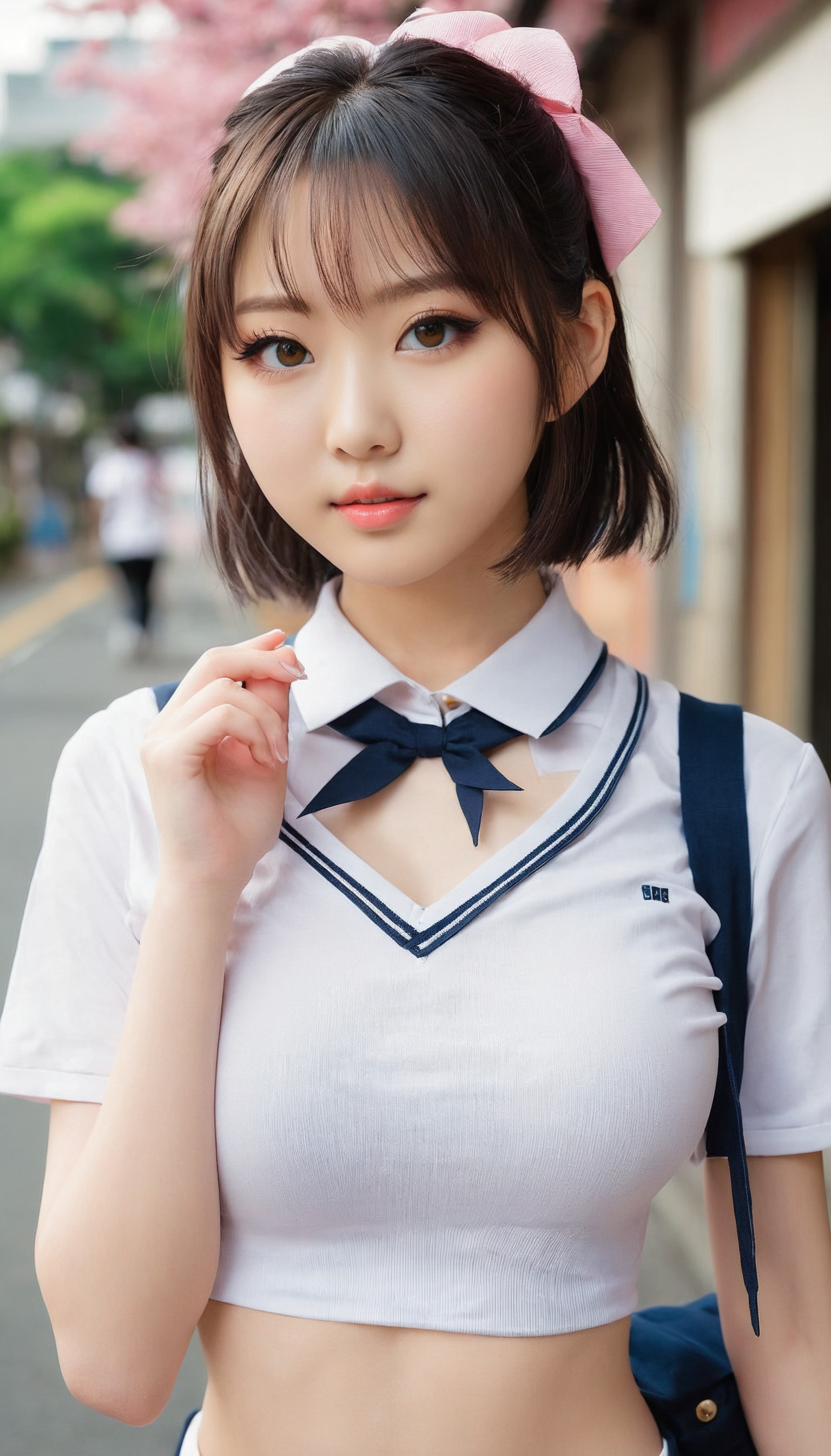 {"3": {"inputs": {"seed": 704713206641477, "steps": 32, "cfg": 5.54, "sampler_name": "dpmpp_2m", "scheduler": "karras", "denoise": 1.0, "model": ["27", 0], "positive": ["6", 0], "negative": ["7", 0], "latent_image": ["5", 0]}, "class_type": "KSampler"}, "4": {"inputs": {"ckpt_name": "juggernautxl.safetensors"}, "class_type": "CheckpointLoaderSimple"}, "5": {"inputs": {"width": 768, "height": 1344, "batch_size": 1}, "class_type": "EmptyLatentImage"}, "6": {"inputs": {"text": "19 year old girl, (japanese:1.01), (beautiful eyes:1.10), (seductive pose:0.96), (idol:1.07), (temptress:1.10), (blush:1.04), (seductive facial expression:0.97), (cute:1.03), (slim:0.95), (double eyelids:1.12), (pale skin:1.06), (eyelashes:1.12), (sexy lips:1.12), (detailed face:1.00), (in a seductive pose:1.05), (large perky breasts:1.08), (cleavage:1.00), (thigh gap:0.99), (school uniform:1.11), choker, busy street, (skin fuzz:1.09), (natural looking skin:1.06), (detailed skin:1.03), (soft lighting:1.03), (RAW:1.03), (film:1.00), (candid cinema:1.03), (portra:1.03), (textured skin:1.03)", "clip": ["27", 1]}, "class_type": "CLIPTextEncode"}, "7": {"inputs": {"text": "(bad hands:1.13), (twisted:1.13), (low resolution:1.10), (open mouth:1.08), (watermark:1.06), (worst quality:1.14), (distorted:1.09)", "clip": ["27", 1]}, "class_type": "CLIPTextEncode"}, "8": {"inputs": {"samples": ["3", 0], "vae": ["4", 2]}, "class_type": "VAEDecode"}, "25": {"inputs": {"lora_name": "nudify_xl.safetensors", "strength_model": 0.02, "strength_clip": 0.0, "model": ["4", 0], "clip": ["4", 1]}, "class_type": "LoraLoader"}, "26": {"inputs": {"lora_name": "shirtlift_SDXL_v2.safetensors", "strength_model": 0.07, "strength_clip": 0.18, "model": ["25", 0], "clip": ["25", 1]}, "class_type": "LoraLoader"}, "27": {"inputs": {"lora_name": "PerfectEyesXL.safetensors", "strength_model": 0.1, "strength_clip": 0.0, "model": ["26", 0], "clip": ["26", 1]}, "class_type": "LoraLoader"}, "30": {"inputs": {"model_name": "4x_NMKD-Superscale-SP_178000_G.pth"}, "class_type": "UpscaleModelLoader"}, "31": {"inputs": {"upscale_model": ["30", 0], "image": ["8", 0]}, "class_type": "ImageUpscaleWithModel"}, "32": {"inputs": {"upscale_method": "lanczos", "scale_by": 0.5, "image": ["31", 0]}, "class_type": "ImageScaleBy"}, "33": {"inputs": {"pixels": ["32", 0], "vae": ["4", 2]}, "class_type": "VAEEncode"}, "34": {"inputs": {"seed": 704713206641477, "steps": 32, "cfg": 5.54, "sampler_name": "dpmpp_2m", "scheduler": "karras", "denoise": 0.3, "model": ["27", 0], "positive": ["6", 0], "negative": ["7", 0], "latent_image": ["33", 0]}, "class_type": "KSampler"}, "36": {"inputs": {"samples": ["34", 0], "vae": ["4", 2]}, "class_type": "VAEDecode"}, "39": {"inputs": {"filename_prefix": "comfyapi-1716872602962", "images": ["36", 0]}, "class_type": "SaveImage"}}