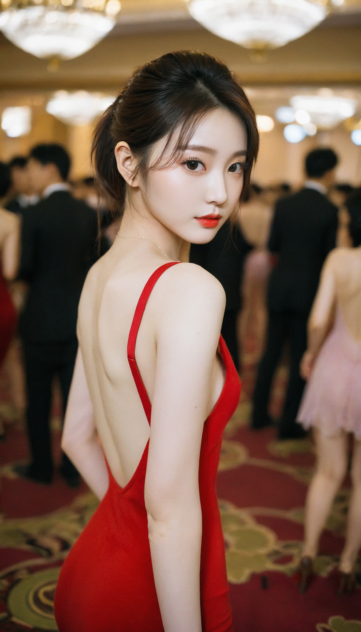 {"3": {"inputs": {"seed": 271903197444231, "steps": 32, "cfg": 6.83, "sampler_name": "dpmpp_2m", "scheduler": "karras", "denoise": 1.0, "model": ["27", 0], "positive": ["6", 0], "negative": ["7", 0], "latent_image": ["5", 0]}, "class_type": "KSampler"}, "4": {"inputs": {"ckpt_name": "helloworldxl.safetensors"}, "class_type": "CheckpointLoaderSimple"}, "5": {"inputs": {"width": 768, "height": 1344, "batch_size": 1}, "class_type": "EmptyLatentImage"}, "6": {"inputs": {"text": "23 year old girl, (ukrainian:1.02), (korean:1.03), (beautiful eyes:1.00), (detailed face:1.00), (seductive facial expression:1.01), (pale skin:0.97), (seductive pose:1.13), (double eyelids:1.00), (temptress:1.06), (blush:1.08), (eyelashes:1.13), (idol:1.08), (slim:1.12), (cute:1.02), (perky ass:1.05), (exposed ass:1.00), (looking back:1.06), (sexy ass:1.12), (thigh gap:1.07), (wearing a low-cut red dress:1.08) at a ballroom, (candid cinema:1.05), (skin fuzz:1.03), (natural looking skin:1.06), (film:1.06), (portra:1.00), (soft lighting:1.05), (detailed skin:1.09), (textured skin:1.08), (RAW:1.07)", "clip": ["27", 1]}, "class_type": "CLIPTextEncode"}, "7": {"inputs": {"text": "(open mouth:1.06), (low resolution:1.08), (bad hands:1.14), (distorted:1.10), (twisted:1.06), (worst quality:1.13), (watermark:1.13)", "clip": ["27", 1]}, "class_type": "CLIPTextEncode"}, "8": {"inputs": {"samples": ["3", 0], "vae": ["4", 2]}, "class_type": "VAEDecode"}, "25": {"inputs": {"lora_name": "nudify_xl.safetensors", "strength_model": 0.39, "strength_clip": 0.13, "model": ["4", 0], "clip": ["4", 1]}, "class_type": "LoraLoader"}, "26": {"inputs": {"lora_name": "shirtlift_SDXL_v2.safetensors", "strength_model": 0.15, "strength_clip": 0.13, "model": ["25", 0], "clip": ["25", 1]}, "class_type": "LoraLoader"}, "27": {"inputs": {"lora_name": "PerfectEyesXL.safetensors", "strength_model": 0.05, "strength_clip": 0.13, "model": ["26", 0], "clip": ["26", 1]}, "class_type": "LoraLoader"}, "30": {"inputs": {"model_name": "4x_NMKD-Superscale-SP_178000_G.pth"}, "class_type": "UpscaleModelLoader"}, "31": {"inputs": {"upscale_model": ["30", 0], "image": ["8", 0]}, "class_type": "ImageUpscaleWithModel"}, "32": {"inputs": {"upscale_method": "lanczos", "scale_by": 0.5, "image": ["31", 0]}, "class_type": "ImageScaleBy"}, "33": {"inputs": {"pixels": ["32", 0], "vae": ["4", 2]}, "class_type": "VAEEncode"}, "34": {"inputs": {"seed": 271903197444231, "steps": 32, "cfg": 6.83, "sampler_name": "dpmpp_2m", "scheduler": "karras", "denoise": 0.3, "model": ["27", 0], "positive": ["6", 0], "negative": ["7", 0], "latent_image": ["33", 0]}, "class_type": "KSampler"}, "36": {"inputs": {"samples": ["34", 0], "vae": ["4", 2]}, "class_type": "VAEDecode"}, "39": {"inputs": {"filename_prefix": "comfyapi-1716777338504", "images": ["36", 0]}, "class_type": "SaveImage"}}