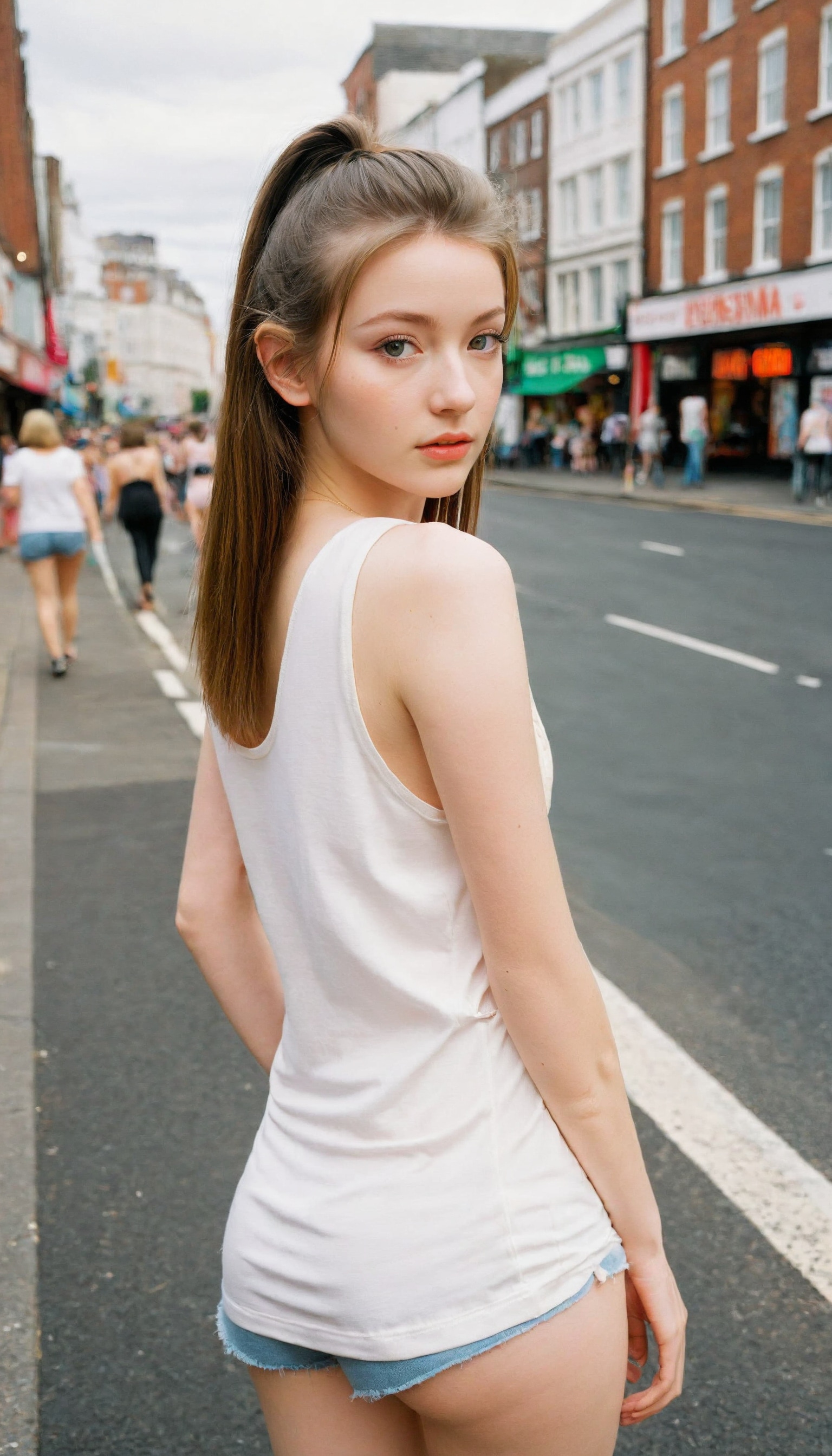 {"3": {"inputs": {"seed": 874796125081322, "steps": 64, "cfg": 7.26, "sampler_name": "dpmpp_2m", "scheduler": "karras", "denoise": 1.0, "model": ["27", 0], "positive": ["6", 0], "negative": ["7", 0], "latent_image": ["5", 0]}, "class_type": "KSampler"}, "4": {"inputs": {"ckpt_name": "leosamsHelloworldSDXL_helloworldSDXL32DPO.safetensors"}, "class_type": "CheckpointLoaderSimple"}, "5": {"inputs": {"width": 768, "height": 1344, "batch_size": 1}, "class_type": "EmptyLatentImage"}, "6": {"inputs": {"text": "22 year old girl, (irish:0.98), (seductive facial expression:1.10), (detailed face:0.96), (cute:1.02), (eyelashes:1.11), (temptress:1.03), (beautiful eyes:0.96), (pale skin:1.04), (idol:0.98), (double eyelids:0.98), (slim:1.10), (blush:1.07), (sexy lips:0.99), (perky ass:1.05), (exposed ass:1.09), (looking back:0.99), (sexy ass:0.99), (thigh gap:1.07), (white tanktop:1.10), busy street, (RAW:1.01), (candid cinema:1.04), (skin fuzz:1.01), (portra:1.02), (natural looking skin:1.08), (soft lighting:1.04), (detailed skin:1.06), (film:1.08), (textured skin:1.02)", "clip": ["27", 1]}, "class_type": "CLIPTextEncode"}, "7": {"inputs": {"text": "(watermark:1.06), (low resolution:1.09), (open mouth:1.08), (worst quality:1.10), (distorted:1.09), (bad hands:1.10), (twisted:1.05)", "clip": ["27", 1]}, "class_type": "CLIPTextEncode"}, "8": {"inputs": {"samples": ["3", 0], "vae": ["4", 2]}, "class_type": "VAEDecode"}, "25": {"inputs": {"lora_name": "nudify_xl.safetensors", "strength_model": 0.11, "strength_clip": 0.17, "model": ["4", 0], "clip": ["4", 1]}, "class_type": "LoraLoader"}, "26": {"inputs": {"lora_name": "shirtlift_SDXL_v2.safetensors", "strength_model": 0.16, "strength_clip": 0.03, "model": ["25", 0], "clip": ["25", 1]}, "class_type": "LoraLoader"}, "27": {"inputs": {"lora_name": "PerfectEyesXL.safetensors", "strength_model": 0.15, "strength_clip": 0.04, "model": ["26", 0], "clip": ["26", 1]}, "class_type": "LoraLoader"}, "30": {"inputs": {"model_name": "4x_NMKD-Superscale-SP_178000_G.pth"}, "class_type": "UpscaleModelLoader"}, "31": {"inputs": {"upscale_model": ["30", 0], "image": ["8", 0]}, "class_type": "ImageUpscaleWithModel"}, "32": {"inputs": {"upscale_method": "lanczos", "scale_by": 0.5, "image": ["31", 0]}, "class_type": "ImageScaleBy"}, "33": {"inputs": {"pixels": ["32", 0], "vae": ["4", 2]}, "class_type": "VAEEncode"}, "34": {"inputs": {"seed": 874796125081322, "steps": 64, "cfg": 7.26, "sampler_name": "dpmpp_2m", "scheduler": "karras", "denoise": 0.3, "model": ["27", 0], "positive": ["6", 0], "negative": ["7", 0], "latent_image": ["33", 0]}, "class_type": "KSampler"}, "36": {"inputs": {"samples": ["34", 0], "vae": ["4", 2]}, "class_type": "VAEDecode"}, "39": {"inputs": {"filename_prefix": "comfyapi-1707968890464", "images": ["36", 0]}, "class_type": "SaveImage"}}