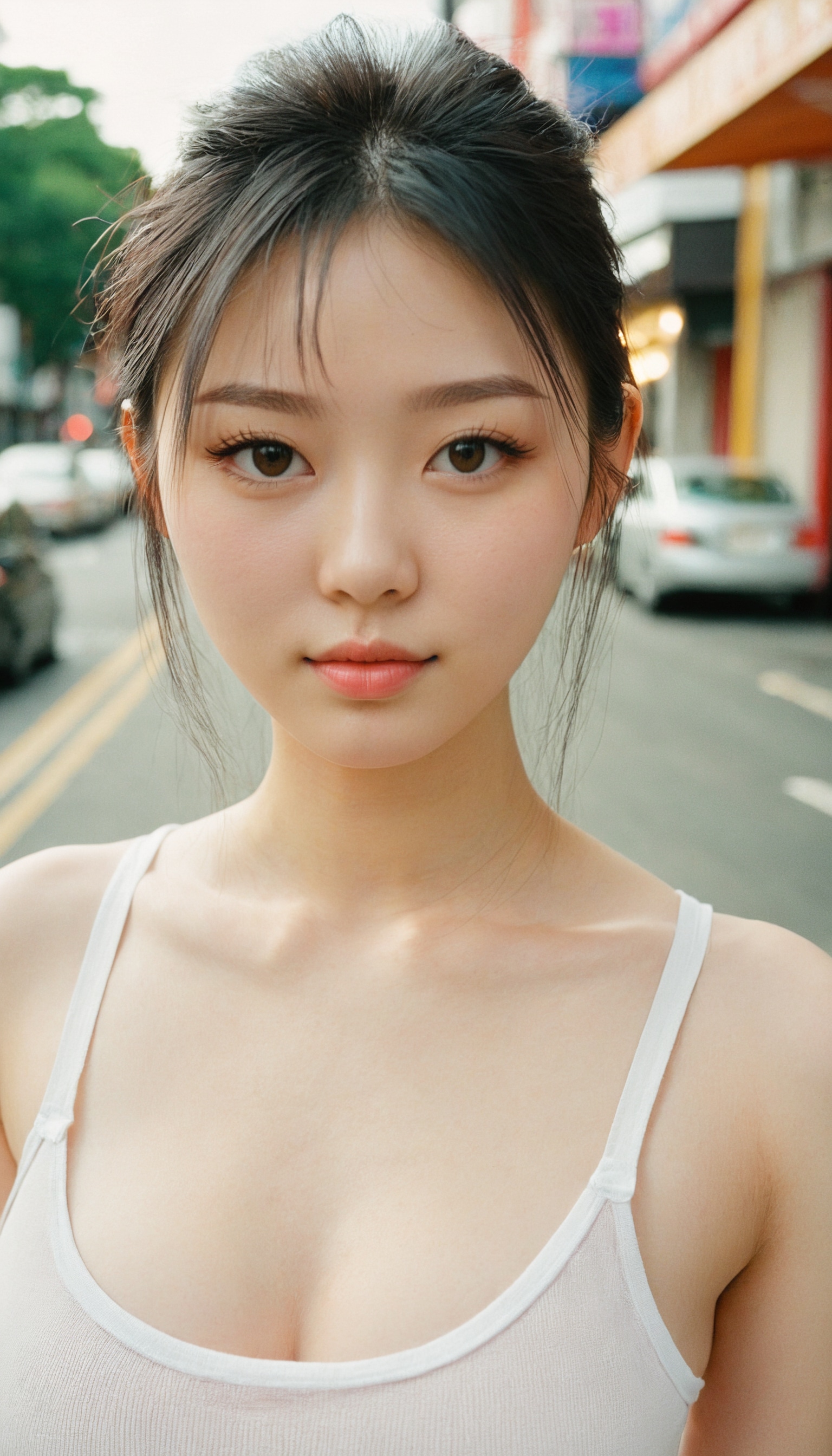 {"3": {"inputs": {"seed": 803803002144163, "steps": 32, "cfg": 7.24, "sampler_name": "dpmpp_2m", "scheduler": "karras", "denoise": 1.0, "model": ["27", 0], "positive": ["6", 0], "negative": ["7", 0], "latent_image": ["5", 0]}, "class_type": "KSampler"}, "4": {"inputs": {"ckpt_name": "juggernautxl.safetensors"}, "class_type": "CheckpointLoaderSimple"}, "5": {"inputs": {"width": 768, "height": 1344, "batch_size": 1}, "class_type": "EmptyLatentImage"}, "6": {"inputs": {"text": "18 year old girl, (irish:0.99), (taiwanese:1.14), (pale skin:1.01), (beautiful eyes:1.03), (double eyelids:0.97), (cute:1.14), (detailed face:0.95), (slim:1.11), (blush:1.01), (idol:1.13), (eyelashes:1.04), (seductive facial expression:0.95), (seductive pose:0.97), (sexy lips:1.06), (temptress:1.01), (in a seductive pose:1.06), (large perky breasts:0.99), (cleavage:0.98), (thigh gap:0.97), (white tanktop:1.04), busy street, (textured skin:1.00), (candid cinema:1.06), (film:1.07), (natural looking skin:1.03), (detailed skin:1.06), (skin fuzz:1.09), (soft lighting:1.08), (portra:1.01), (RAW:1.03)", "clip": ["27", 1]}, "class_type": "CLIPTextEncode"}, "7": {"inputs": {"text": "(open mouth:1.12), (twisted:1.06), (low resolution:1.13), (distorted:1.05), (worst quality:1.08), (watermark:1.10), (bad hands:1.07)", "clip": ["27", 1]}, "class_type": "CLIPTextEncode"}, "8": {"inputs": {"samples": ["3", 0], "vae": ["4", 2]}, "class_type": "VAEDecode"}, "25": {"inputs": {"lora_name": "nudify_xl.safetensors", "strength_model": 0.32, "strength_clip": 0.28, "model": ["4", 0], "clip": ["4", 1]}, "class_type": "LoraLoader"}, "26": {"inputs": {"lora_name": "shirtlift_SDXL_v2.safetensors", "strength_model": 0.0, "strength_clip": 0.05, "model": ["25", 0], "clip": ["25", 1]}, "class_type": "LoraLoader"}, "27": {"inputs": {"lora_name": "PerfectEyesXL.safetensors", "strength_model": 0.04, "strength_clip": 0.15, "model": ["26", 0], "clip": ["26", 1]}, "class_type": "LoraLoader"}, "30": {"inputs": {"model_name": "4x_NMKD-Superscale-SP_178000_G.pth"}, "class_type": "UpscaleModelLoader"}, "31": {"inputs": {"upscale_model": ["30", 0], "image": ["8", 0]}, "class_type": "ImageUpscaleWithModel"}, "32": {"inputs": {"upscale_method": "lanczos", "scale_by": 0.5, "image": ["31", 0]}, "class_type": "ImageScaleBy"}, "33": {"inputs": {"pixels": ["32", 0], "vae": ["4", 2]}, "class_type": "VAEEncode"}, "34": {"inputs": {"seed": 803803002144163, "steps": 32, "cfg": 7.24, "sampler_name": "dpmpp_2m", "scheduler": "karras", "denoise": 0.3, "model": ["27", 0], "positive": ["6", 0], "negative": ["7", 0], "latent_image": ["33", 0]}, "class_type": "KSampler"}, "36": {"inputs": {"samples": ["34", 0], "vae": ["4", 2]}, "class_type": "VAEDecode"}, "39": {"inputs": {"filename_prefix": "comfyapi-1725419991398", "images": ["36", 0]}, "class_type": "SaveImage"}}