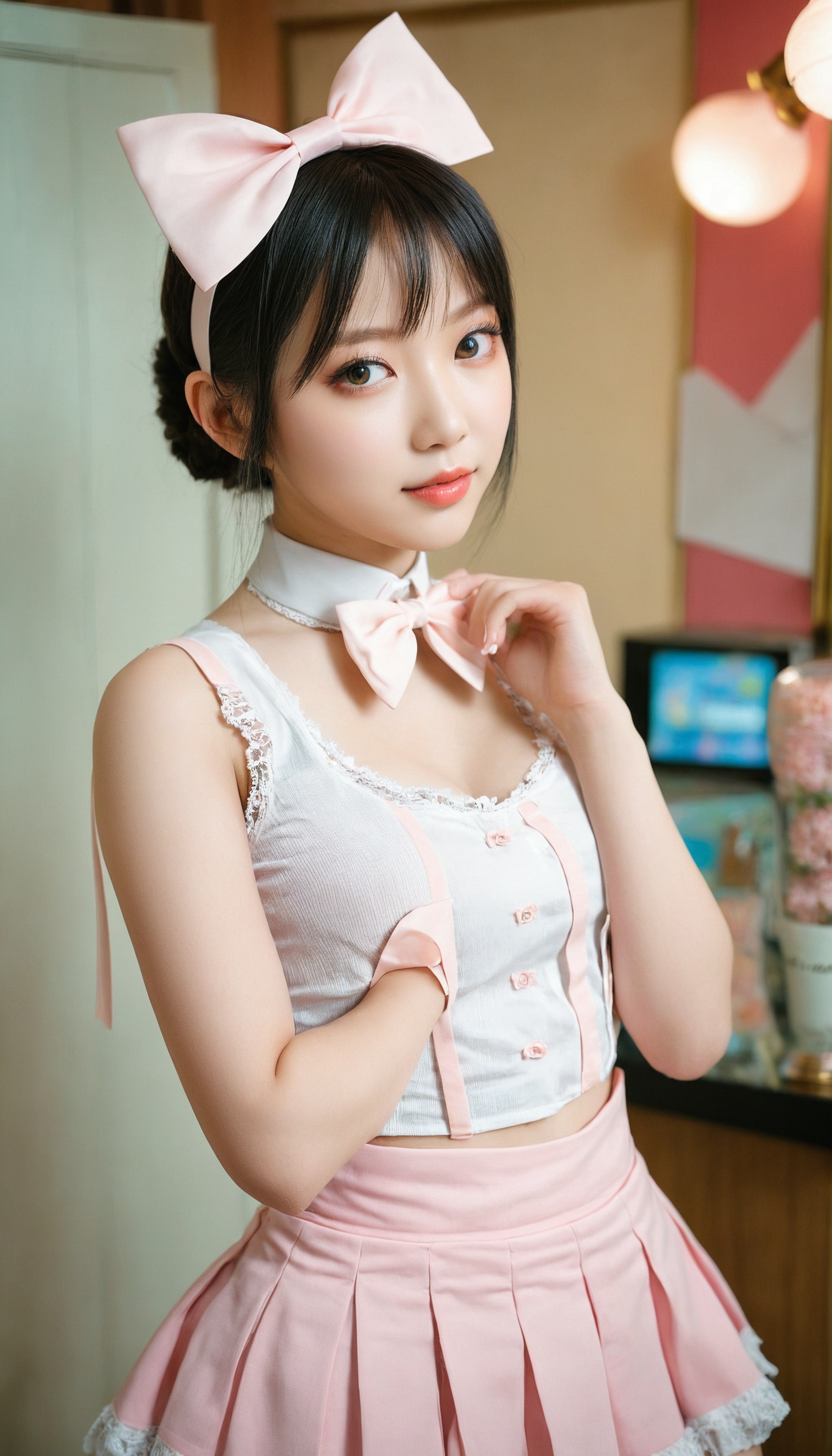 {"3": {"inputs": {"seed": 803665030908299, "steps": 64, "cfg": 5.3, "sampler_name": "dpmpp_2m", "scheduler": "karras", "denoise": 1.0, "model": ["27", 0], "positive": ["6", 0], "negative": ["7", 0], "latent_image": ["5", 0]}, "class_type": "KSampler"}, "4": {"inputs": {"ckpt_name": "juggernautxl.safetensors"}, "class_type": "CheckpointLoaderSimple"}, "5": {"inputs": {"width": 768, "height": 1344, "batch_size": 1}, "class_type": "EmptyLatentImage"}, "6": {"inputs": {"text": "18 year old girl, (taiwanese:1.11), (russian:0.99), (beautiful eyes:1.12), (idol:1.07), (pale skin:0.95), (detailed face:0.95), (seductive pose:1.02), (double eyelids:1.11), (sexy lips:1.01), (temptress:1.13), (cute:1.08), (blush:1.10), (seductive facial expression:1.08), (slim:1.08), (eyelashes:0.97), (perky ass:1.00), (exposed ass:0.99), (looking back:0.98), (sexy ass:1.10), (thigh gap:1.05), in a (skimpy maid costume:0.95) working at a maid cafe, choker, bowtie, headband, pleated skirt, (candid cinema:1.09), (soft lighting:1.02), (natural looking skin:1.08), (skin fuzz:1.08), (textured skin:1.09), (film:1.04), (detailed skin:1.09), (portra:1.05), (RAW:1.01)", "clip": ["27", 1]}, "class_type": "CLIPTextEncode"}, "7": {"inputs": {"text": "(watermark:1.08), (bad hands:1.05), (open mouth:1.07), (worst quality:1.14), (twisted:1.06), (low resolution:1.07), (distorted:1.07)", "clip": ["27", 1]}, "class_type": "CLIPTextEncode"}, "8": {"inputs": {"samples": ["3", 0], "vae": ["4", 2]}, "class_type": "VAEDecode"}, "25": {"inputs": {"lora_name": "nudify_xl.safetensors", "strength_model": 0.0, "strength_clip": 0.36, "model": ["4", 0], "clip": ["4", 1]}, "class_type": "LoraLoader"}, "26": {"inputs": {"lora_name": "shirtlift_SDXL_v2.safetensors", "strength_model": 0.15, "strength_clip": 0.05, "model": ["25", 0], "clip": ["25", 1]}, "class_type": "LoraLoader"}, "27": {"inputs": {"lora_name": "PerfectEyesXL.safetensors", "strength_model": 0.06, "strength_clip": 0.14, "model": ["26", 0], "clip": ["26", 1]}, "class_type": "LoraLoader"}, "30": {"inputs": {"model_name": "4x_NMKD-Superscale-SP_178000_G.pth"}, "class_type": "UpscaleModelLoader"}, "31": {"inputs": {"upscale_model": ["30", 0], "image": ["8", 0]}, "class_type": "ImageUpscaleWithModel"}, "32": {"inputs": {"upscale_method": "lanczos", "scale_by": 0.5, "image": ["31", 0]}, "class_type": "ImageScaleBy"}, "33": {"inputs": {"pixels": ["32", 0], "vae": ["4", 2]}, "class_type": "VAEEncode"}, "34": {"inputs": {"seed": 803665030908299, "steps": 64, "cfg": 5.3, "sampler_name": "dpmpp_2m", "scheduler": "karras", "denoise": 0.3, "model": ["27", 0], "positive": ["6", 0], "negative": ["7", 0], "latent_image": ["33", 0]}, "class_type": "KSampler"}, "36": {"inputs": {"samples": ["34", 0], "vae": ["4", 2]}, "class_type": "VAEDecode"}, "39": {"inputs": {"filename_prefix": "comfyapi-1735683934608", "images": ["36", 0]}, "class_type": "SaveImage"}}
