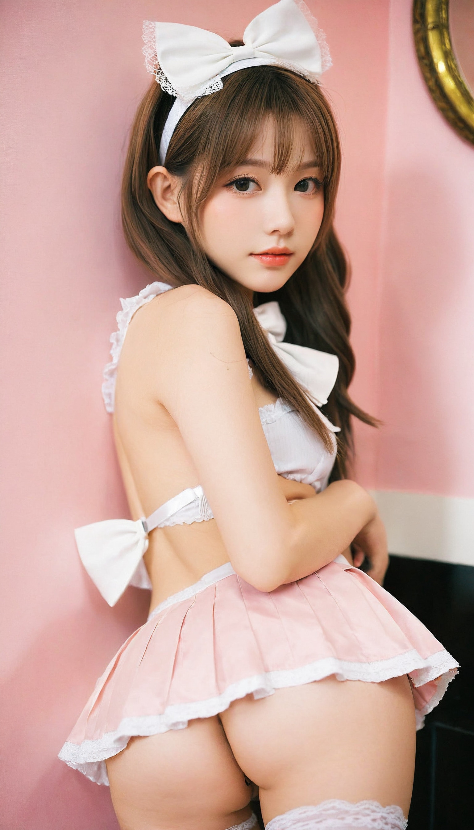 {"3": {"inputs": {"seed": 704782103692940, "steps": 32, "cfg": 7.41, "sampler_name": "dpmpp_2m", "scheduler": "karras", "denoise": 1.0, "model": ["27", 0], "positive": ["6", 0], "negative": ["7", 0], "latent_image": ["5", 0]}, "class_type": "KSampler"}, "4": {"inputs": {"ckpt_name": "leosamsHelloworldSDXL_helloworldSDXL32DPO.safetensors"}, "class_type": "CheckpointLoaderSimple"}, "5": {"inputs": {"width": 768, "height": 1344, "batch_size": 1}, "class_type": "EmptyLatentImage"}, "6": {"inputs": {"text": "25 year old girl, (beautiful eyes:0.95), (eyelashes:1.03), (slim:1.02), (blush:1.13), (cute:1.00), (double eyelids:1.02), (seductive facial expression:1.05), (detailed face:1.12), (seductive pose:1.12), (pale skin:1.05), (idol:1.13), (sexy lips:1.04), (perky ass:0.96), (exposed ass:1.13), (looking back:1.04), (sexy ass:0.99), (thigh gap:1.09), in a (skimpy maid costume:1.03) working at a maid cafe, choker, bowtie, headband, pleated skirt, (candid cinema:1.02), (RAW:1.05), (skin fuzz:1.04), (film:1.01), (detailed skin:1.00), (soft lighting:1.02), (portra:1.03), (natural looking skin:1.09), (textured skin:1.01)", "clip": ["27", 1]}, "class_type": "CLIPTextEncode"}, "7": {"inputs": {"text": "(open mouth:1.11), (bad hands:1.12), (low resolution:1.14), (watermark:1.13), (twisted:1.08), (worst quality:1.07), (distorted:1.10)", "clip": ["27", 1]}, "class_type": "CLIPTextEncode"}, "8": {"inputs": {"samples": ["3", 0], "vae": ["4", 2]}, "class_type": "VAEDecode"}, "25": {"inputs": {"lora_name": "nudify_xl.safetensors", "strength_model": 0.23, "strength_clip": 0.09, "model": ["4", 0], "clip": ["4", 1]}, "class_type": "LoraLoader"}, "26": {"inputs": {"lora_name": "shirtlift_SDXL_v2.safetensors", "strength_model": 0.19, "strength_clip": 0.08, "model": ["25", 0], "clip": ["25", 1]}, "class_type": "LoraLoader"}, "27": {"inputs": {"lora_name": "PerfectEyesXL.safetensors", "strength_model": 0.08, "strength_clip": 0.09, "model": ["26", 0], "clip": ["26", 1]}, "class_type": "LoraLoader"}, "30": {"inputs": {"model_name": "4x_NMKD-Superscale-SP_178000_G.pth"}, "class_type": "UpscaleModelLoader"}, "31": {"inputs": {"upscale_model": ["30", 0], "image": ["8", 0]}, "class_type": "ImageUpscaleWithModel"}, "32": {"inputs": {"upscale_method": "lanczos", "scale_by": 0.5, "image": ["31", 0]}, "class_type": "ImageScaleBy"}, "33": {"inputs": {"pixels": ["32", 0], "vae": ["4", 2]}, "class_type": "VAEEncode"}, "34": {"inputs": {"seed": 704782103692940, "steps": 32, "cfg": 7.41, "sampler_name": "dpmpp_2m", "scheduler": "karras", "denoise": 0.3, "model": ["27", 0], "positive": ["6", 0], "negative": ["7", 0], "latent_image": ["33", 0]}, "class_type": "KSampler"}, "36": {"inputs": {"samples": ["34", 0], "vae": ["4", 2]}, "class_type": "VAEDecode"}, "39": {"inputs": {"filename_prefix": "comfyapi-1708033309062", "images": ["36", 0]}, "class_type": "SaveImage"}}