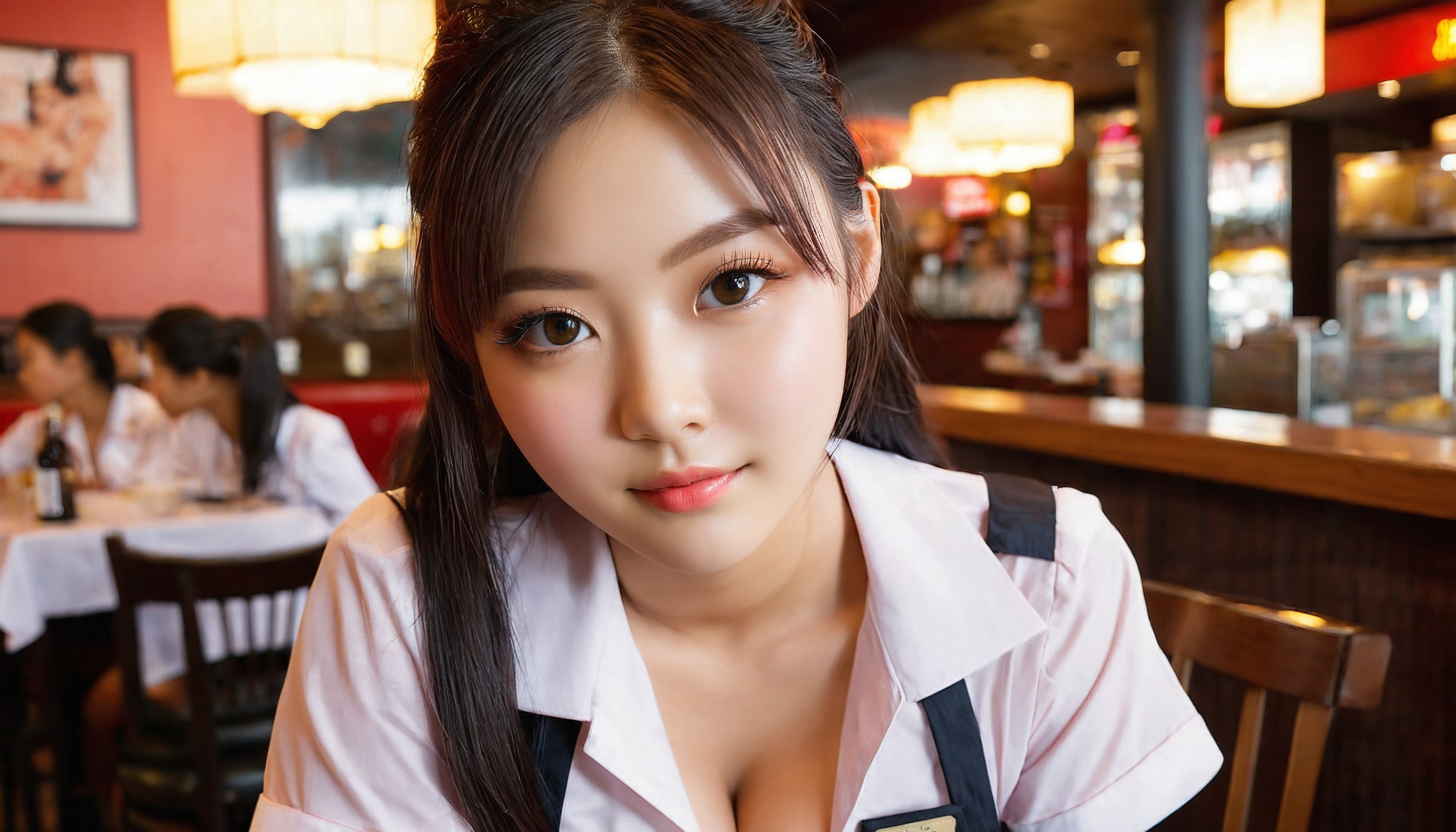 {"3": {"inputs": {"seed": 757331708833692, "steps": 64, "cfg": 6.65, "sampler_name": "dpmpp_2m", "scheduler": "karras", "denoise": 1.0, "model": ["27", 0], "positive": ["6", 0], "negative": ["7", 0], "latent_image": ["5", 0]}, "class_type": "KSampler"}, "4": {"inputs": {"ckpt_name": "juggernautxl.safetensors"}, "class_type": "CheckpointLoaderSimple"}, "5": {"inputs": {"width": 1344, "height": 768, "batch_size": 1}, "class_type": "EmptyLatentImage"}, "6": {"inputs": {"text": "24 year old girl, (eyelashes:1.01), (blush:1.03), (idol:1.10), (detailed face:0.95), (temptress:1.08), (seductive pose:1.08), (seductive facial expression:1.04), (cute:1.06), (double eyelids:1.08), (beautiful eyes:1.00), (sexy lips:1.08), (in a seductive pose:1.01), (large perky breasts:1.05), (cleavage:1.05), (thigh gap:1.02), (a waitress in uniform:1.03) working at a restaurant, (portra:1.06), (RAW:1.07), (soft lighting:1.01), (natural looking skin:1.01), (film:1.06), (detailed skin:1.01), (candid cinema:1.02), (textured skin:1.05), (skin fuzz:1.03)", "clip": ["27", 1]}, "class_type": "CLIPTextEncode"}, "7": {"inputs": {"text": "(distorted:1.10), (bad hands:1.13), (watermark:1.12), (worst quality:1.05), (low resolution:1.07), (twisted:1.13), (open mouth:1.14)", "clip": ["27", 1]}, "class_type": "CLIPTextEncode"}, "8": {"inputs": {"samples": ["3", 0], "vae": ["4", 2]}, "class_type": "VAEDecode"}, "25": {"inputs": {"lora_name": "nudify_xl.safetensors", "strength_model": 0.04, "strength_clip": 0.3, "model": ["4", 0], "clip": ["4", 1]}, "class_type": "LoraLoader"}, "26": {"inputs": {"lora_name": "shirtlift_SDXL_v2.safetensors", "strength_model": 0.17, "strength_clip": 0.14, "model": ["25", 0], "clip": ["25", 1]}, "class_type": "LoraLoader"}, "27": {"inputs": {"lora_name": "PerfectEyesXL.safetensors", "strength_model": 0.03, "strength_clip": 0.02, "model": ["26", 0], "clip": ["26", 1]}, "class_type": "LoraLoader"}, "30": {"inputs": {"model_name": "4x_NMKD-Superscale-SP_178000_G.pth"}, "class_type": "UpscaleModelLoader"}, "31": {"inputs": {"upscale_model": ["30", 0], "image": ["8", 0]}, "class_type": "ImageUpscaleWithModel"}, "32": {"inputs": {"upscale_method": "lanczos", "scale_by": 0.5, "image": ["31", 0]}, "class_type": "ImageScaleBy"}, "33": {"inputs": {"pixels": ["32", 0], "vae": ["4", 2]}, "class_type": "VAEEncode"}, "34": {"inputs": {"seed": 757331708833692, "steps": 64, "cfg": 6.65, "sampler_name": "dpmpp_2m", "scheduler": "karras", "denoise": 0.3, "model": ["27", 0], "positive": ["6", 0], "negative": ["7", 0], "latent_image": ["33", 0]}, "class_type": "KSampler"}, "36": {"inputs": {"samples": ["34", 0], "vae": ["4", 2]}, "class_type": "VAEDecode"}, "39": {"inputs": {"filename_prefix": "comfyapi-1716055813265", "images": ["36", 0]}, "class_type": "SaveImage"}}