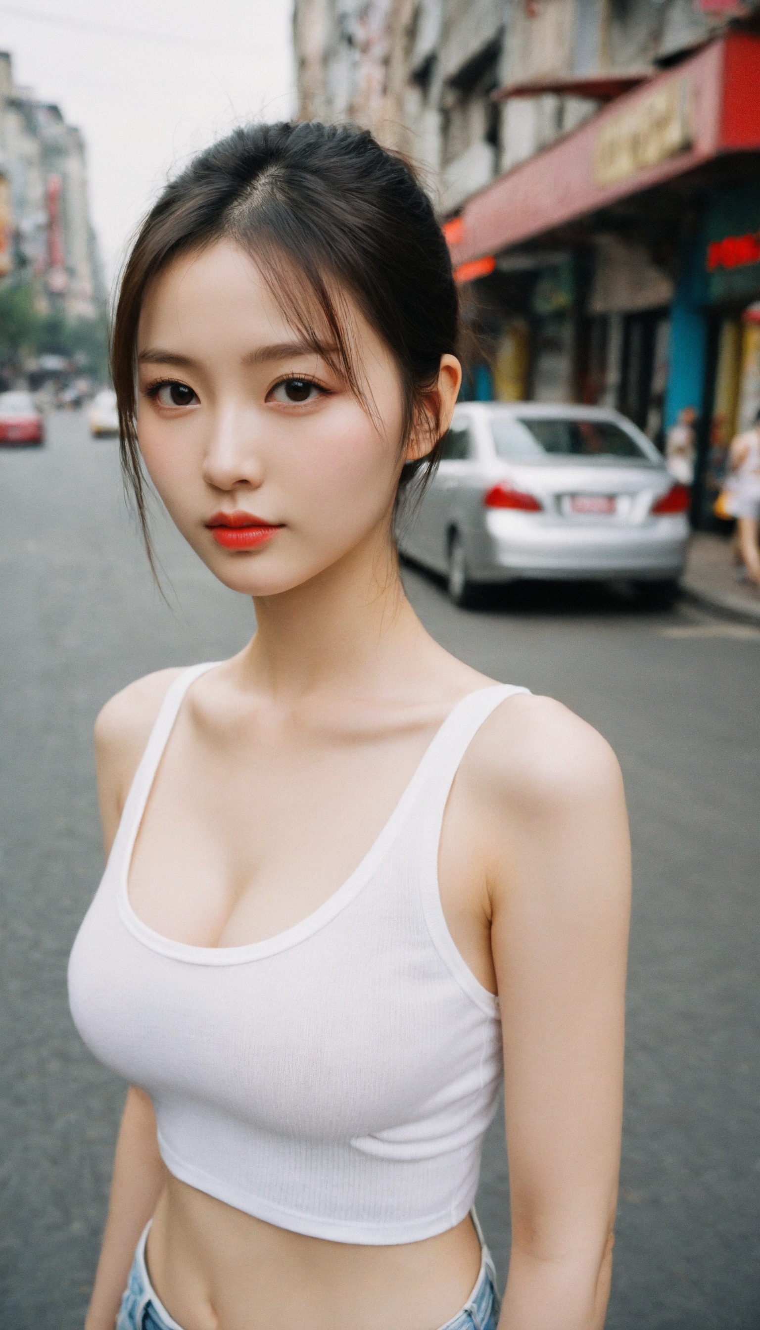 {"3": {"inputs": {"seed": 359109398797797, "steps": 64, "cfg": 5.25, "sampler_name": "dpmpp_2m", "scheduler": "karras", "denoise": 1.0, "model": ["27", 0], "positive": ["6", 0], "negative": ["7", 0], "latent_image": ["5", 0]}, "class_type": "KSampler"}, "4": {"inputs": {"ckpt_name": "helloworldxl.safetensors"}, "class_type": "CheckpointLoaderSimple"}, "5": {"inputs": {"width": 768, "height": 1344, "batch_size": 1}, "class_type": "EmptyLatentImage"}, "6": {"inputs": {"text": "19 year old girl, (chinese:1.13), (ukrainian:1.01), (cute:0.95), (blush:0.95), (eyelashes:1.10), (seductive facial expression:1.00), (double eyelids:0.99), (sexy lips:0.95), (pale skin:1.00), (beautiful eyes:1.07), (idol:1.07), (temptress:0.97), (slim:0.98), (seductive pose:0.95), (detailed face:1.03), (in a seductive pose:1.01), (large perky breasts:0.96), (cleavage:1.12), (thigh gap:1.02), (white tanktop:1.07), busy street, (candid cinema:1.01), (detailed skin:1.01), (soft lighting:1.09), (textured skin:1.03), (portra:1.05), (RAW:1.00), (film:1.06), (natural looking skin:1.02), (skin fuzz:1.04)", "clip": ["27", 1]}, "class_type": "CLIPTextEncode"}, "7": {"inputs": {"text": "(distorted:1.12), (low resolution:1.11), (twisted:1.10), (watermark:1.12), (open mouth:1.10), (bad hands:1.05), (worst quality:1.07)", "clip": ["27", 1]}, "class_type": "CLIPTextEncode"}, "8": {"inputs": {"samples": ["3", 0], "vae": ["4", 2]}, "class_type": "VAEDecode"}, "25": {"inputs": {"lora_name": "nudify_xl.safetensors", "strength_model": 0.2, "strength_clip": 0.05, "model": ["4", 0], "clip": ["4", 1]}, "class_type": "LoraLoader"}, "26": {"inputs": {"lora_name": "shirtlift_SDXL_v2.safetensors", "strength_model": 0.09, "strength_clip": 0.01, "model": ["25", 0], "clip": ["25", 1]}, "class_type": "LoraLoader"}, "27": {"inputs": {"lora_name": "PerfectEyesXL.safetensors", "strength_model": 0.0, "strength_clip": 0.03, "model": ["26", 0], "clip": ["26", 1]}, "class_type": "LoraLoader"}, "30": {"inputs": {"model_name": "4x_NMKD-Superscale-SP_178000_G.pth"}, "class_type": "UpscaleModelLoader"}, "31": {"inputs": {"upscale_model": ["30", 0], "image": ["8", 0]}, "class_type": "ImageUpscaleWithModel"}, "32": {"inputs": {"upscale_method": "lanczos", "scale_by": 0.5, "image": ["31", 0]}, "class_type": "ImageScaleBy"}, "33": {"inputs": {"pixels": ["32", 0], "vae": ["4", 2]}, "class_type": "VAEEncode"}, "34": {"inputs": {"seed": 359109398797797, "steps": 64, "cfg": 5.25, "sampler_name": "dpmpp_2m", "scheduler": "karras", "denoise": 0.3, "model": ["27", 0], "positive": ["6", 0], "negative": ["7", 0], "latent_image": ["33", 0]}, "class_type": "KSampler"}, "36": {"inputs": {"samples": ["34", 0], "vae": ["4", 2]}, "class_type": "VAEDecode"}, "39": {"inputs": {"filename_prefix": "comfyapi-1726458101865", "images": ["36", 0]}, "class_type": "SaveImage"}}