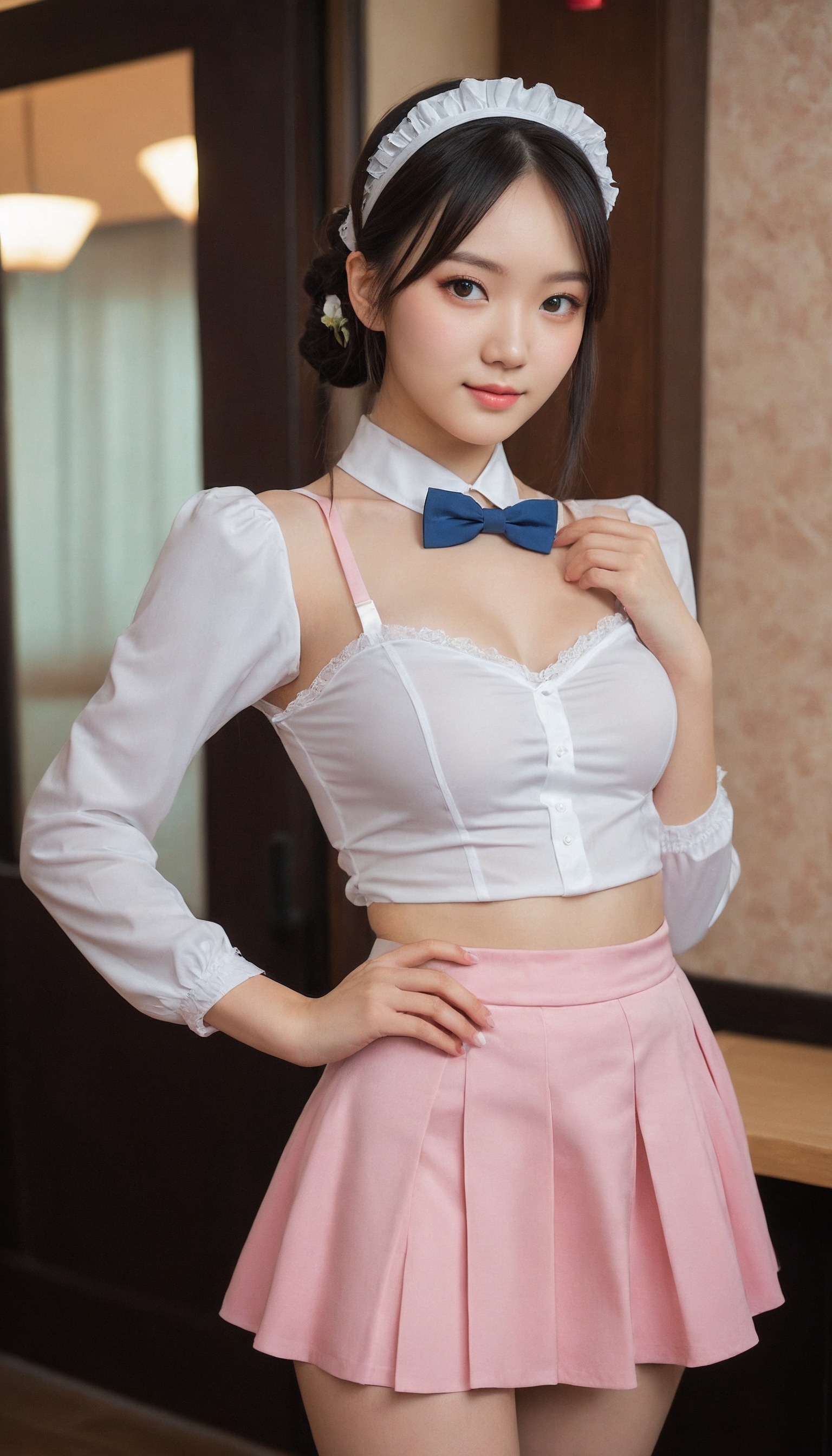 {"3": {"inputs": {"seed": 690105535705531, "steps": 32, "cfg": 5.31, "sampler_name": "dpmpp_2m", "scheduler": "karras", "denoise": 1.0, "model": ["27", 0], "positive": ["6", 0], "negative": ["7", 0], "latent_image": ["5", 0]}, "class_type": "KSampler"}, "4": {"inputs": {"ckpt_name": "juggernautXL_v8Rundiffusion.safetensors"}, "class_type": "CheckpointLoaderSimple"}, "5": {"inputs": {"width": 768, "height": 1344, "batch_size": 1}, "class_type": "EmptyLatentImage"}, "6": {"inputs": {"text": "28 year old girl, (chinese:0.95), (ukrainian:1.09), (beautiful eyes:1.08), (eyelashes:1.06), (slim:1.00), (idol:0.96), (blush:0.98), (cute:1.02), (seductive facial expression:1.05), (sexy lips:1.02), (seductive pose:0.99), (temptress:1.04), (double eyelids:0.95), (detailed face:1.08), (pale skin:1.00), (perky ass:1.05), (exposed ass:0.97), (looking back:1.13), (sexy ass:0.97), (thigh gap:1.10), in a (skimpy maid costume:1.04) working at a maid cafe, choker, bowtie, headband, pleated skirt, (textured skin:1.02), (candid cinema:1.01), (detailed skin:1.08), (portra:1.03), (natural looking skin:1.08), (film:1.04), (RAW:1.09), (skin fuzz:1.05), (soft lighting:1.08)", "clip": ["27", 1]}, "class_type": "CLIPTextEncode"}, "7": {"inputs": {"text": "(watermark:1.11), (open mouth:1.08), (worst quality:1.07), (low resolution:1.13), (distorted:1.13), (twisted:1.09), (bad hands:1.05)", "clip": ["27", 1]}, "class_type": "CLIPTextEncode"}, "8": {"inputs": {"samples": ["3", 0], "vae": ["4", 2]}, "class_type": "VAEDecode"}, "25": {"inputs": {"lora_name": "nudify_xl.safetensors", "strength_model": 0.08, "strength_clip": 0.37, "model": ["4", 0], "clip": ["4", 1]}, "class_type": "LoraLoader"}, "26": {"inputs": {"lora_name": "shirtlift_SDXL_v2.safetensors", "strength_model": 0.19, "strength_clip": 0.02, "model": ["25", 0], "clip": ["25", 1]}, "class_type": "LoraLoader"}, "27": {"inputs": {"lora_name": "PerfectEyesXL.safetensors", "strength_model": 0.02, "strength_clip": 0.08, "model": ["26", 0], "clip": ["26", 1]}, "class_type": "LoraLoader"}, "30": {"inputs": {"model_name": "4x_NMKD-Superscale-SP_178000_G.pth"}, "class_type": "UpscaleModelLoader"}, "31": {"inputs": {"upscale_model": ["30", 0], "image": ["8", 0]}, "class_type": "ImageUpscaleWithModel"}, "32": {"inputs": {"upscale_method": "lanczos", "scale_by": 0.5, "image": ["31", 0]}, "class_type": "ImageScaleBy"}, "33": {"inputs": {"pixels": ["32", 0], "vae": ["4", 2]}, "class_type": "VAEEncode"}, "34": {"inputs": {"seed": 690105535705531, "steps": 32, "cfg": 5.31, "sampler_name": "dpmpp_2m", "scheduler": "karras", "denoise": 0.3, "model": ["27", 0], "positive": ["6", 0], "negative": ["7", 0], "latent_image": ["33", 0]}, "class_type": "KSampler"}, "36": {"inputs": {"samples": ["34", 0], "vae": ["4", 2]}, "class_type": "VAEDecode"}, "39": {"inputs": {"filename_prefix": "comfyapi-1708193694937", "images": ["36", 0]}, "class_type": "SaveImage"}}