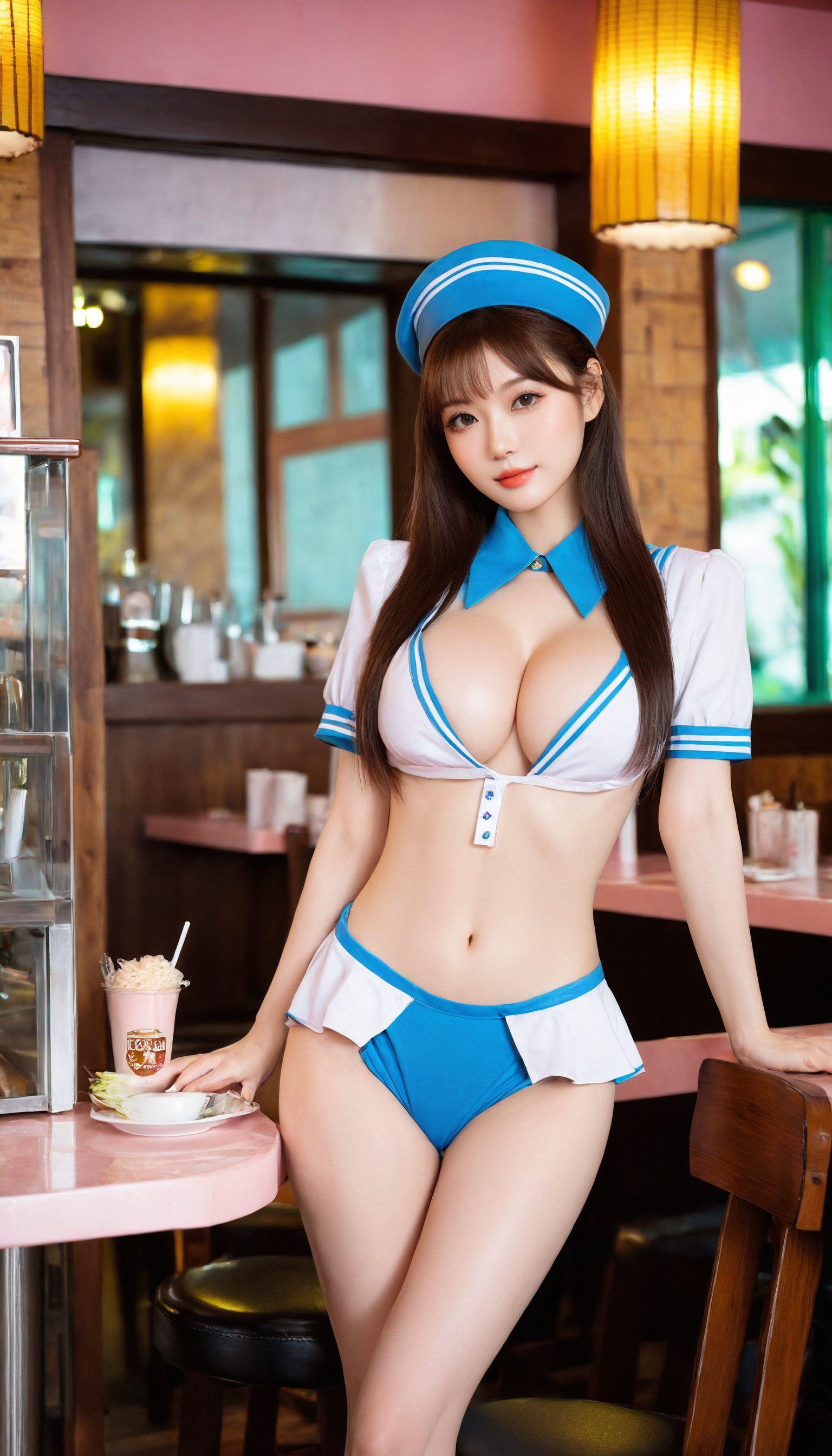 {"3": {"inputs": {"seed": 651243232978471, "steps": 32, "cfg": 7.66, "sampler_name": "dpmpp_2m", "scheduler": "karras", "denoise": 1.0, "model": ["27", 0], "positive": ["6", 0], "negative": ["7", 0], "latent_image": ["5", 0]}, "class_type": "KSampler"}, "4": {"inputs": {"ckpt_name": "helloworldxl.safetensors"}, "class_type": "CheckpointLoaderSimple"}, "5": {"inputs": {"width": 768, "height": 1344, "batch_size": 1}, "class_type": "EmptyLatentImage"}, "6": {"inputs": {"text": "24 year old girl, (russian:1.02), (ukrainian:1.04), (taiwanese:1.13), (korean:1.01), (idol:0.96), (cute:1.10), (blush:1.08), (temptress:0.99), (seductive pose:1.07), (sexy lips:1.12), (detailed face:1.14), (pale skin:0.96), (eyelashes:1.01), (double eyelids:1.02), (beautiful eyes:1.13), (slim:1.10), (in a seductive pose:0.95), (large perky breasts:1.01), (cleavage:1.09), (thigh gap:0.99), (a waitress in uniform:1.13) working at a restaurant, (soft lighting:1.05), (portra:1.08), (skin fuzz:1.01), (RAW:1.02), (detailed skin:1.05), (film:1.01), (candid cinema:1.05), (textured skin:1.01)", "clip": ["27", 1]}, "class_type": "CLIPTextEncode"}, "7": {"inputs": {"text": "(distorted:1.14), (low resolution:1.10), (open mouth:1.07), (bad hands:1.06), (worst quality:1.05), (twisted:1.06), (watermark:1.06)", "clip": ["27", 1]}, "class_type": "CLIPTextEncode"}, "8": {"inputs": {"samples": ["3", 0], "vae": ["4", 2]}, "class_type": "VAEDecode"}, "25": {"inputs": {"lora_name": "nudify_xl.safetensors", "strength_model": 0.22, "strength_clip": 0.27, "model": ["4", 0], "clip": ["4", 1]}, "class_type": "LoraLoader"}, "26": {"inputs": {"lora_name": "shirtlift_SDXL_v2.safetensors", "strength_model": 0.01, "strength_clip": 0.0, "model": ["25", 0], "clip": ["25", 1]}, "class_type": "LoraLoader"}, "27": {"inputs": {"lora_name": "PerfectEyesXL.safetensors", "strength_model": 0.02, "strength_clip": 0.09, "model": ["26", 0], "clip": ["26", 1]}, "class_type": "LoraLoader"}, "30": {"inputs": {"model_name": "4x_NMKD-Superscale-SP_178000_G.pth"}, "class_type": "UpscaleModelLoader"}, "31": {"inputs": {"upscale_model": ["30", 0], "image": ["8", 0]}, "class_type": "ImageUpscaleWithModel"}, "32": {"inputs": {"upscale_method": "lanczos", "scale_by": 0.5, "image": ["31", 0]}, "class_type": "ImageScaleBy"}, "33": {"inputs": {"pixels": ["32", 0], "vae": ["4", 2]}, "class_type": "VAEEncode"}, "34": {"inputs": {"seed": 651243232978471, "steps": 32, "cfg": 7.66, "sampler_name": "dpmpp_2m", "scheduler": "karras", "denoise": 0.3, "model": ["27", 0], "positive": ["6", 0], "negative": ["7", 0], "latent_image": ["33", 0]}, "class_type": "KSampler"}, "36": {"inputs": {"samples": ["34", 0], "vae": ["4", 2]}, "class_type": "VAEDecode"}, "39": {"inputs": {"filename_prefix": "comfyapi-1713342687676", "images": ["36", 0]}, "class_type": "SaveImage"}}