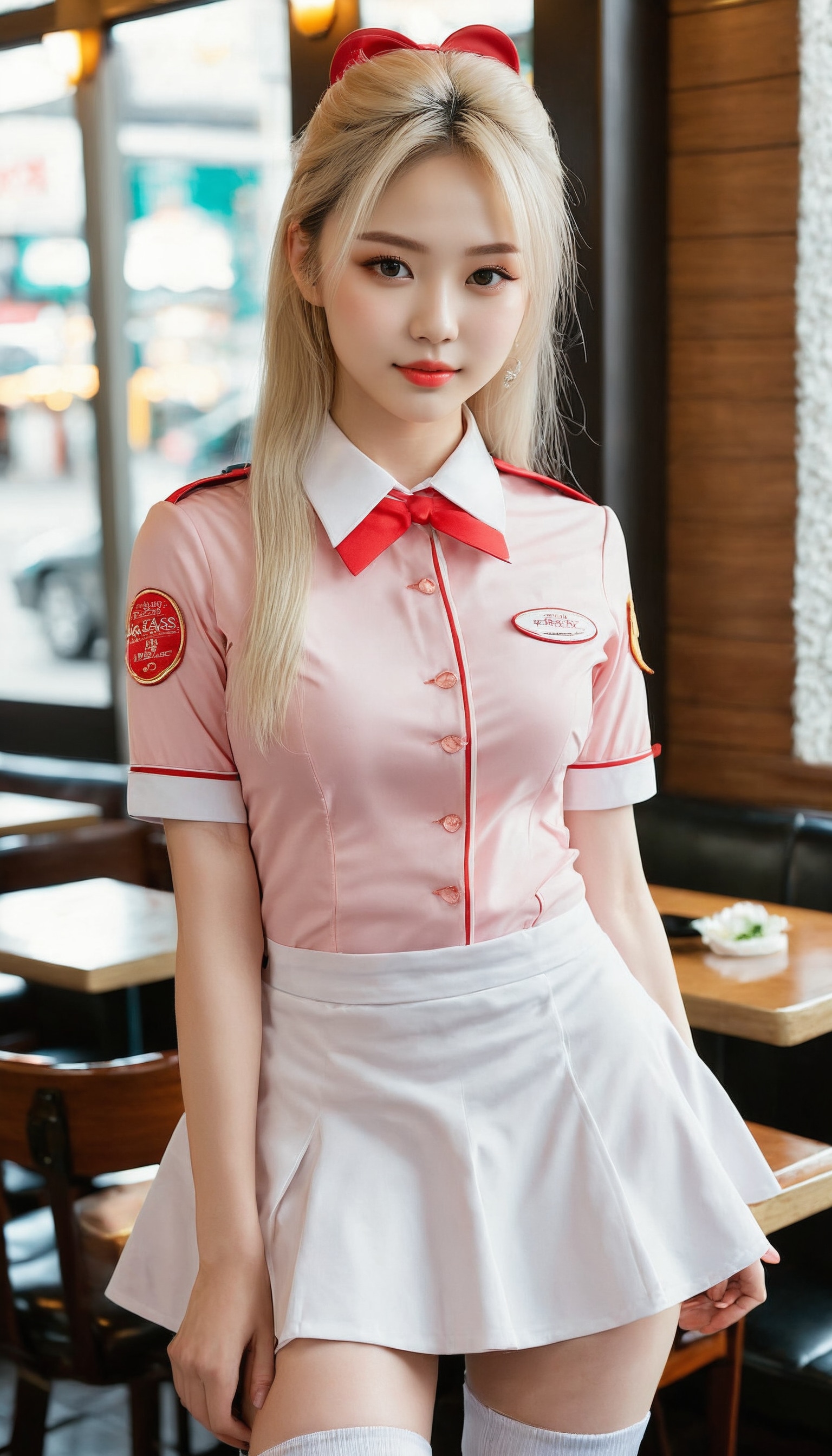 {"3": {"inputs": {"seed": 217970532435049, "steps": 64, "cfg": 6.96, "sampler_name": "dpmpp_2m", "scheduler": "karras", "denoise": 1.0, "model": ["27", 0], "positive": ["6", 0], "negative": ["7", 0], "latent_image": ["5", 0]}, "class_type": "KSampler"}, "4": {"inputs": {"ckpt_name": "juggernautxl.safetensors"}, "class_type": "CheckpointLoaderSimple"}, "5": {"inputs": {"width": 768, "height": 1344, "batch_size": 1}, "class_type": "EmptyLatentImage"}, "6": {"inputs": {"text": "21 year old girl, (blush:1.13), (sexy lips:1.03), (detailed face:0.97), (double eyelids:0.97), (slim:1.00), (cute:0.96), (pale skin:1.03), (seductive pose:1.11), (beautiful eyes:0.95), (idol:1.00), (seductive facial expression:0.95), (perky ass:1.13), (exposed ass:0.97), (looking back:1.04), (sexy ass:1.03), (thigh gap:1.04), (a waitress in uniform:1.10) working at a restaurant, (portra:1.03), (film:1.07), (RAW:1.05), (detailed skin:1.09), (textured skin:1.05), (candid cinema:1.07), (soft lighting:1.02), (natural looking skin:1.06), (skin fuzz:1.05)", "clip": ["27", 1]}, "class_type": "CLIPTextEncode"}, "7": {"inputs": {"text": "(distorted:1.10), (bad hands:1.10), (watermark:1.06), (open mouth:1.13), (low resolution:1.07), (worst quality:1.05), (twisted:1.09)", "clip": ["27", 1]}, "class_type": "CLIPTextEncode"}, "8": {"inputs": {"samples": ["3", 0], "vae": ["4", 2]}, "class_type": "VAEDecode"}, "25": {"inputs": {"lora_name": "nudify_xl.safetensors", "strength_model": 0.09, "strength_clip": 0.26, "model": ["4", 0], "clip": ["4", 1]}, "class_type": "LoraLoader"}, "26": {"inputs": {"lora_name": "shirtlift_SDXL_v2.safetensors", "strength_model": 0.05, "strength_clip": 0.05, "model": ["25", 0], "clip": ["25", 1]}, "class_type": "LoraLoader"}, "27": {"inputs": {"lora_name": "PerfectEyesXL.safetensors", "strength_model": 0.18, "strength_clip": 0.14, "model": ["26", 0], "clip": ["26", 1]}, "class_type": "LoraLoader"}, "30": {"inputs": {"model_name": "4x_NMKD-Superscale-SP_178000_G.pth"}, "class_type": "UpscaleModelLoader"}, "31": {"inputs": {"upscale_model": ["30", 0], "image": ["8", 0]}, "class_type": "ImageUpscaleWithModel"}, "32": {"inputs": {"upscale_method": "lanczos", "scale_by": 0.5, "image": ["31", 0]}, "class_type": "ImageScaleBy"}, "33": {"inputs": {"pixels": ["32", 0], "vae": ["4", 2]}, "class_type": "VAEEncode"}, "34": {"inputs": {"seed": 217970532435049, "steps": 64, "cfg": 6.96, "sampler_name": "dpmpp_2m", "scheduler": "karras", "denoise": 0.3, "model": ["27", 0], "positive": ["6", 0], "negative": ["7", 0], "latent_image": ["33", 0]}, "class_type": "KSampler"}, "36": {"inputs": {"samples": ["34", 0], "vae": ["4", 2]}, "class_type": "VAEDecode"}, "39": {"inputs": {"filename_prefix": "comfyapi-1724112812960", "images": ["36", 0]}, "class_type": "SaveImage"}}