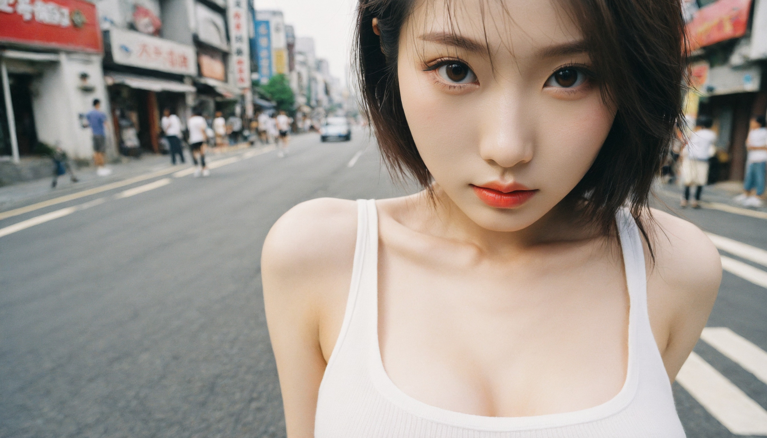{"3": {"inputs": {"seed": 657731271072285, "steps": 32, "cfg": 6.06, "sampler_name": "dpmpp_2m", "scheduler": "karras", "denoise": 1.0, "model": ["27", 0], "positive": ["6", 0], "negative": ["7", 0], "latent_image": ["5", 0]}, "class_type": "KSampler"}, "4": {"inputs": {"ckpt_name": "helloworldxl.safetensors"}, "class_type": "CheckpointLoaderSimple"}, "5": {"inputs": {"width": 1344, "height": 768, "batch_size": 1}, "class_type": "EmptyLatentImage"}, "6": {"inputs": {"text": "25 year old girl, (japanese:0.98), (korean:1.09), (chinese:1.07), (double eyelids:1.07), (sexy lips:0.98), (detailed face:1.12), (pale skin:0.98), (seductive facial expression:1.13), (beautiful eyes:1.03), (blush:1.08), (idol:1.03), (slim:0.96), (seductive pose:1.09), (temptress:1.07), (eyelashes:1.04), (in a seductive pose:1.09), (large perky breasts:0.96), (cleavage:0.96), (thigh gap:1.05), (white tanktop:1.14), busy street, (textured skin:1.03), (portra:1.09), (RAW:1.02), (natural looking skin:1.02), (film:1.05), (skin fuzz:1.05), (candid cinema:1.02), (detailed skin:1.01)", "clip": ["27", 1]}, "class_type": "CLIPTextEncode"}, "7": {"inputs": {"text": "(distorted:1.10), (bad hands:1.08), (twisted:1.13), (watermark:1.05), (worst quality:1.07), (open mouth:1.10), (low resolution:1.06)", "clip": ["27", 1]}, "class_type": "CLIPTextEncode"}, "8": {"inputs": {"samples": ["3", 0], "vae": ["4", 2]}, "class_type": "VAEDecode"}, "25": {"inputs": {"lora_name": "nudify_xl.safetensors", "strength_model": 0.0, "strength_clip": 0.25, "model": ["4", 0], "clip": ["4", 1]}, "class_type": "LoraLoader"}, "26": {"inputs": {"lora_name": "shirtlift_SDXL_v2.safetensors", "strength_model": 0.04, "strength_clip": 0.03, "model": ["25", 0], "clip": ["25", 1]}, "class_type": "LoraLoader"}, "27": {"inputs": {"lora_name": "PerfectEyesXL.safetensors", "strength_model": 0.05, "strength_clip": 0.09, "model": ["26", 0], "clip": ["26", 1]}, "class_type": "LoraLoader"}, "30": {"inputs": {"model_name": "4x_NMKD-Superscale-SP_178000_G.pth"}, "class_type": "UpscaleModelLoader"}, "31": {"inputs": {"upscale_model": ["30", 0], "image": ["8", 0]}, "class_type": "ImageUpscaleWithModel"}, "32": {"inputs": {"upscale_method": "lanczos", "scale_by": 0.5, "image": ["31", 0]}, "class_type": "ImageScaleBy"}, "33": {"inputs": {"pixels": ["32", 0], "vae": ["4", 2]}, "class_type": "VAEEncode"}, "34": {"inputs": {"seed": 657731271072285, "steps": 32, "cfg": 6.06, "sampler_name": "dpmpp_2m", "scheduler": "karras", "denoise": 0.3, "model": ["27", 0], "positive": ["6", 0], "negative": ["7", 0], "latent_image": ["33", 0]}, "class_type": "KSampler"}, "36": {"inputs": {"samples": ["34", 0], "vae": ["4", 2]}, "class_type": "VAEDecode"}, "39": {"inputs": {"filename_prefix": "comfyapi-1735350205640", "images": ["36", 0]}, "class_type": "SaveImage"}}